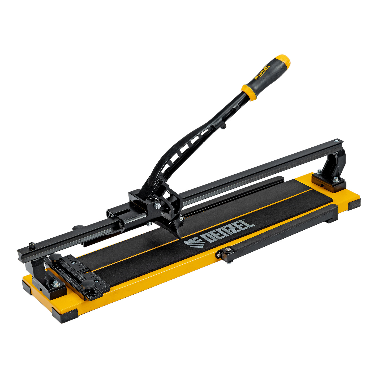 Ручной плиткорез Denzel 877014 с рельсовой направляющей и стальной станиной, с кареткой на подшипниках и усиленной рукояткой-пеналом, предназначен для прямой и диагональной резки керамической плитки и керамогранита длиной до 600 мм и толщиной до 16 мм. Раздвижные упоры упрощают работу с плиткой большого размера. Инструмент используется для проведения отделочных работ.