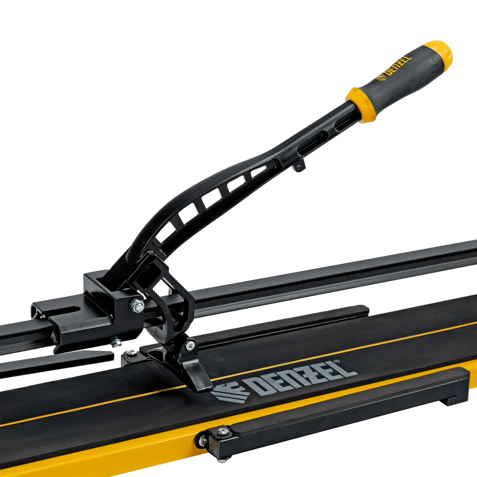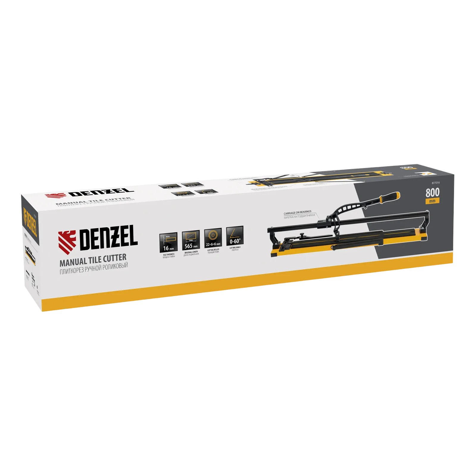 Ручной плиткорез Denzel 877016 с рельсовой направляющей и стальной станиной, с кареткой на подшипниках и усиленной рукояткой-пеналом, предназначен для прямой и диагональной резки керамической плитки и керамогранита длиной до 800 мм и толщиной до 16 мм. Раздвижные упоры упрощают работу с плиткой большого размера. Инструмент используется для проведения отделочных работ.