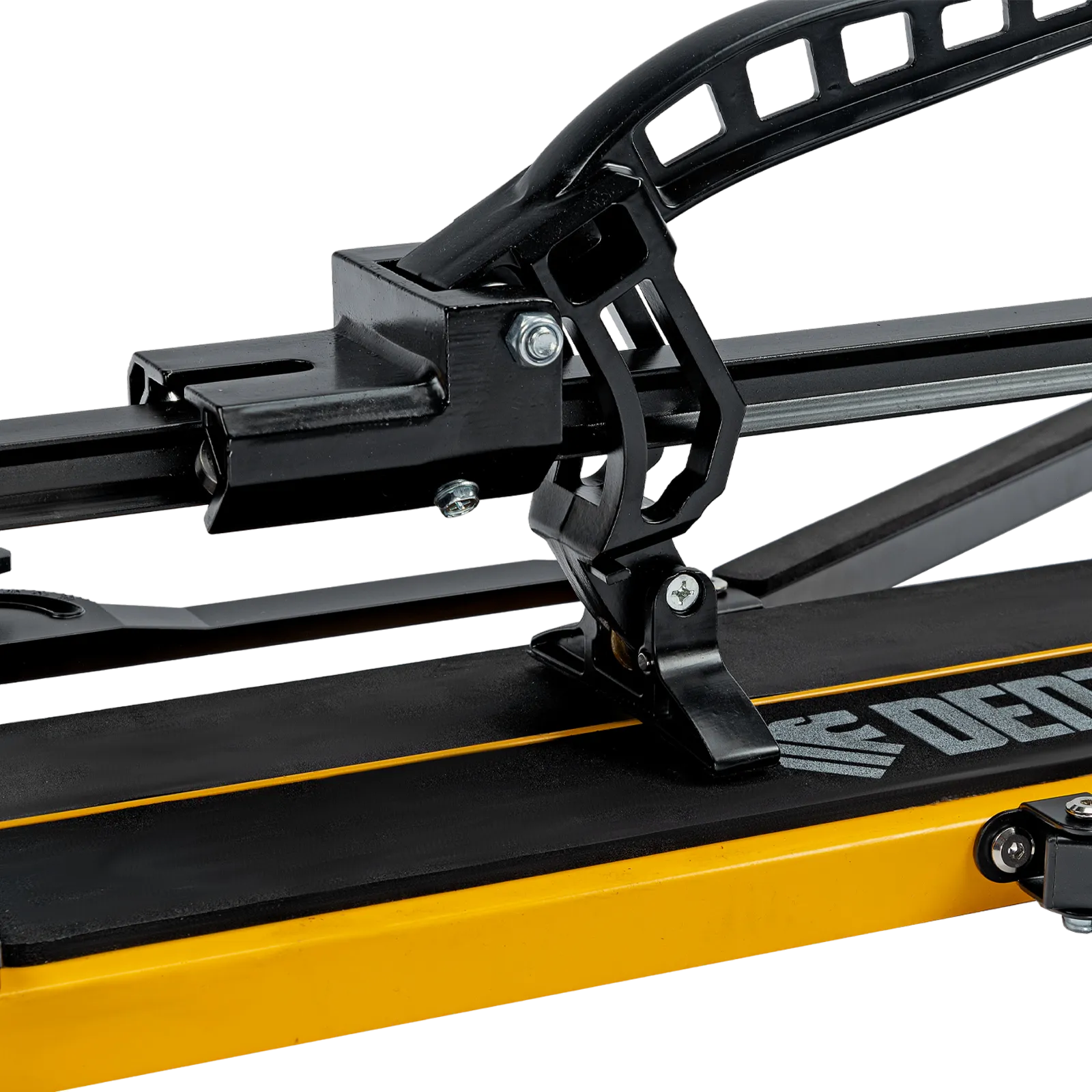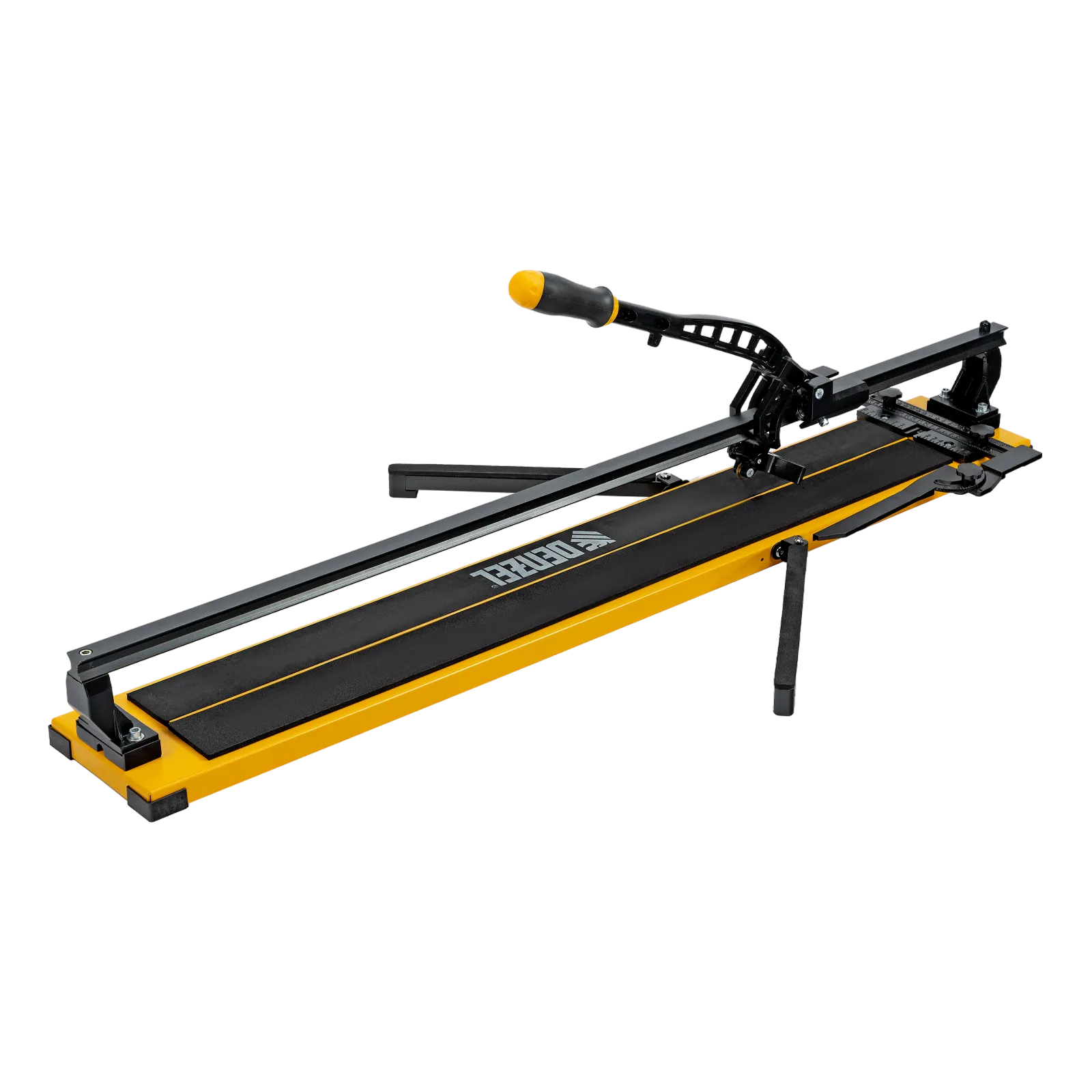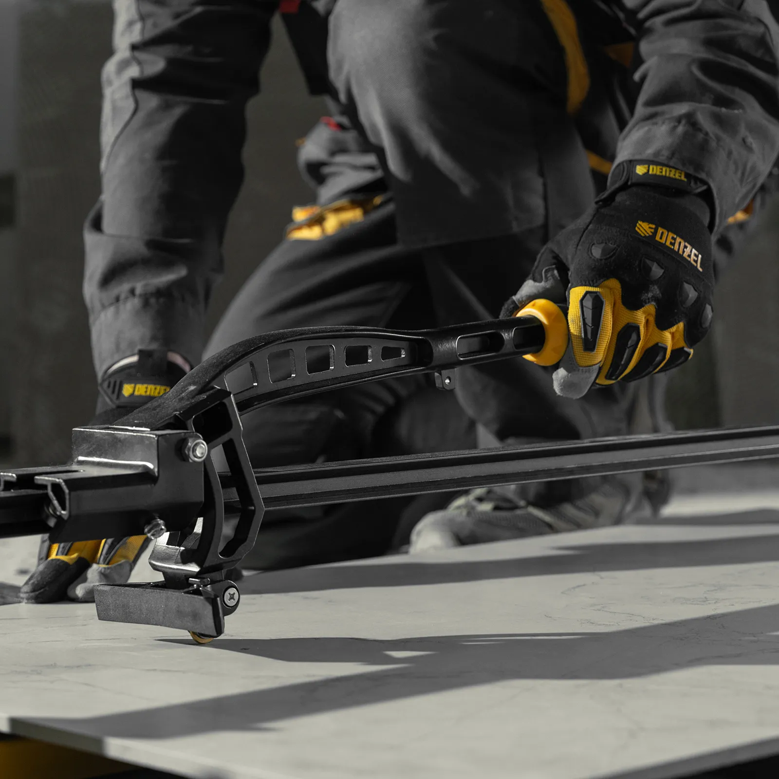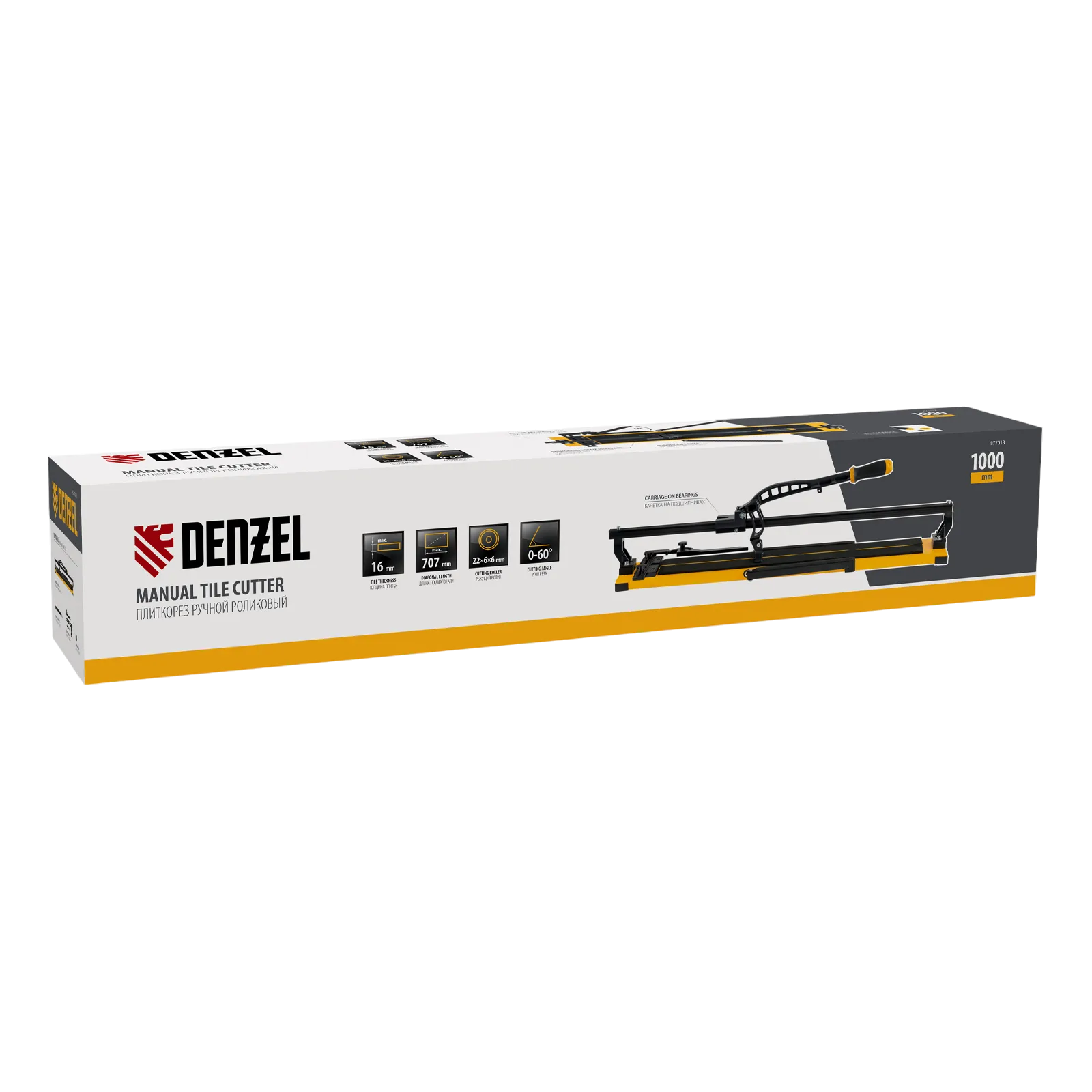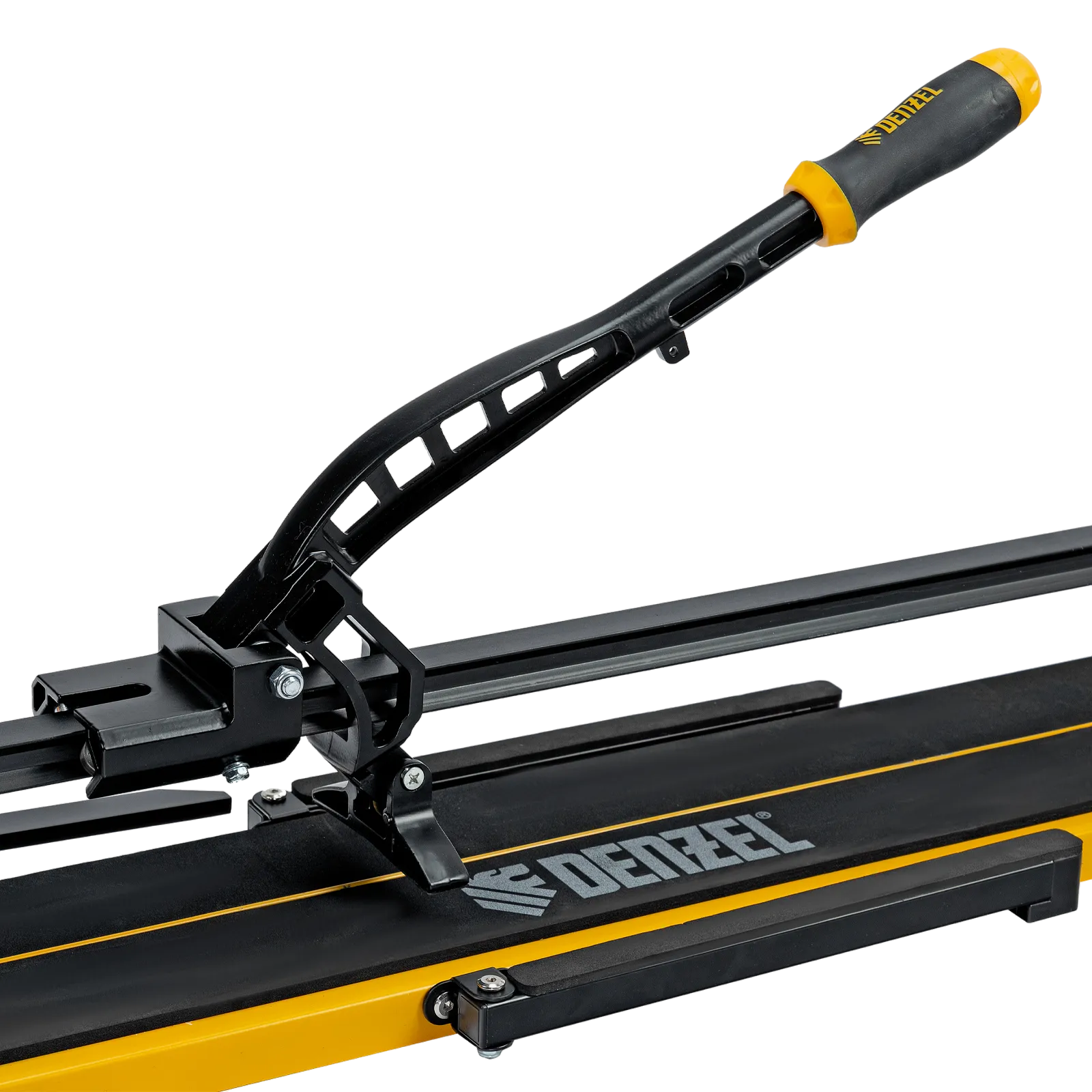 Ручной плиткорез Denzel 877018 с рельсовой направляющей и стальной станиной, с кареткой на подшипниках и усиленной рукояткой-пеналом, предназначен для прямой и диагональной резки керамической плитки и керамогранита длиной до 1000 мм и толщиной до 16 мм. Раздвижные упоры упрощают работу с плиткой большого размера. Инструмент используется для проведения отделочных работ.