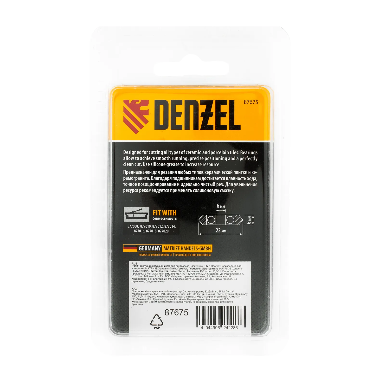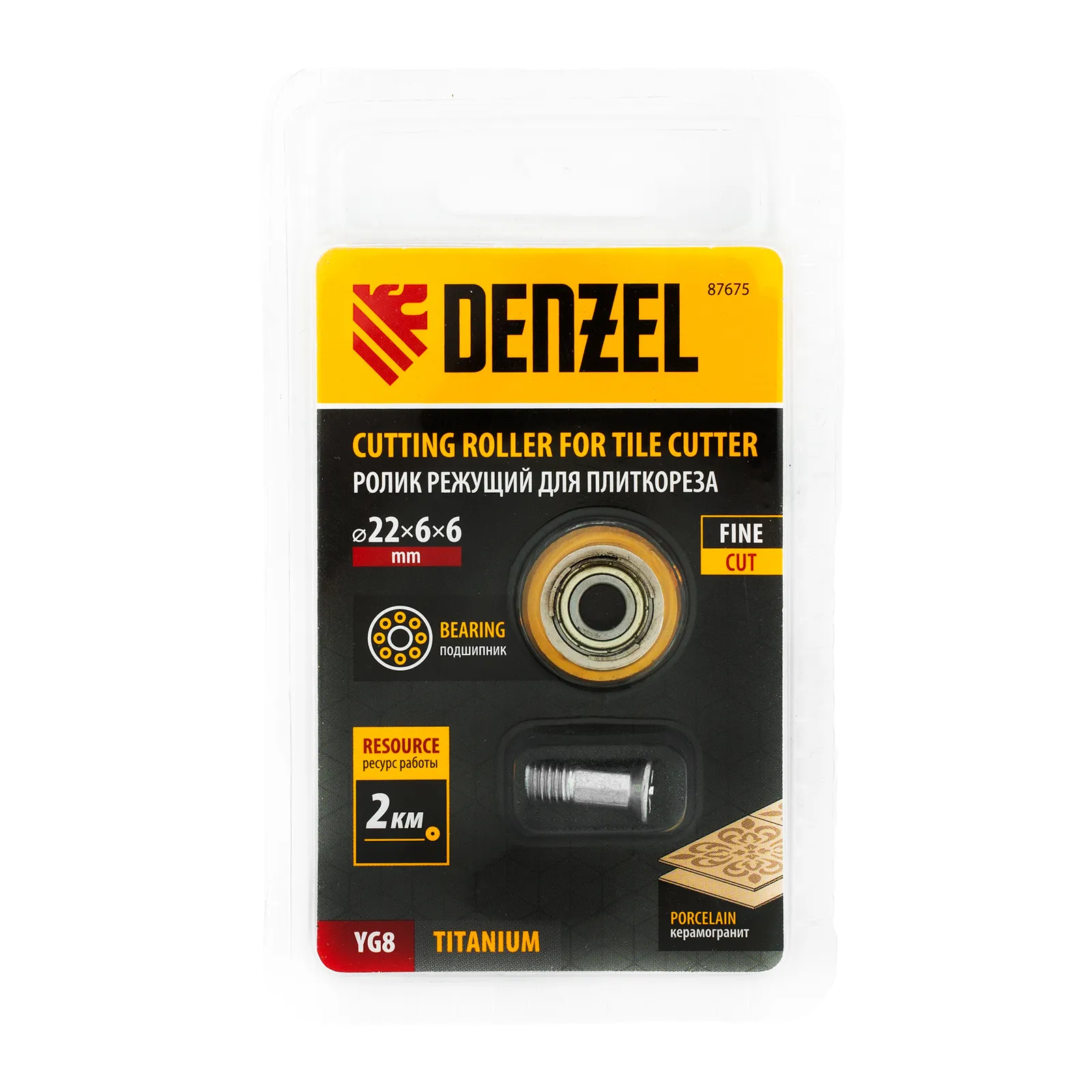 Режущий ролик Denzel 87675 размером 22 x 6 x 6 мм, с подшипником, — сменный рабочий элемент для плиткореза. Быстро режет керамическую плитку и керамогранит, подшипник обеспечивает плавный ход. Пригодится во время выполнения отделочных работ.