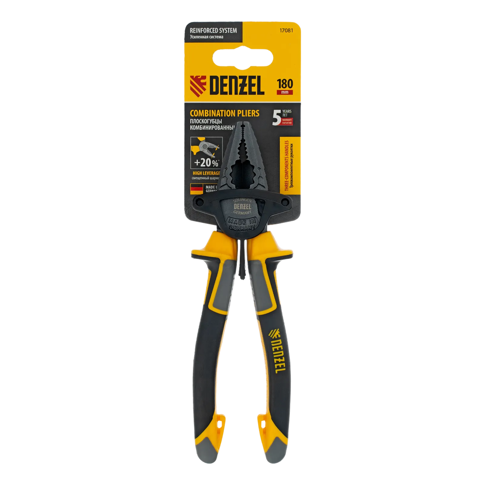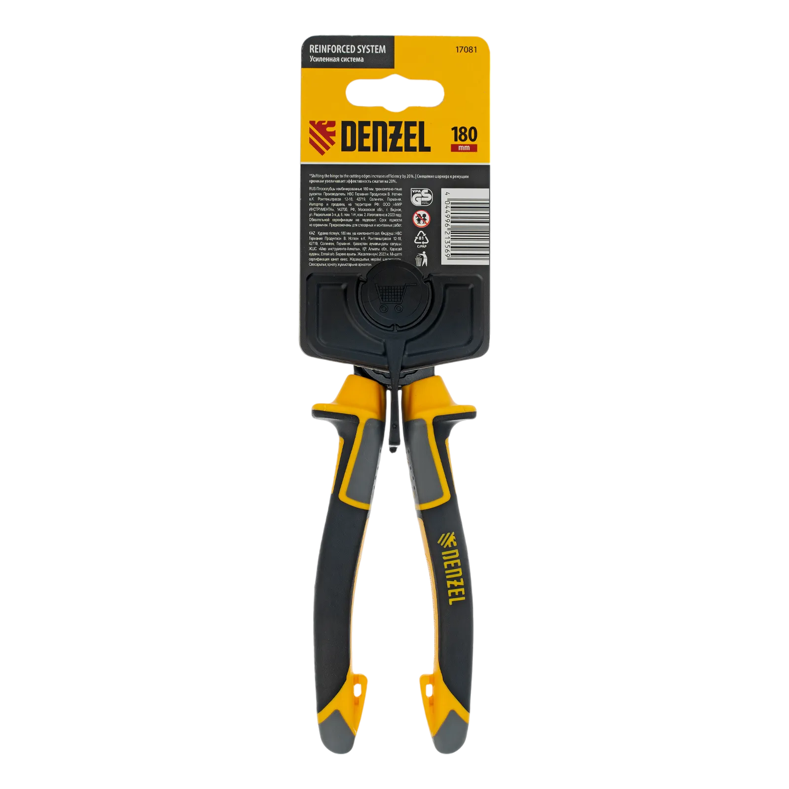 Комбинированные плоскогубцы Denzel 17081 длиной 180 мм, с трехкомпонентными рукоятками, используются для зажима и удержания деталей, сгибания металлических листов. Позволяют также перекусывать мягкую проволоку (алюминиевую, медную, с пределом прочности 220 Н/мм2) диаметром до 5,2 мм, проволоку средней жесткости и гвозди (750 Н/мм2) диаметром до 3,4 мм, а также жесткую (1800 Н/мм2) толщиной до 2,2 мм. Имеют внутренние грани специальной формы, предназначенные для использования инструмента в качестве гаечного ключа. Губки с насечками надежно удерживают заготовки. Плоскогубцы пригодятся профессионалу и частному мастеру при проведении слесарных, ремонтных и сборочных работ.