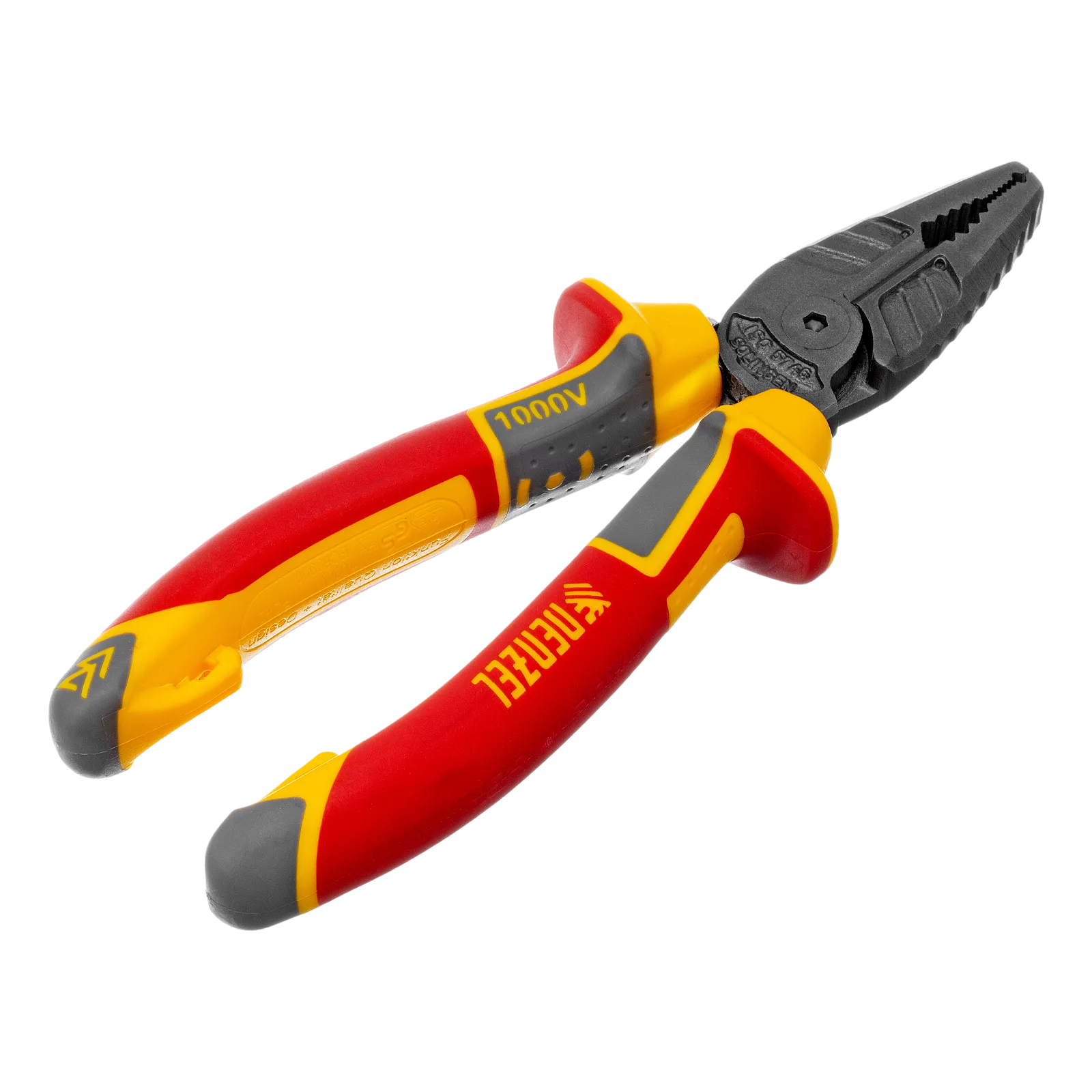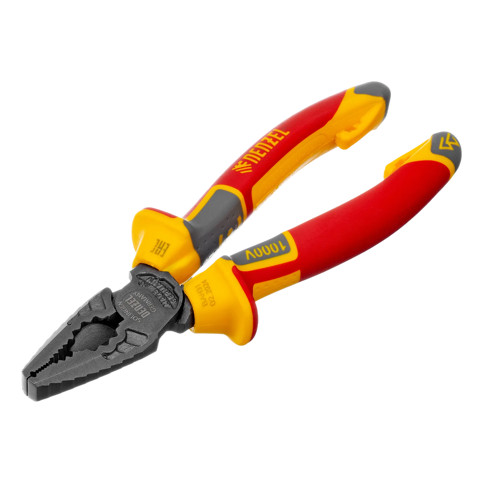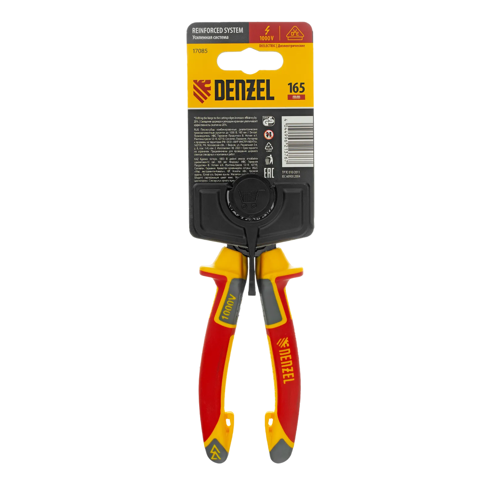 Комбинированные плоскогубцы Denzel 17085 длиной 165 мм, с диэлектрическими трехкомпонентными рукоятками, выдерживающими до 1000 В, предназначены для выполнения работ с токопроводящими элементами. С их помощью можно захватить или согнуть мелкие и крупные детали, перекусить проволоку или перерезать провод. Инструмент подходит для работы с мягкой проволокой (алюминиевой, медной, с пределом прочности 220 Н/мм2) диаметром до 4 мм, проволокой средней жесткости и гвоздями (750 Н/мм2) диаметром до 3,1 мм, и жесткой (предел прочности 1800 Н/мм2) толщиной до 2 мм. Также плоскогубцы можно использовать в качестве гаечного ключа. Инструмент незаменим для проведения слесарных и монтажных работ с различными компонентами и материалами. Внимание: перед началом работ следует отключить напряжение!