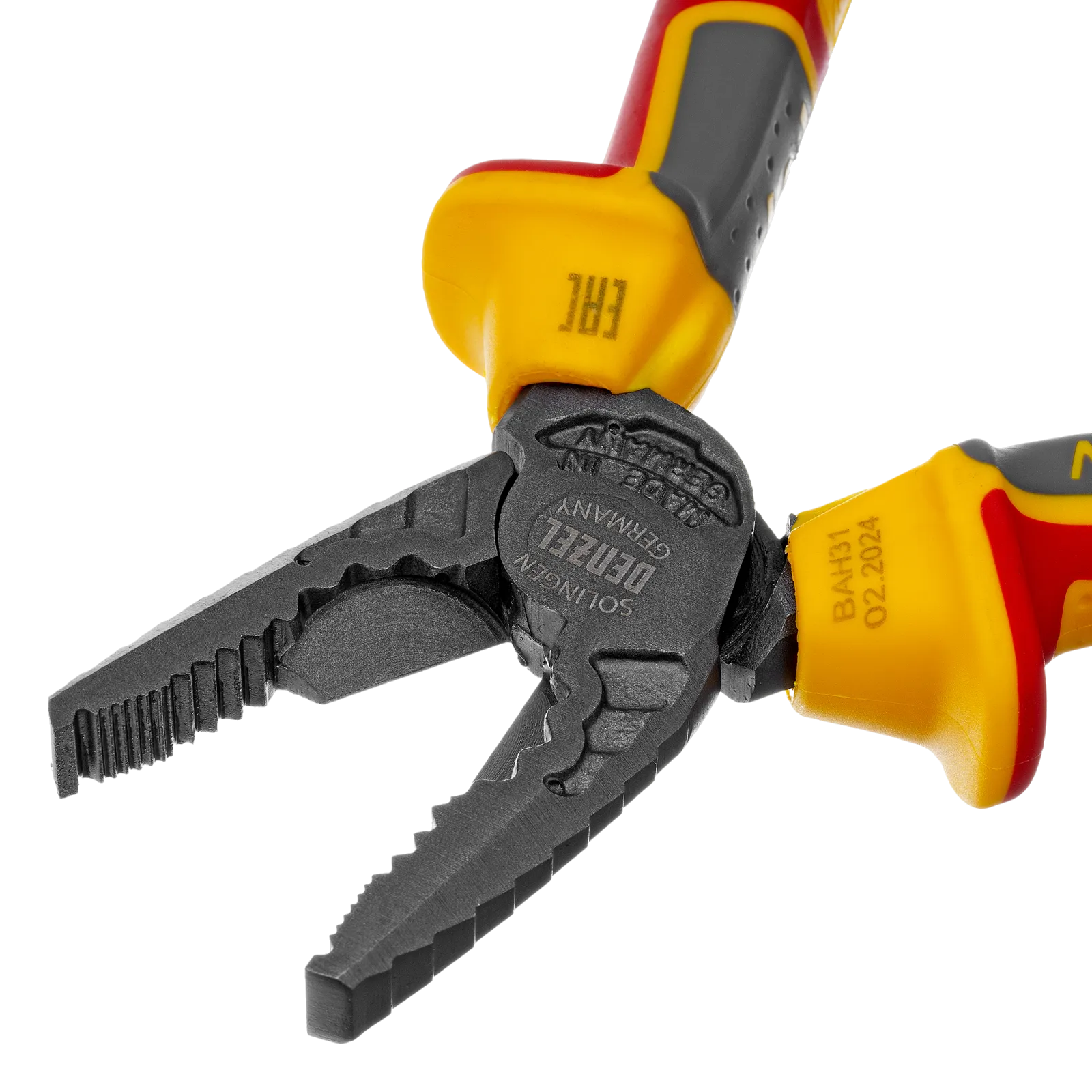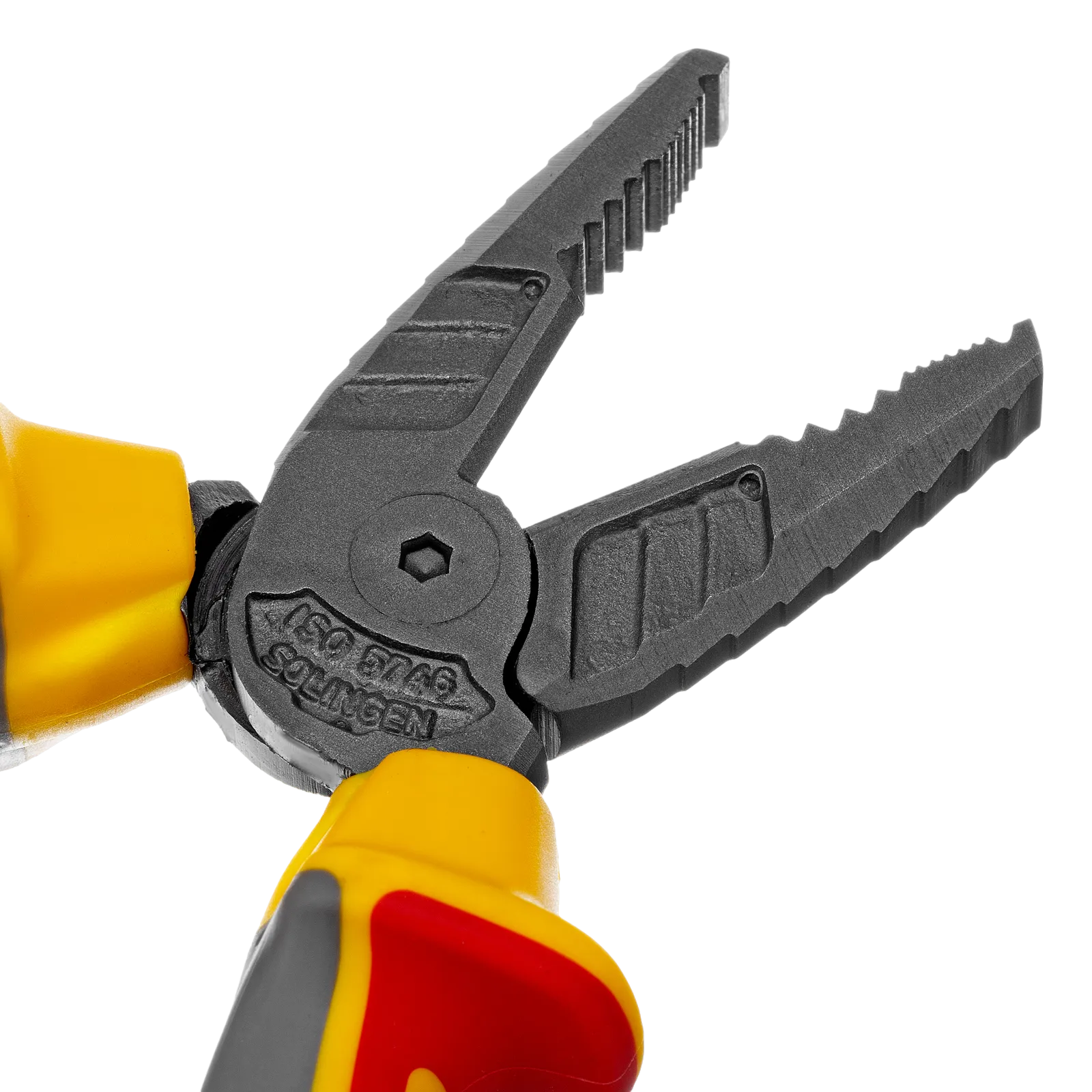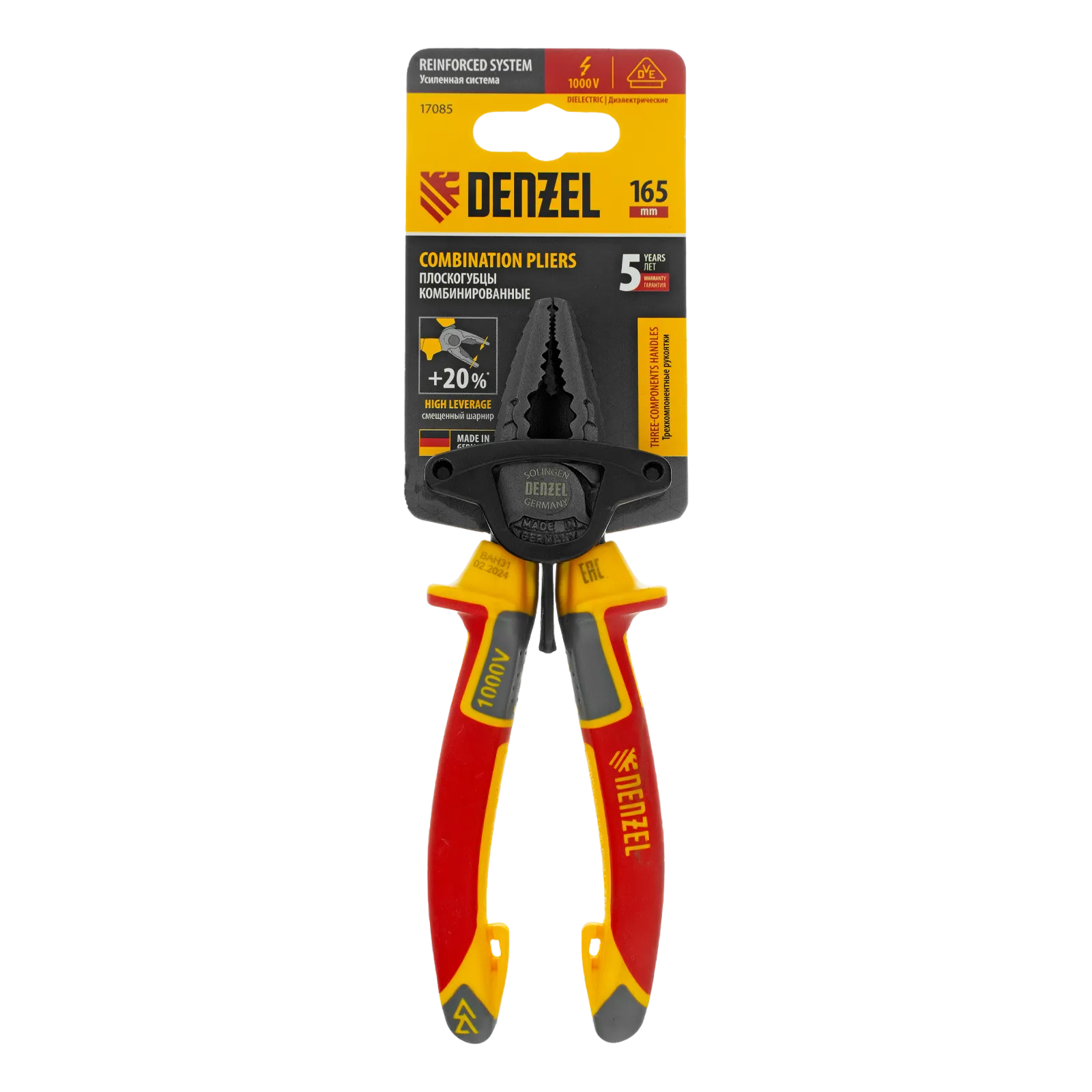 Комбинированные плоскогубцы Denzel 17085 длиной 165 мм, с диэлектрическими трехкомпонентными рукоятками, выдерживающими до 1000 В, предназначены для выполнения работ с токопроводящими элементами. С их помощью можно захватить или согнуть мелкие и крупные детали, перекусить проволоку или перерезать провод. Инструмент подходит для работы с мягкой проволокой (алюминиевой, медной, с пределом прочности 220 Н/мм2) диаметром до 4 мм, проволокой средней жесткости и гвоздями (750 Н/мм2) диаметром до 3,1 мм, и жесткой (предел прочности 1800 Н/мм2) толщиной до 2 мм. Также плоскогубцы можно использовать в качестве гаечного ключа. Инструмент незаменим для проведения слесарных и монтажных работ с различными компонентами и материалами. Внимание: перед началом работ следует отключить напряжение!