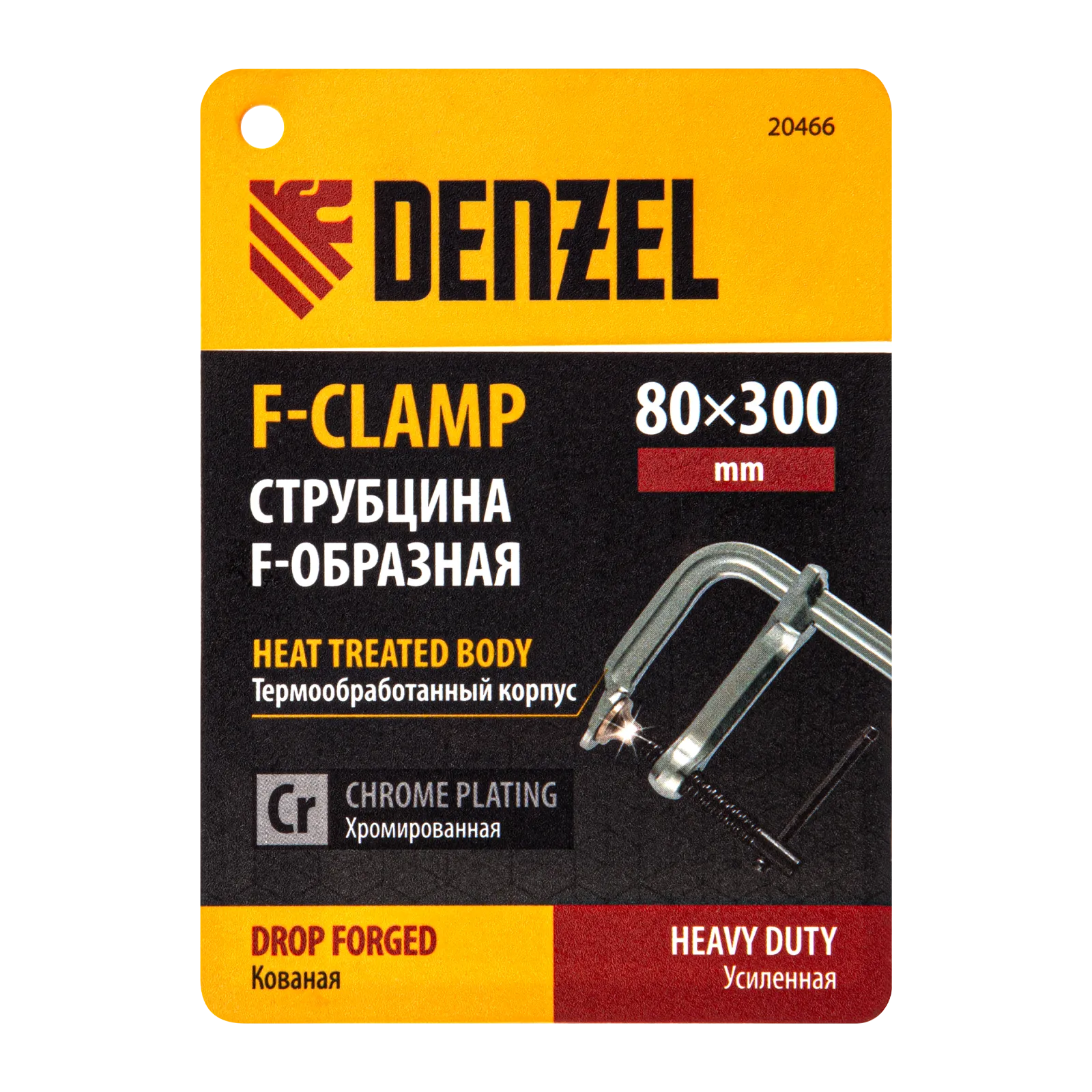 Кованая F-образная струбцина Denzel 20466 с глубиной зажима 80 мм, усиленная, предназначена для фиксации деталей шириной до 300 мм и материалов при проведении слесарных, столярных и сварочных работ. Тавровый профиль обеспечивает устойчивость конструкции к изгибу, что позволяет фиксировать детали со значительным усилием. Струбцина подходит для профессионального применения.