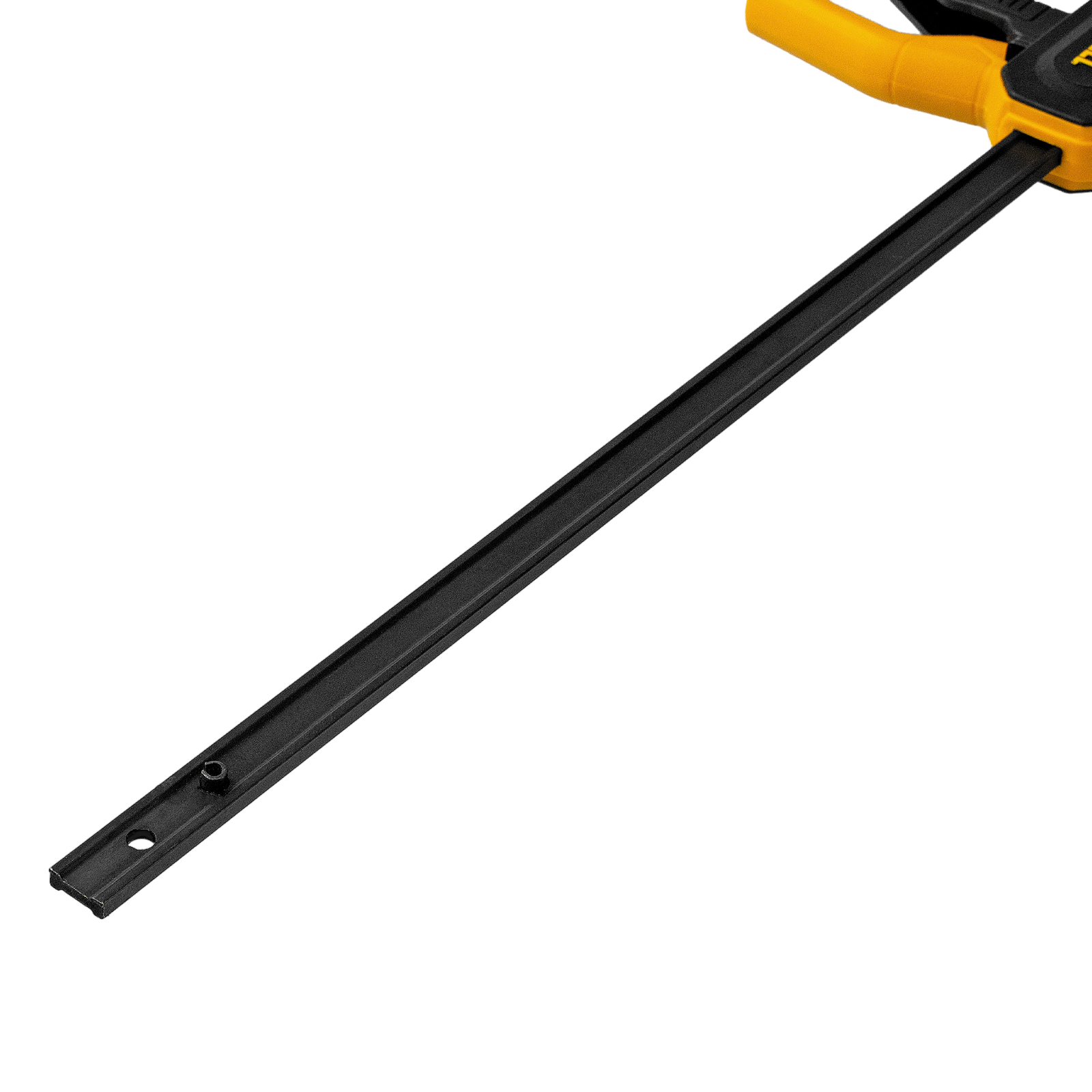 - Комфортное использование — струбцина весит всего 620 г, обрезиненная кнопка фиксации обеспечивает удобный захват.