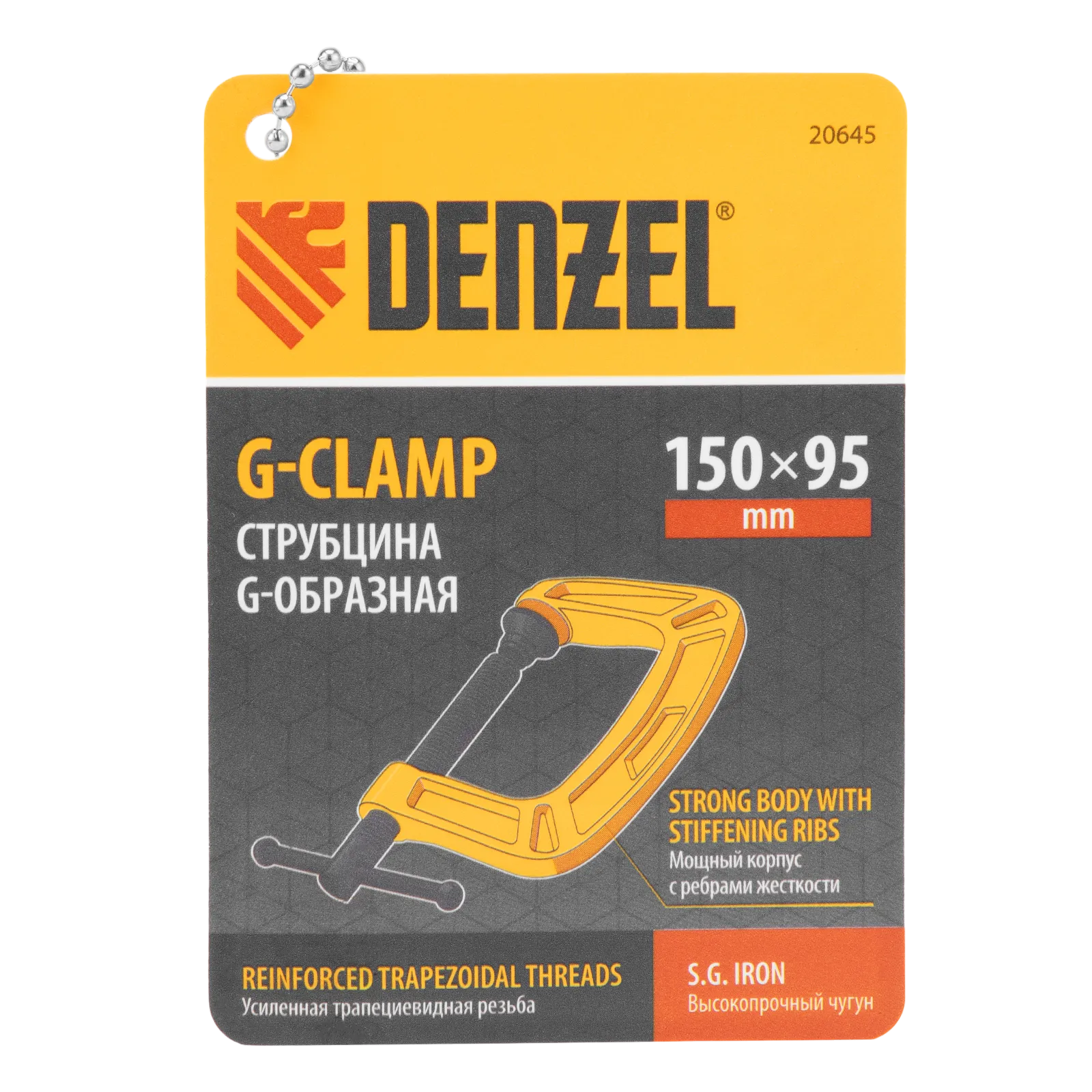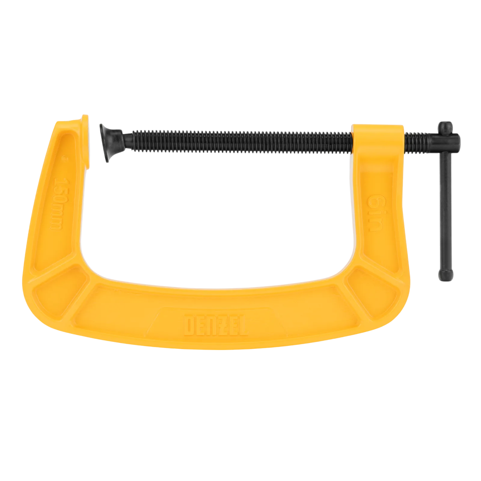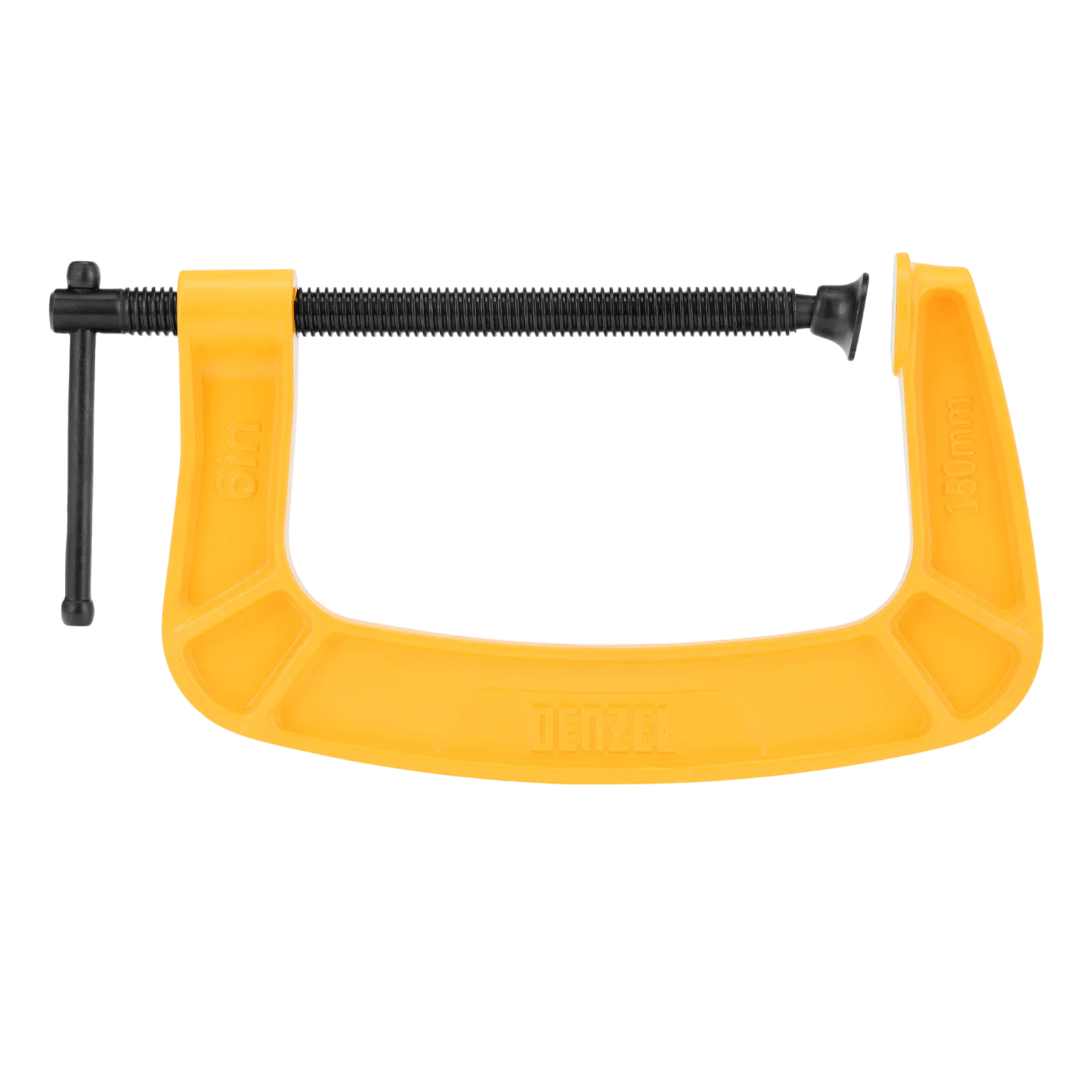 G-образная струбцина Denzel 20645 с максимальной шириной зажима 150 мм используется для фиксации заготовок или закрепления их на верстаке, станке или между собой. Позволяет склеивать детали, а также сверлить их, шлифовать, опиливать и проводить другие работы. Может использоваться во время выполнения сварочных работ. Винт с трапециевидной резьбой обеспечивает надежную фиксацию предметов. Струбцина применяется в слесарном и столярном деле, будет полезна также домашнем хозяйстве.