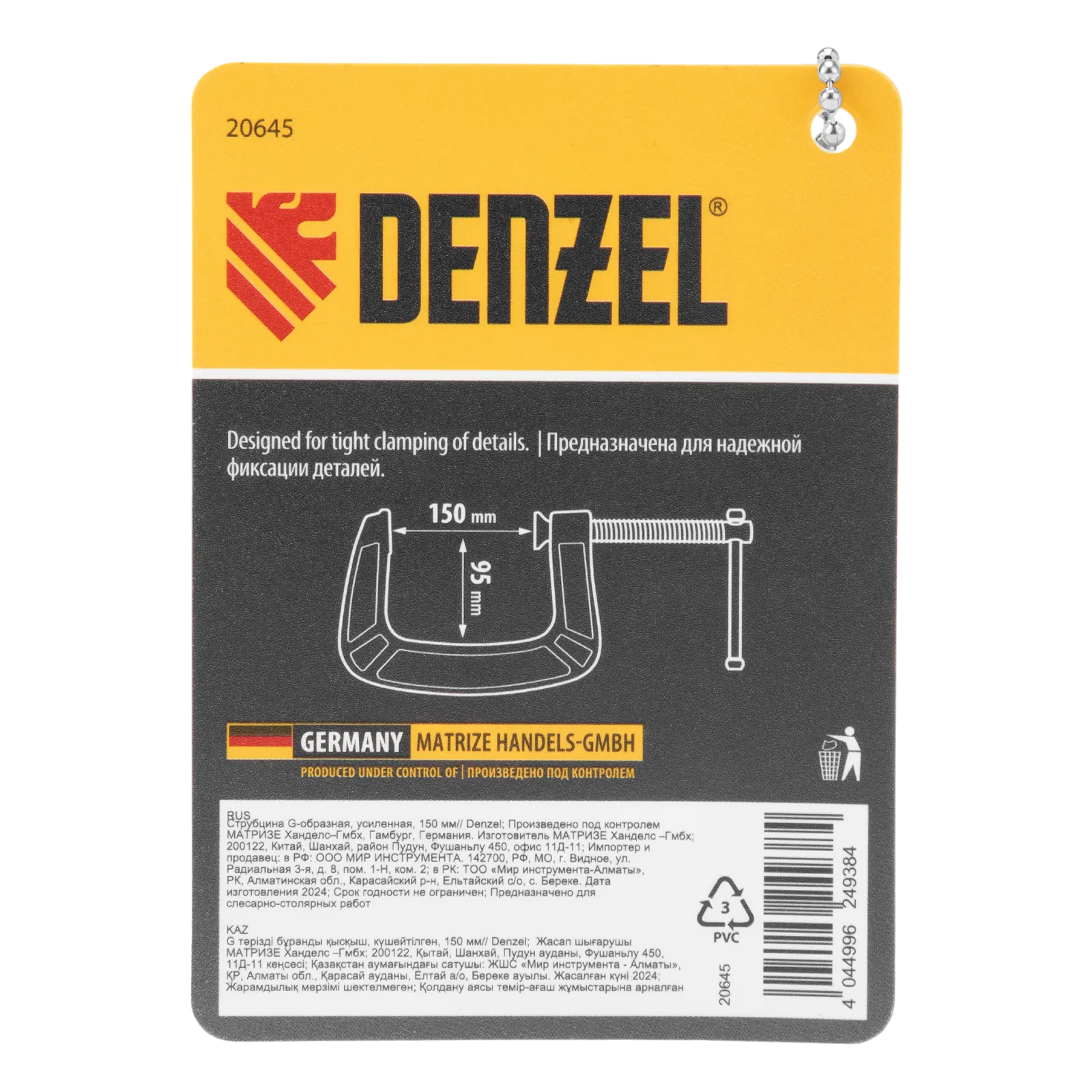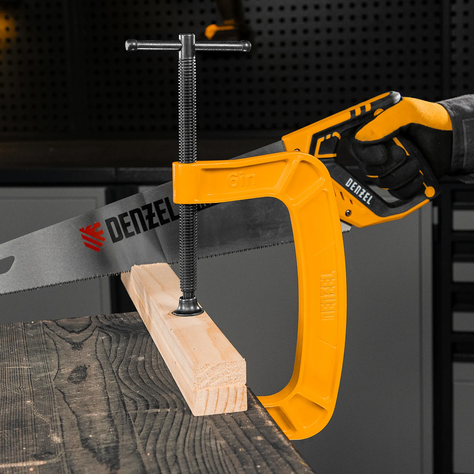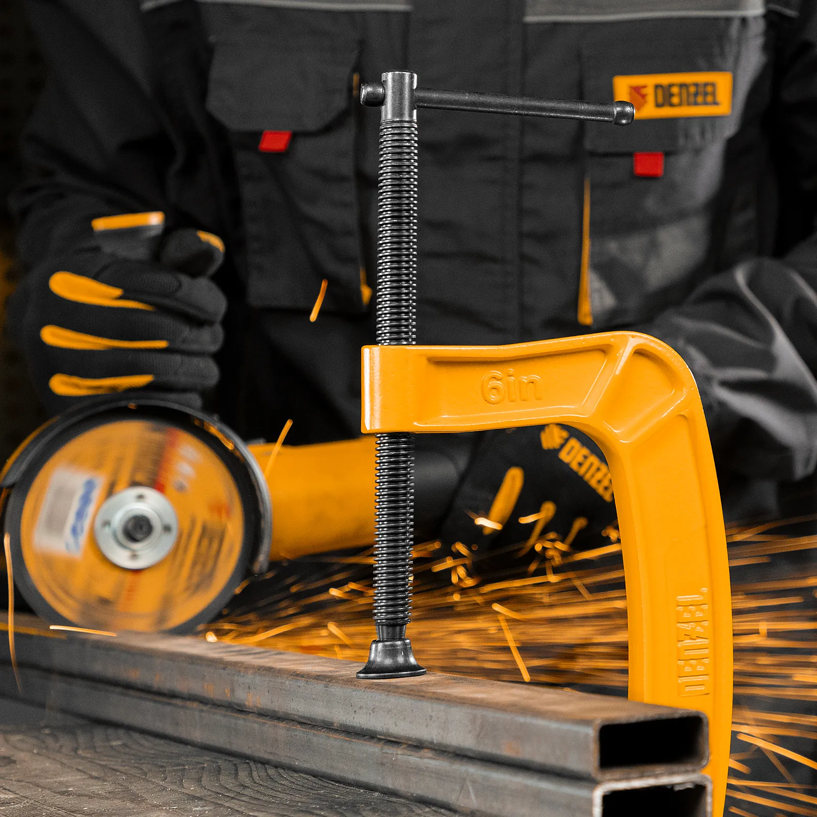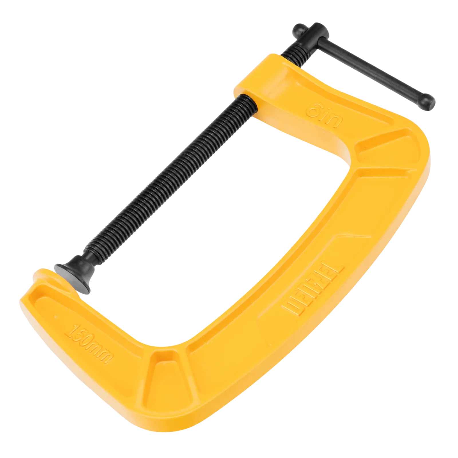G-образная струбцина Denzel 20645 с максимальной шириной зажима 150 мм используется для фиксации заготовок или закрепления их на верстаке, станке или между собой. Позволяет склеивать детали, а также сверлить их, шлифовать, опиливать и проводить другие работы. Может использоваться во время выполнения сварочных работ. Винт с трапециевидной резьбой обеспечивает надежную фиксацию предметов. Струбцина применяется в слесарном и столярном деле, будет полезна также домашнем хозяйстве.