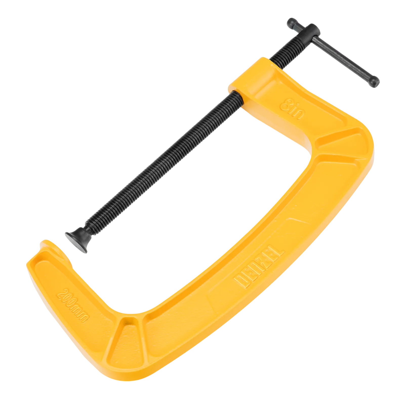 G-образная струбцина Denzel 20646 с максимальной шириной зажима 200 мм используется для фиксации заготовок или закрепления их на верстаке, станке или между собой. Позволяет склеивать детали, а также сверлить их, шлифовать, опиливать и проводить другие работы. Может использоваться во время выполнения сварочных работ. Винт с трапециевидной резьбой обеспечивает надежную фиксацию предметов. Струбцина применяется в слесарном и столярном деле, будет полезна также домашнем хозяйстве.
