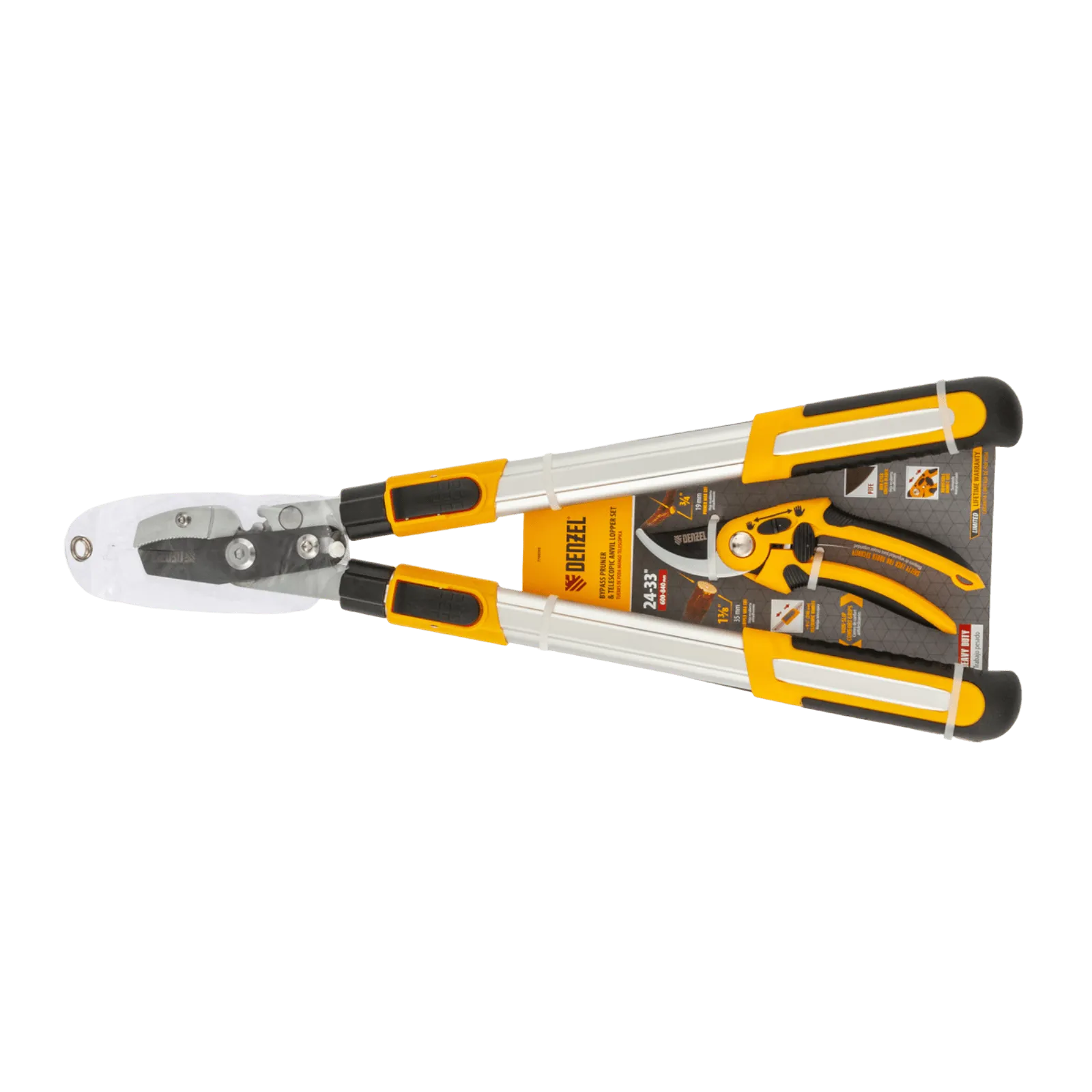 Набор Denzel 7760505 — это секатор прямого реза и сучкорез с телескопическими рукоятками длиной 22-29 дюймов. Секатор предназначен для обрезки живых веток диаметром до 19 мм, а сучкорез оптимален для срезания сухих и увядщих ветвей толщиной до 35 мм. Лезвия с тефлоновым покрытием легко срезают ветви, минимально повреждая растения. Набор будет полезен владельцам загородных участков.