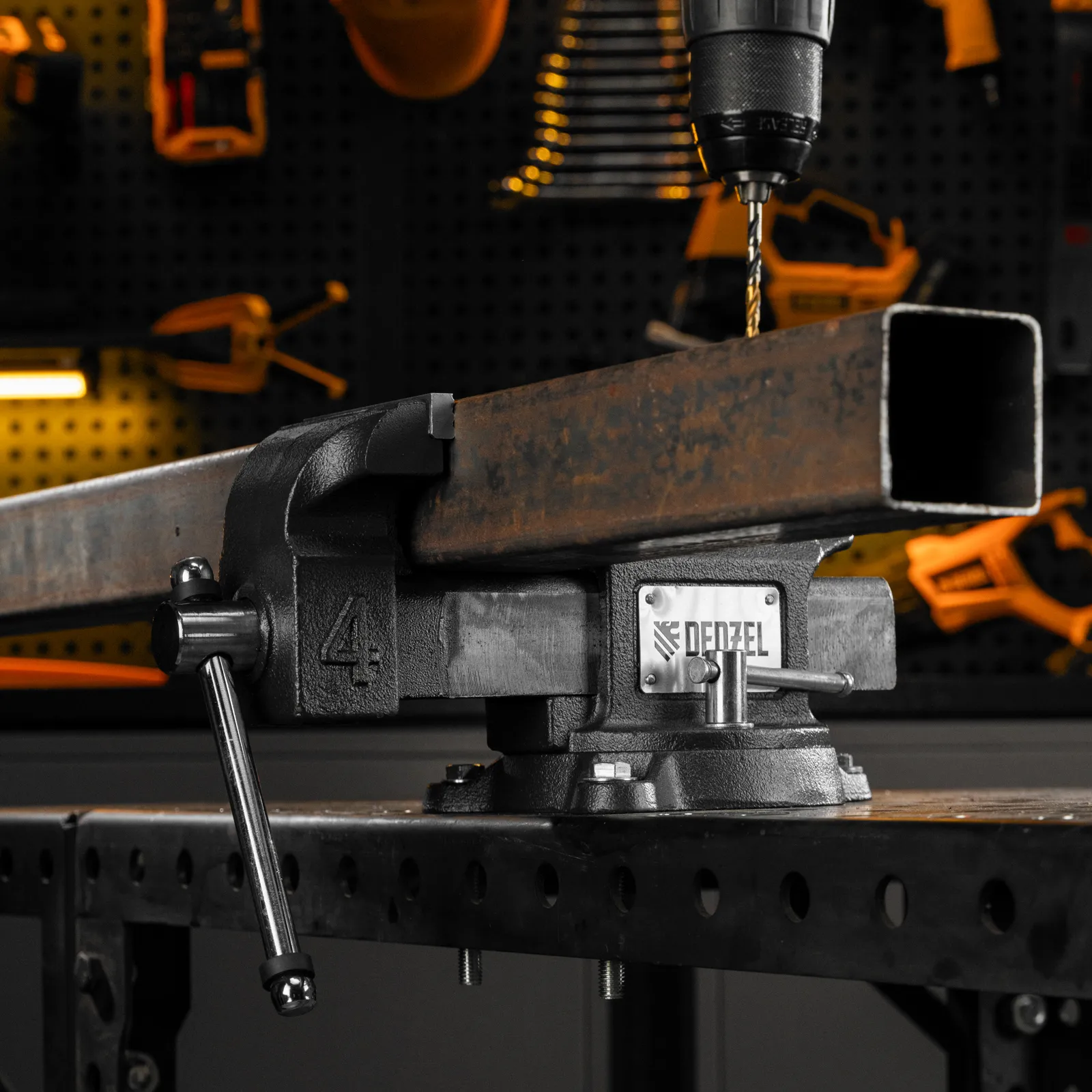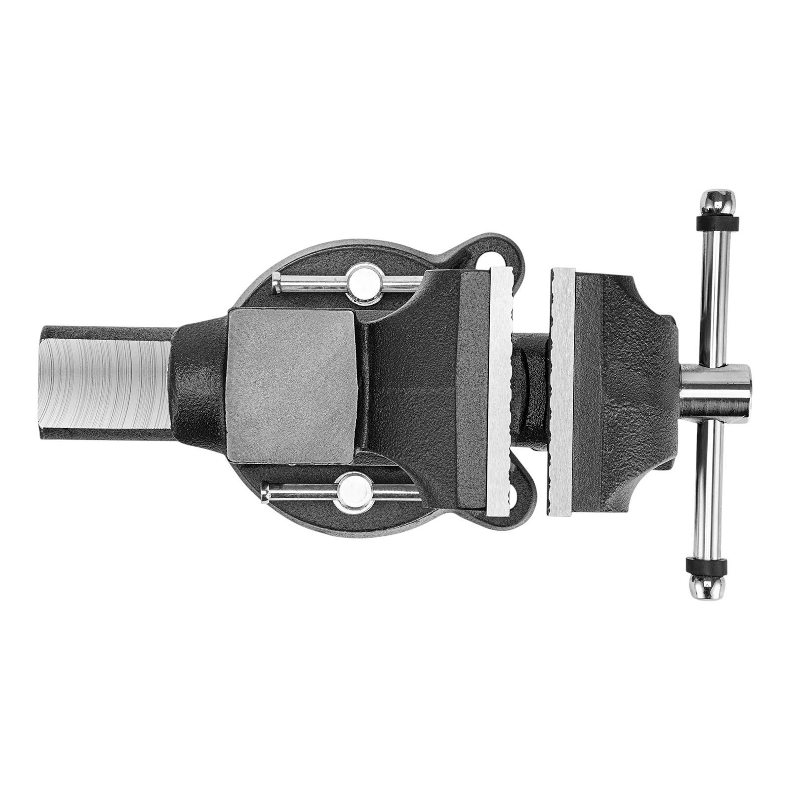 - Функциональность — тиски поворачиваются на 360°, что позволяет менять и выбирать позицию инструмента для удобной работы с заготовкой.