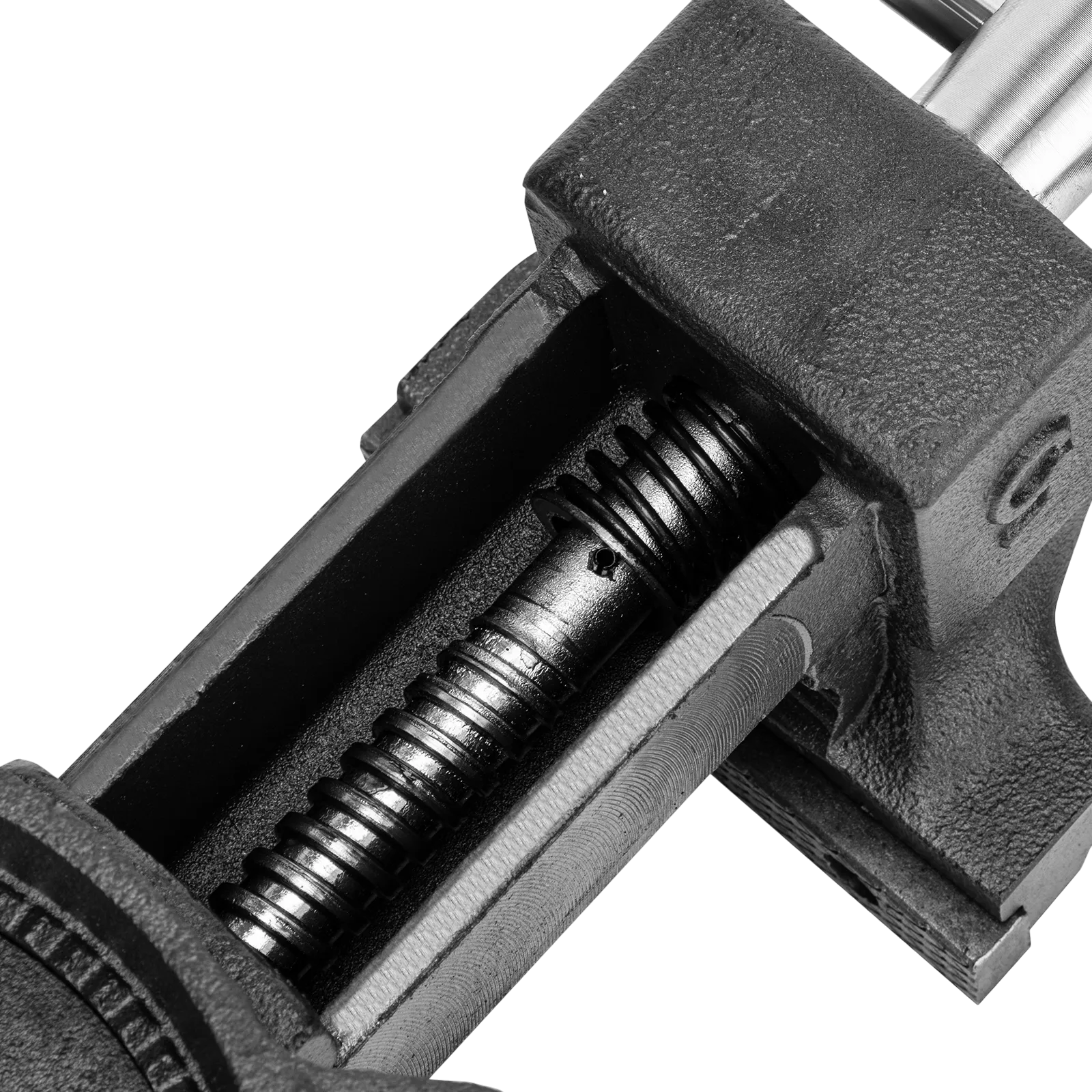 - Функциональность — тиски поворачиваются на 360°, что позволяет менять и выбирать позицию инструмента для удобной работы с заготовкой.