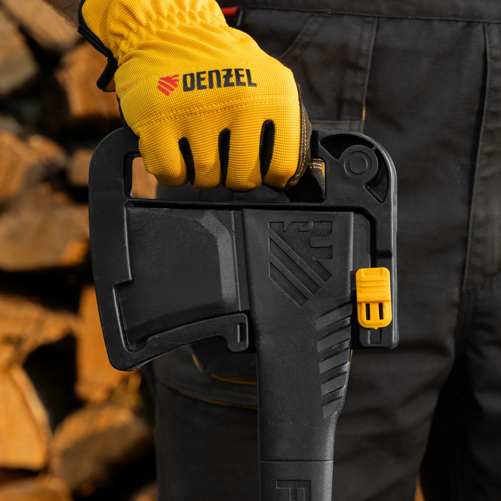 - Безопасное хранение и транспортировка — колун поставляется с защитным кожухом для лезвия.