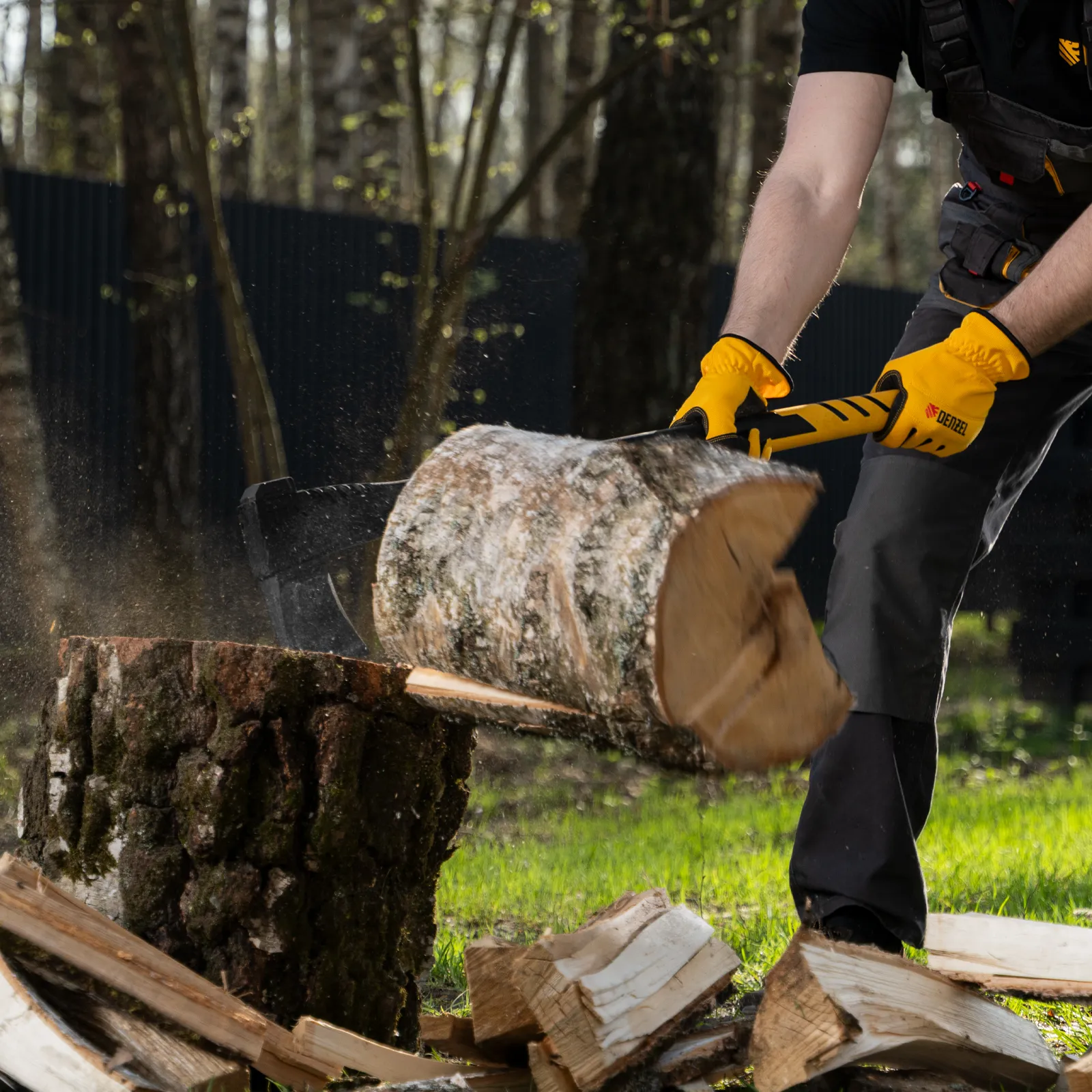 - Безопасное хранение и транспортировка — колун поставляется с защитным кожухом для лезвия.