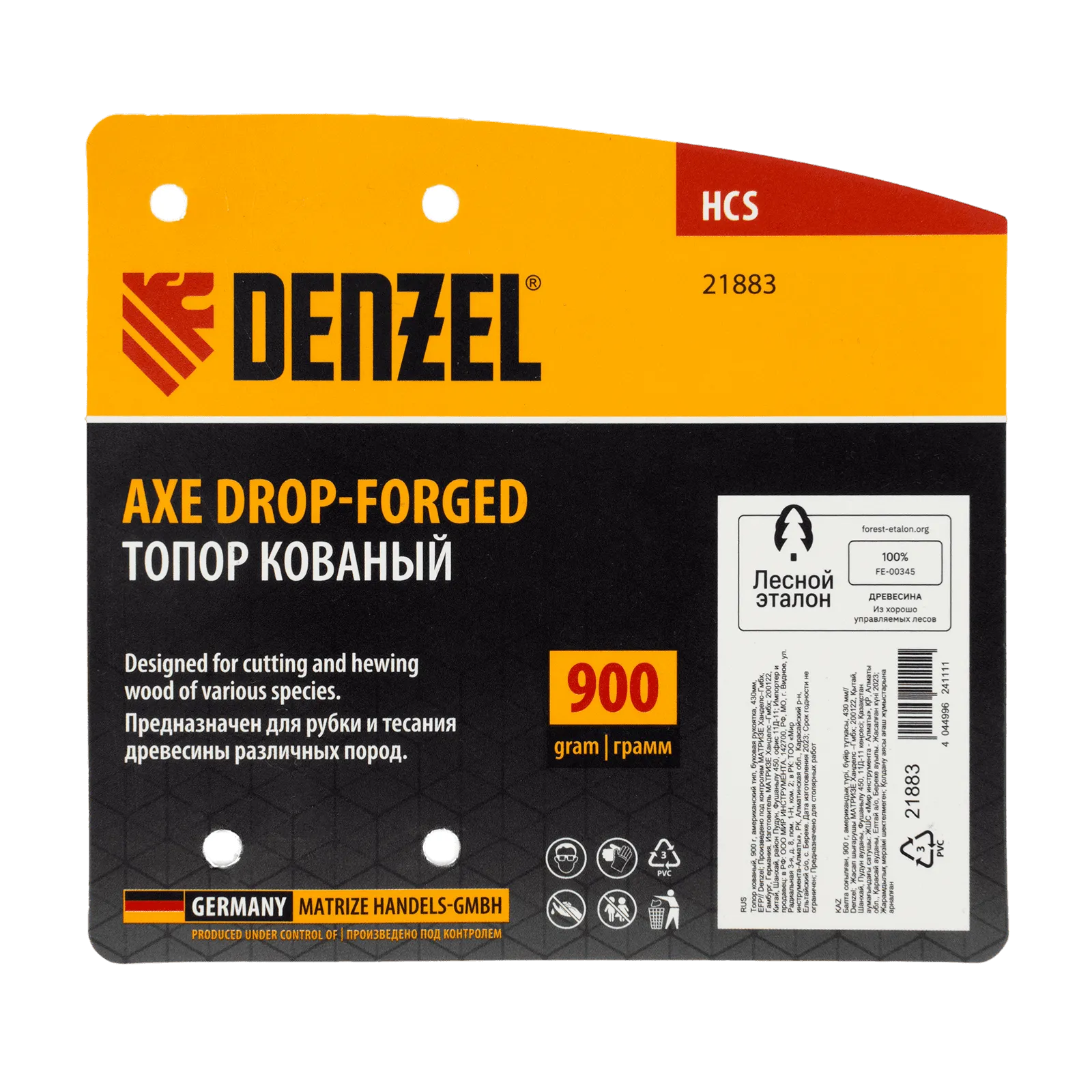 - Маркировка «Лесной эталон» — при изготовлении топорища использована древесина из сертифицированных лесов, полностью соблюдены требования, направленные на сохранение экологически ценных лесов.