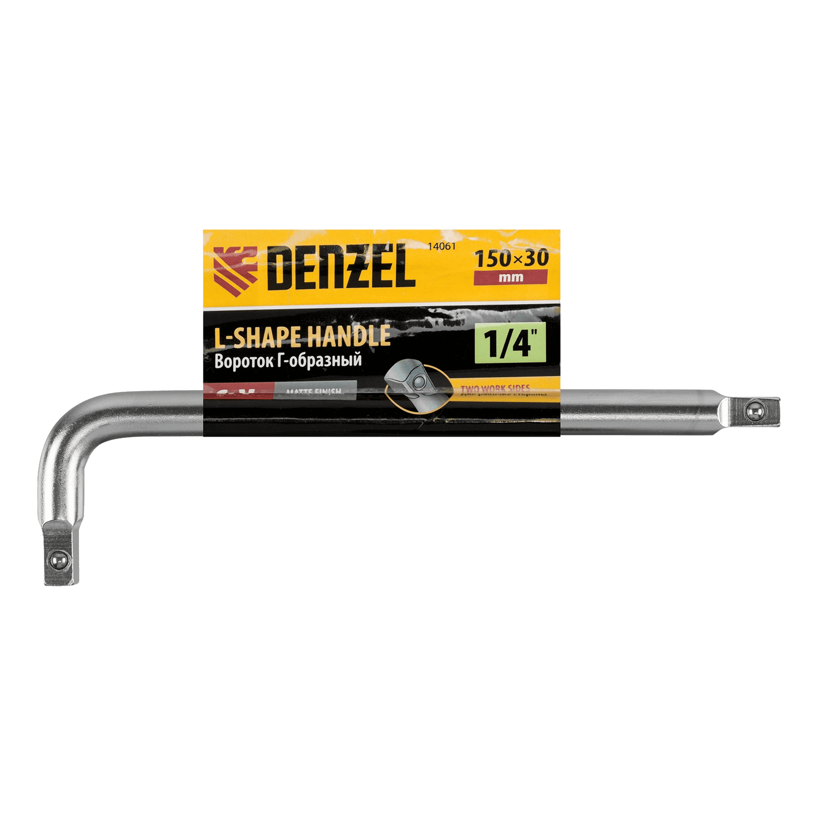 Г-образный вороток Denzel 14061 из стали CrV, размером 150 х 40 мм, с присоединительным квадратом 1/4", с покрытием «матовый хром», предназначен для ручного монтажа и демонтажа гаек, болтов и другого резьбового крепежа с помощью торцевых головок. Может использоваться в бытовой и профессиональной сфере: для ремонта велосипедов, автомобилей, станков.