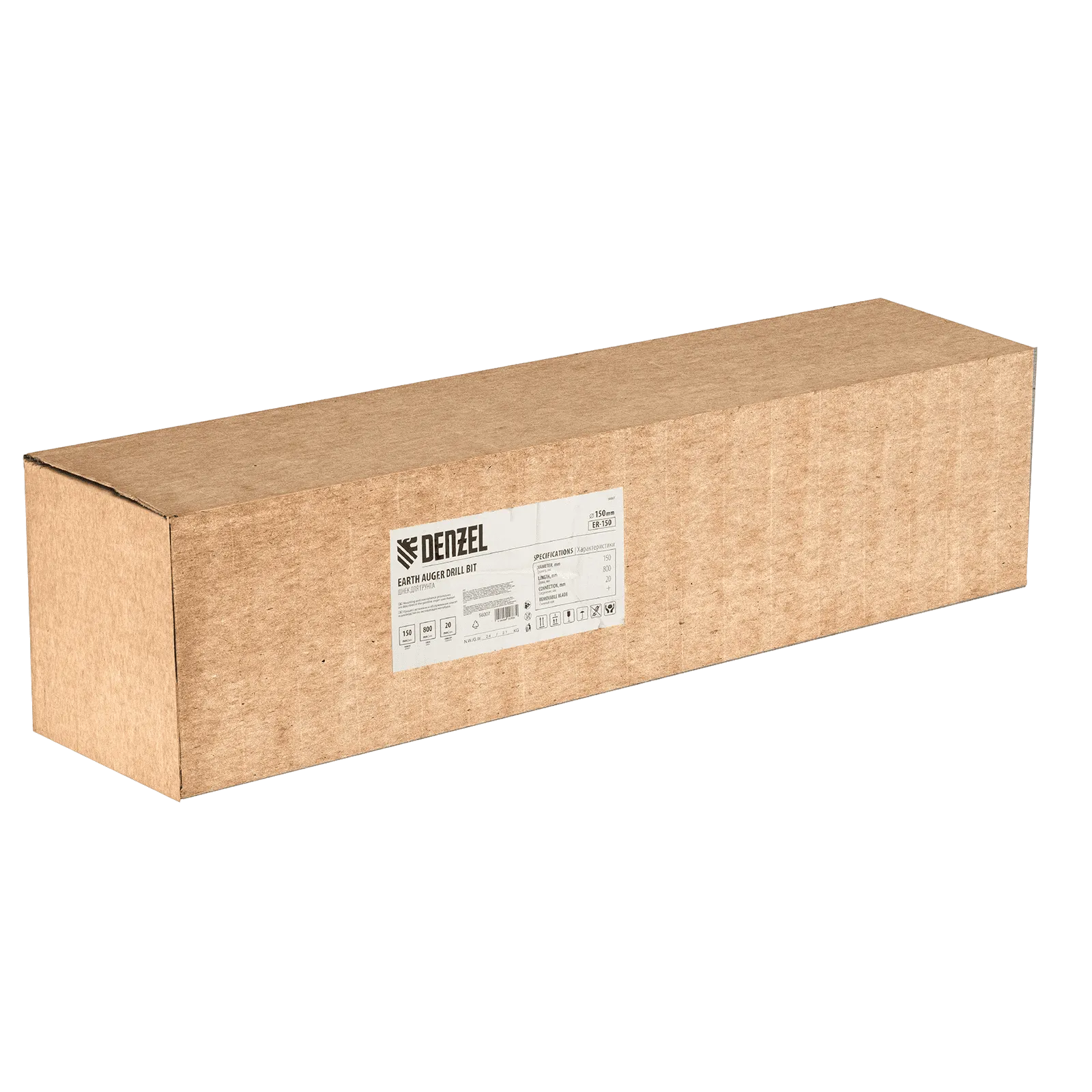 Шнек для грунта Denzel ER-150 56007 длиной 800 мм с диаметром соединения 20 мм, со съемным ножом, устанавливается на мотобур и используется для бурения отверстий диаметром 150 мм. Инструмент пригодится для установки столбчатых опор, формирования лунок для посадки растений и бурения отверстий в грунте различной плотности при выполнении других задач.