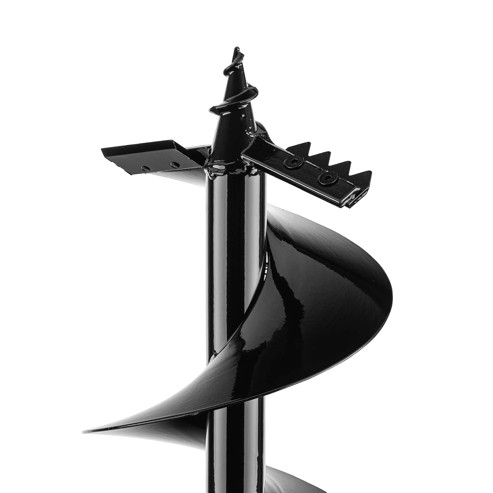 - Эффективная работа — усиленный забурник упрощает центрирование шнека, рабочая кромка с прецизионной заточкой легко разрезает грунт.
