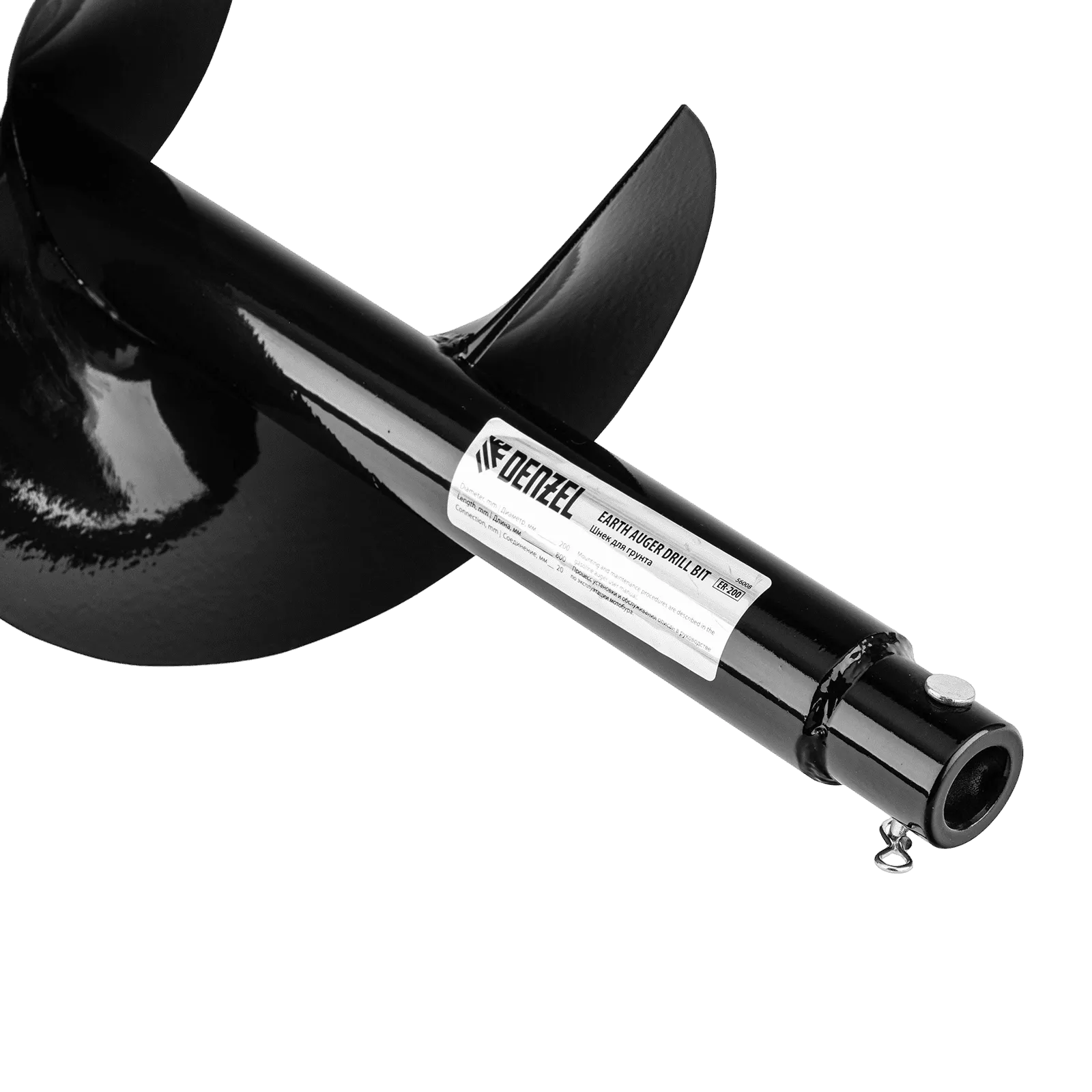 Шнек для грунта Denzel ER-200 56008 длиной 800 мм с диаметром соединения 20 мм, со съемным ножом, устанавливается на мотобур и используется для бурения отверстий диаметром 200 мм. Инструмент пригодится для установки столбчатых опор, формирования лунок для посадки растений и бурения отверстий в грунте различной плотности при выполнении других задач.