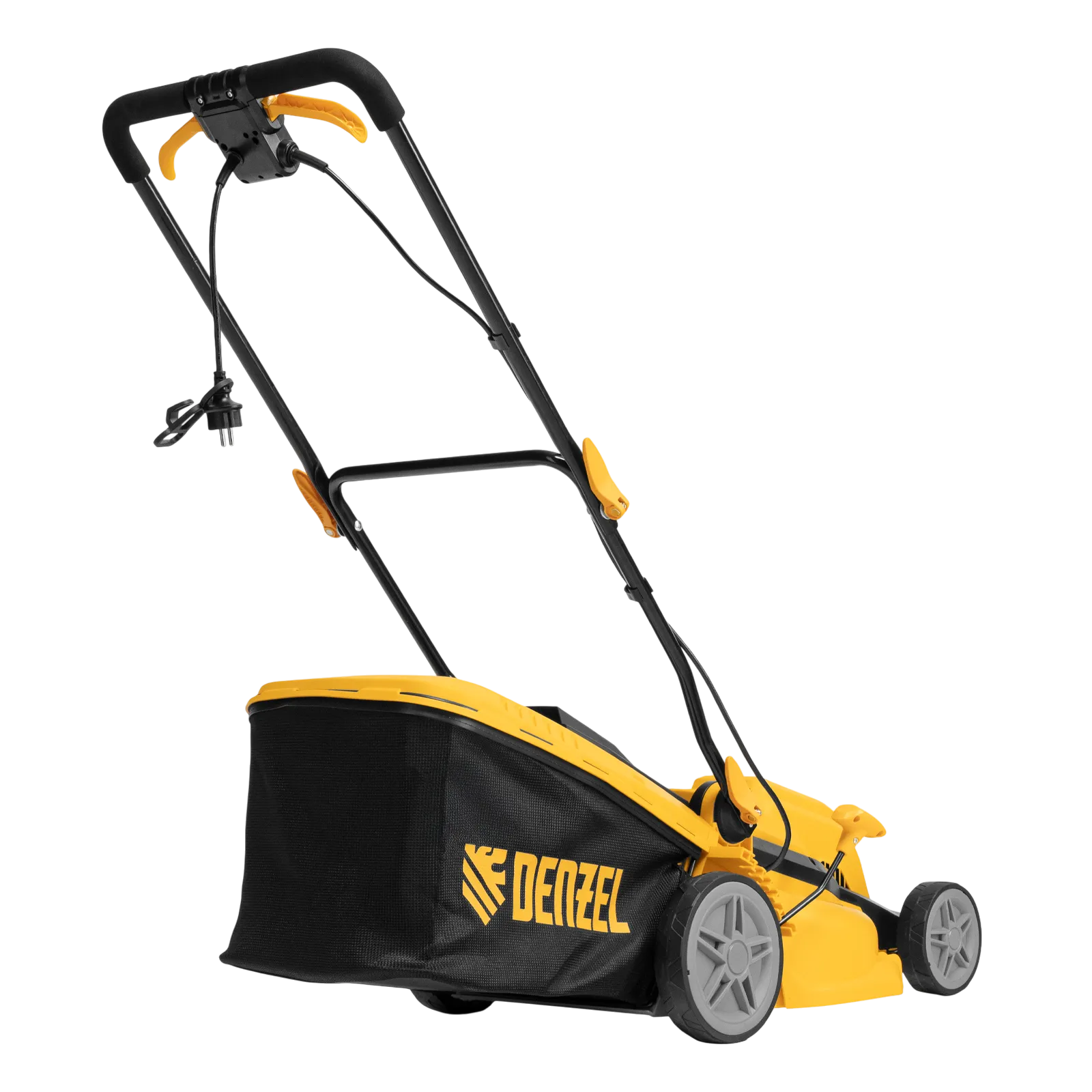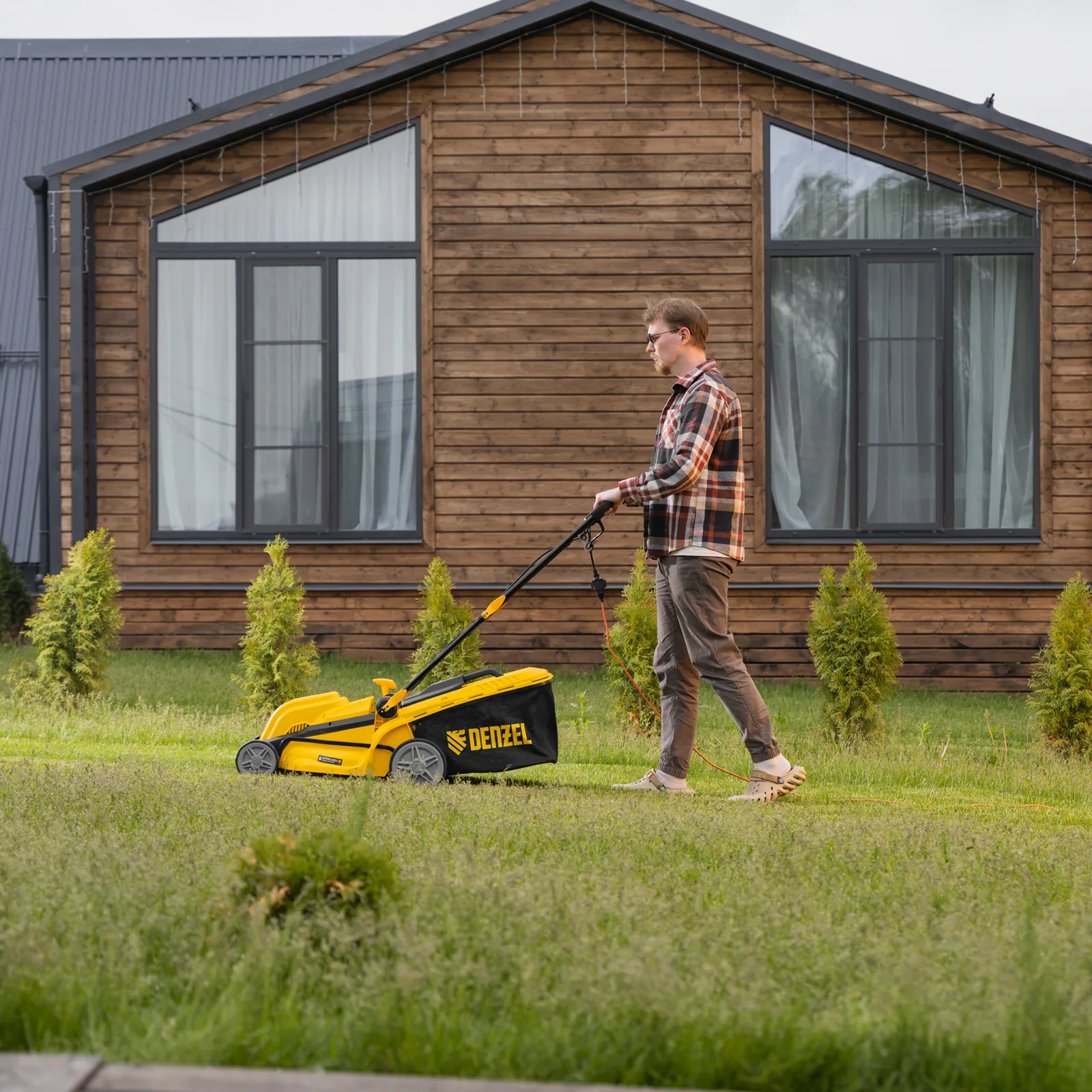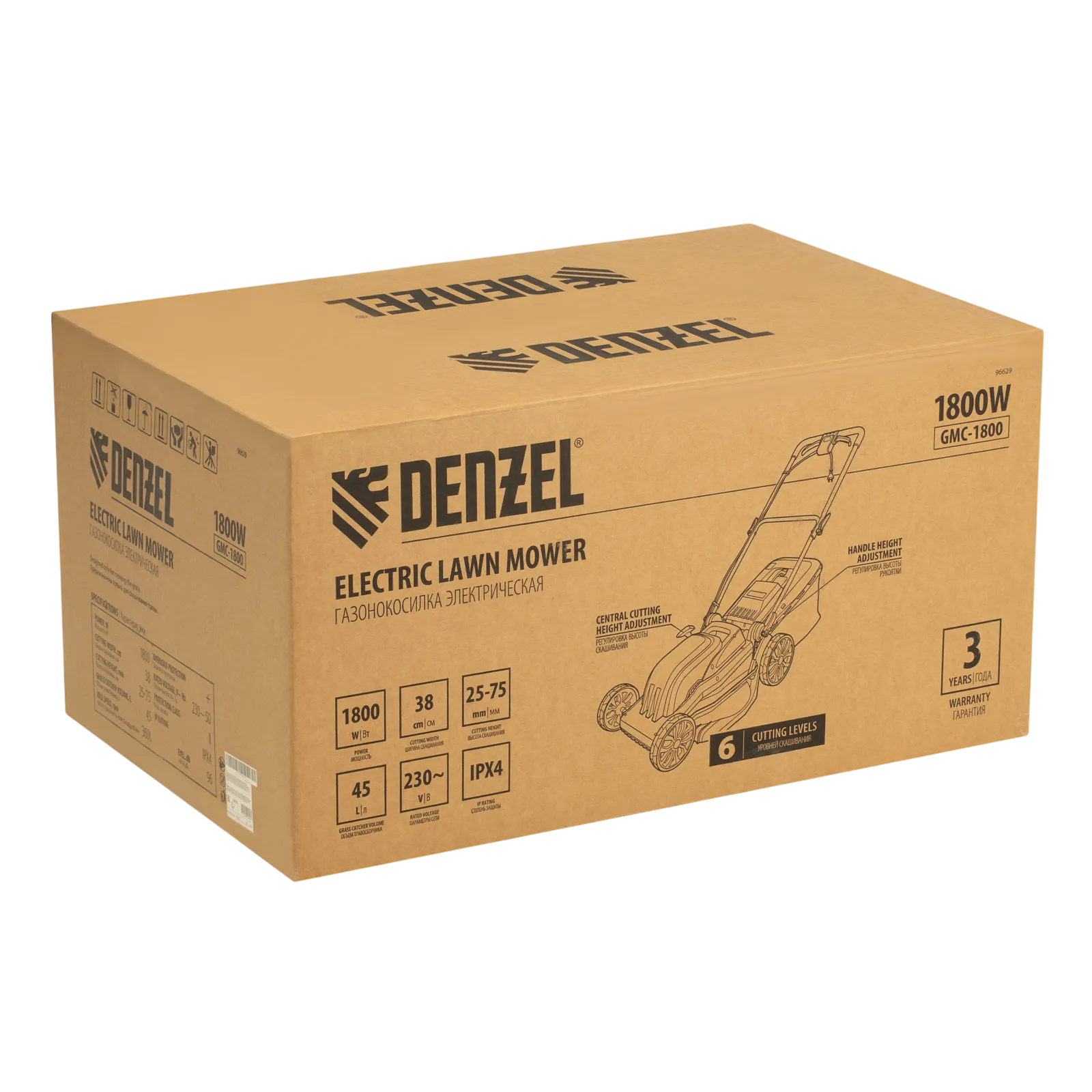 Электрическая газонокосилка Denzel GMC-1800 96629 мощностью 1800 Вт, с травосборником объемом 35 л, обеспечивает ширину скашивания 38 см и позволяет регулировать высоту скашивания — предусмотрено 6 уровней. Предназначена для ухода за газоном и садом, оптимальна для бытового применения. Можно выбрать тип травяного покрытия, установив 1 из 6 уровней высоты в диапазоне от 25 до 75 мм. Газонокосилка пригодится владельцам небольших дачных участков.
