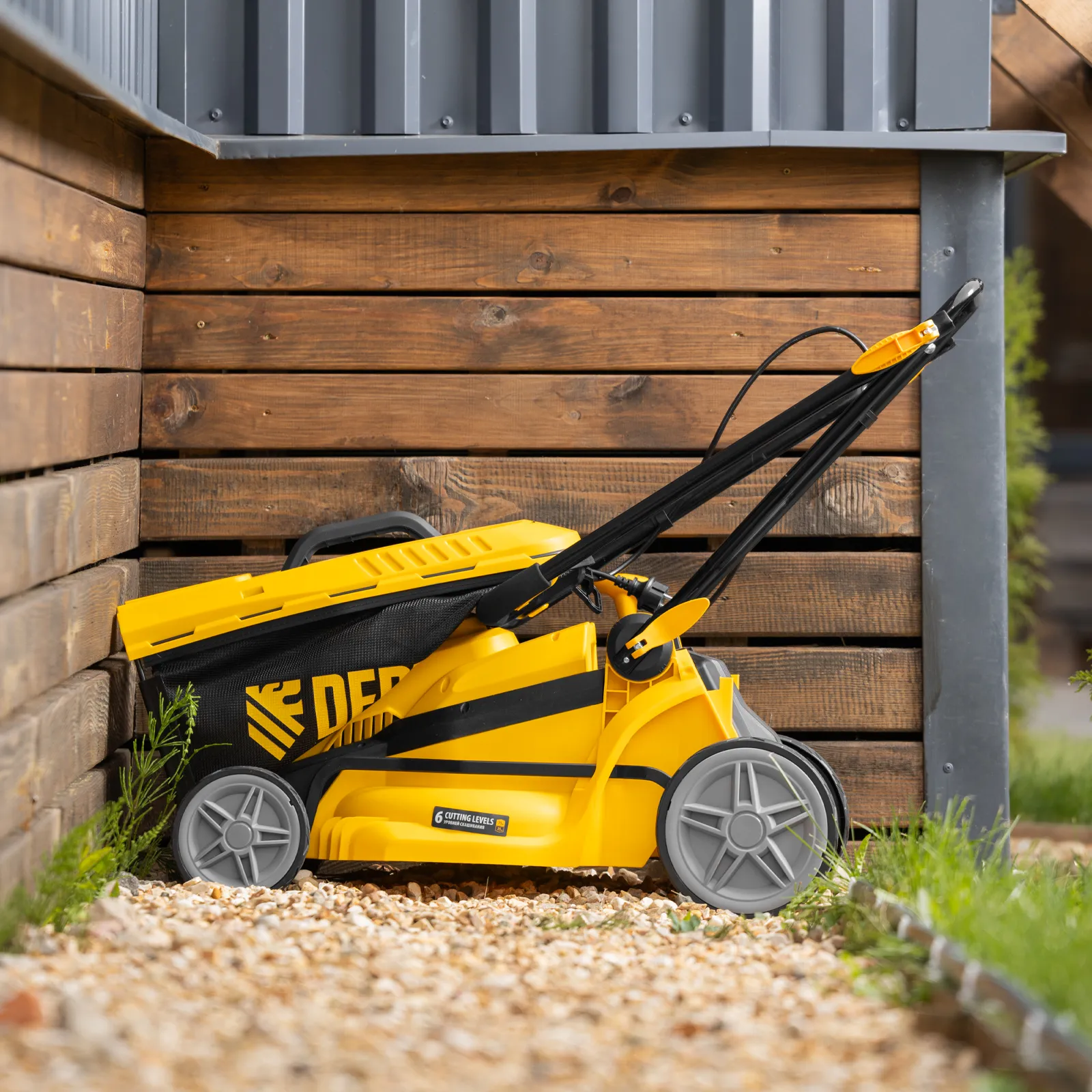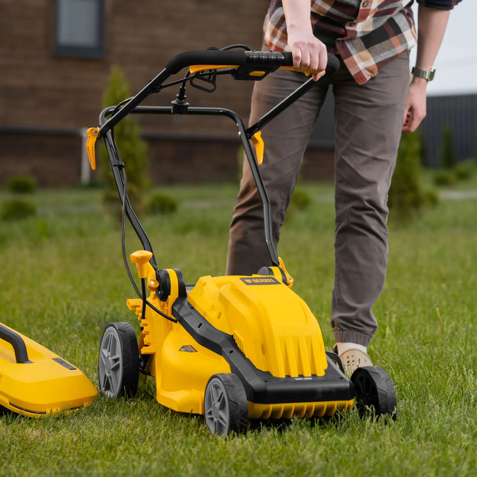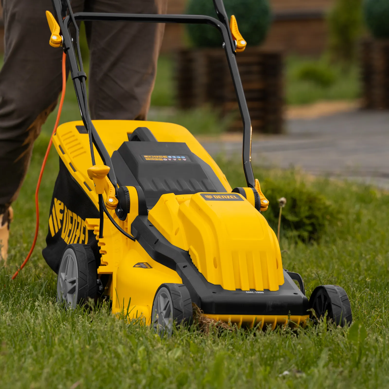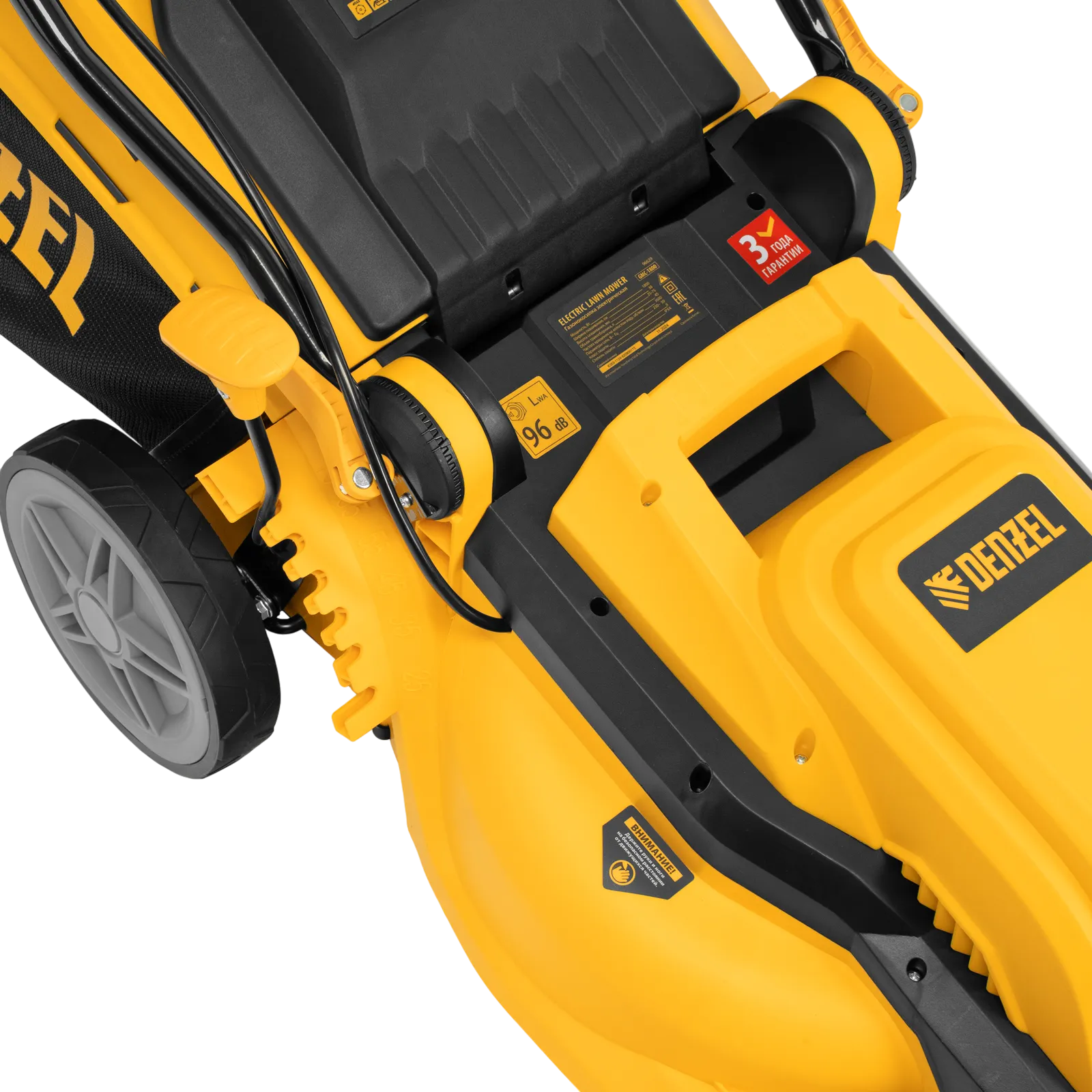 Электрическая газонокосилка Denzel GMC-1800 96629 мощностью 1800 Вт, с травосборником объемом 35 л, обеспечивает ширину скашивания 38 см и позволяет регулировать высоту скашивания — предусмотрено 6 уровней. Предназначена для ухода за газоном и садом, оптимальна для бытового применения. Можно выбрать тип травяного покрытия, установив 1 из 6 уровней высоты в диапазоне от 25 до 75 мм. Газонокосилка пригодится владельцам небольших дачных участков.