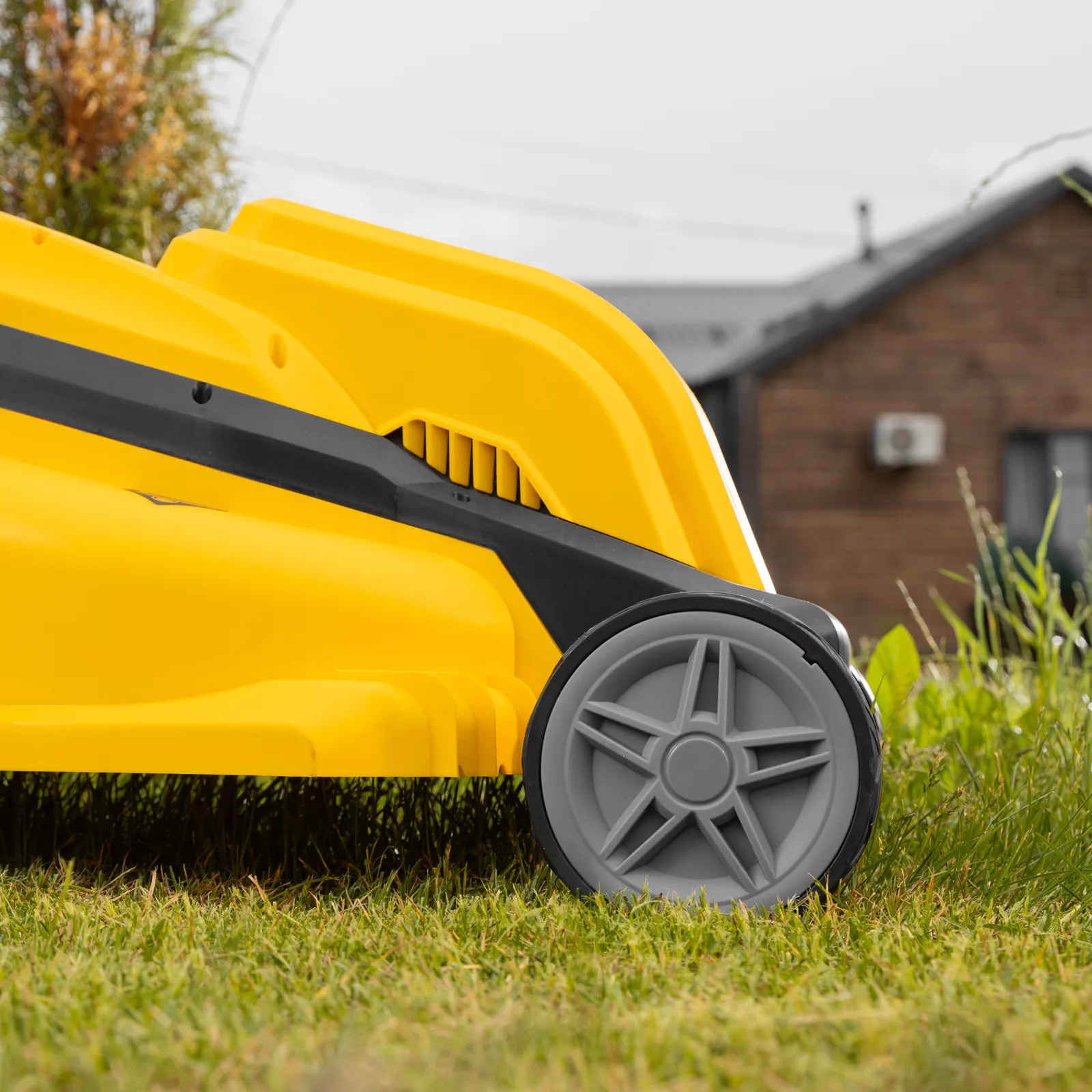 - Комфортная транспортировка — газонокосилку удобно перемещать при помощи специальной рукоятки.