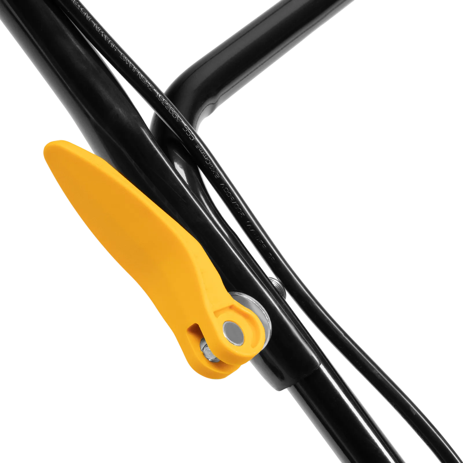 - Удобное использование — высота скашивания регулируется при помощи одного рычага.