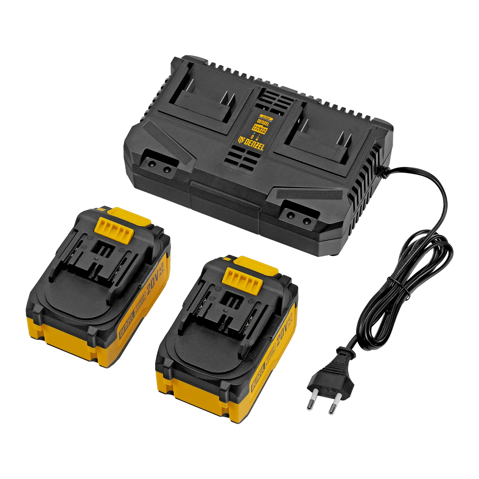 - Готовность к эксплуатации — 2 аккумулятора емкостью 4 А·ч и зарядное устройство входят в комплект поставки.