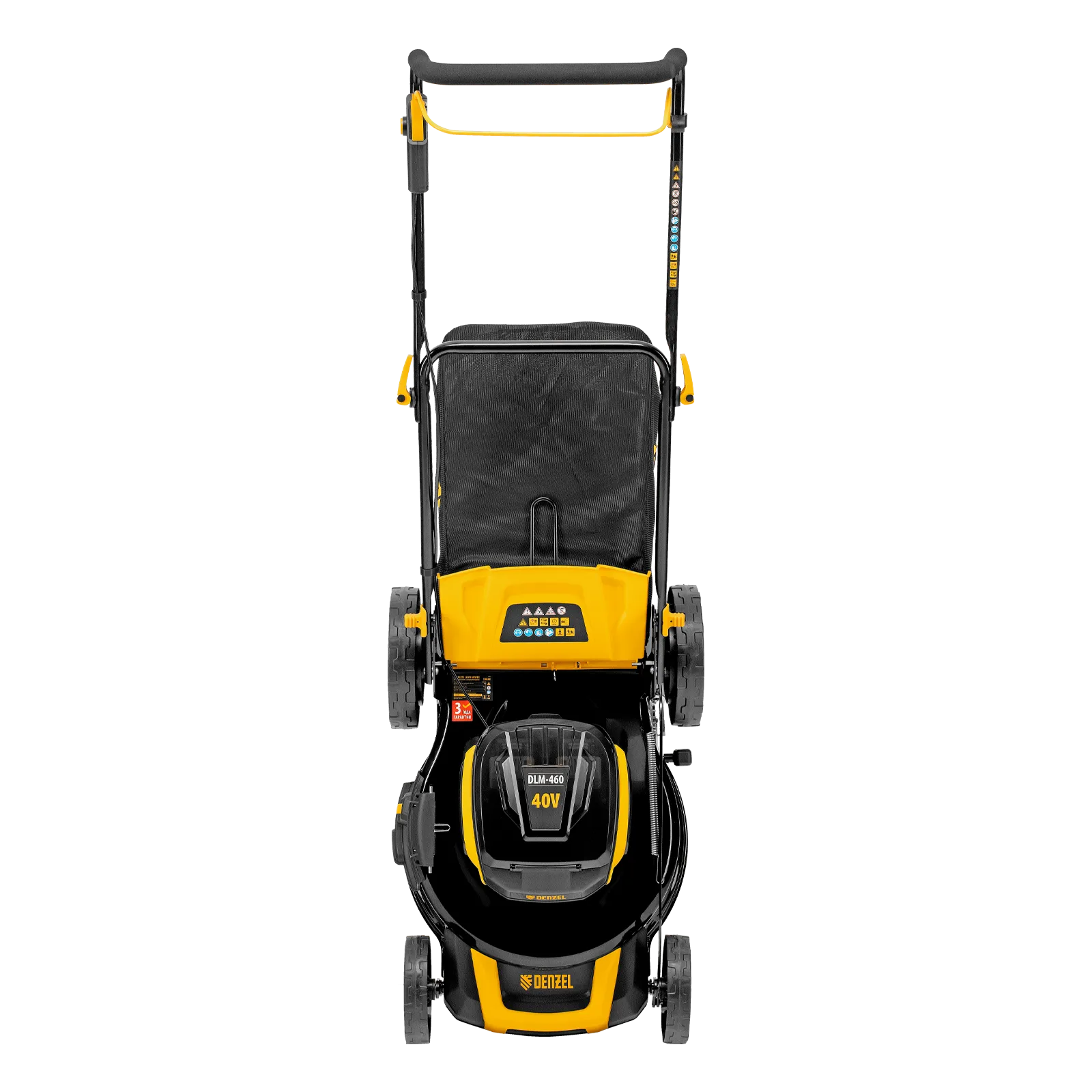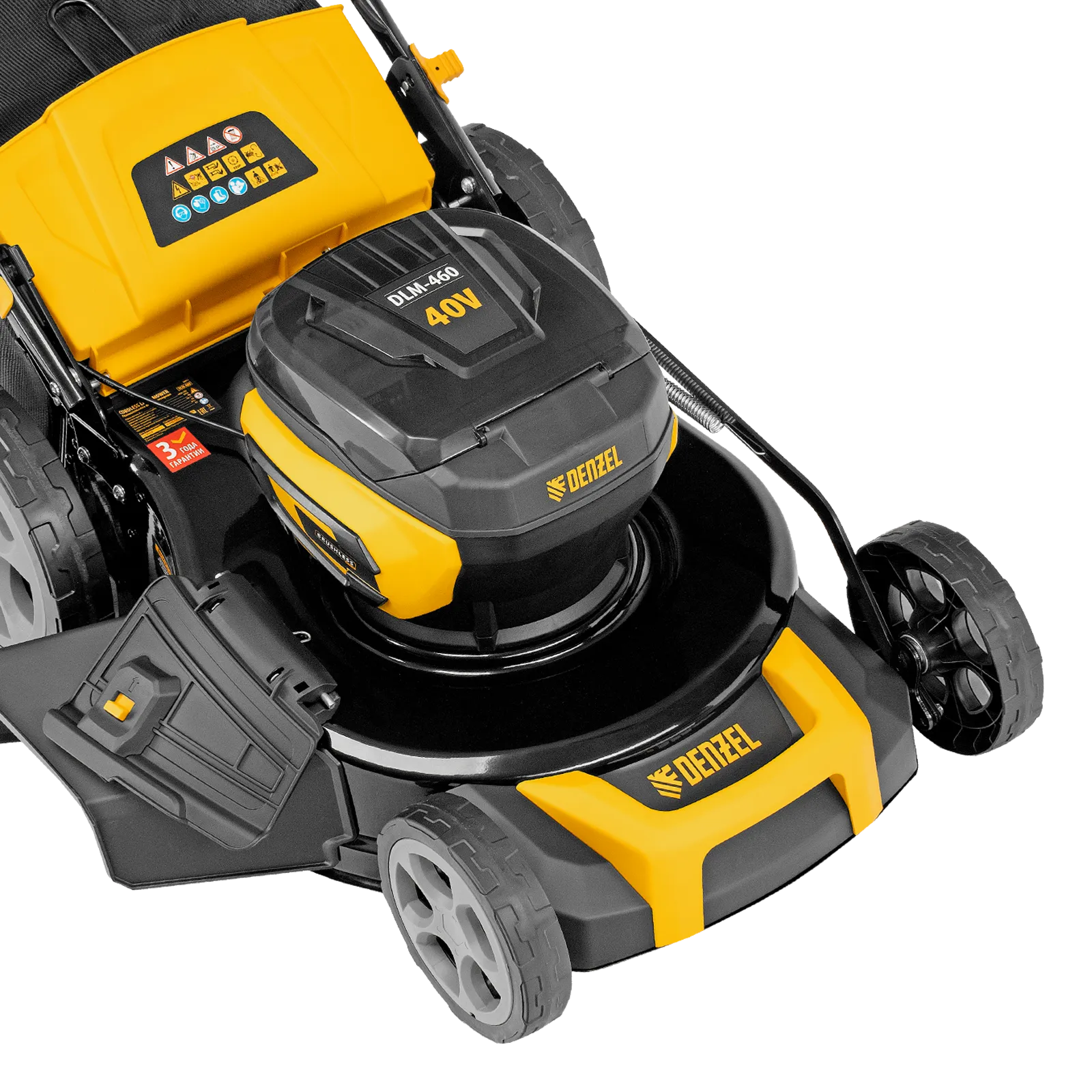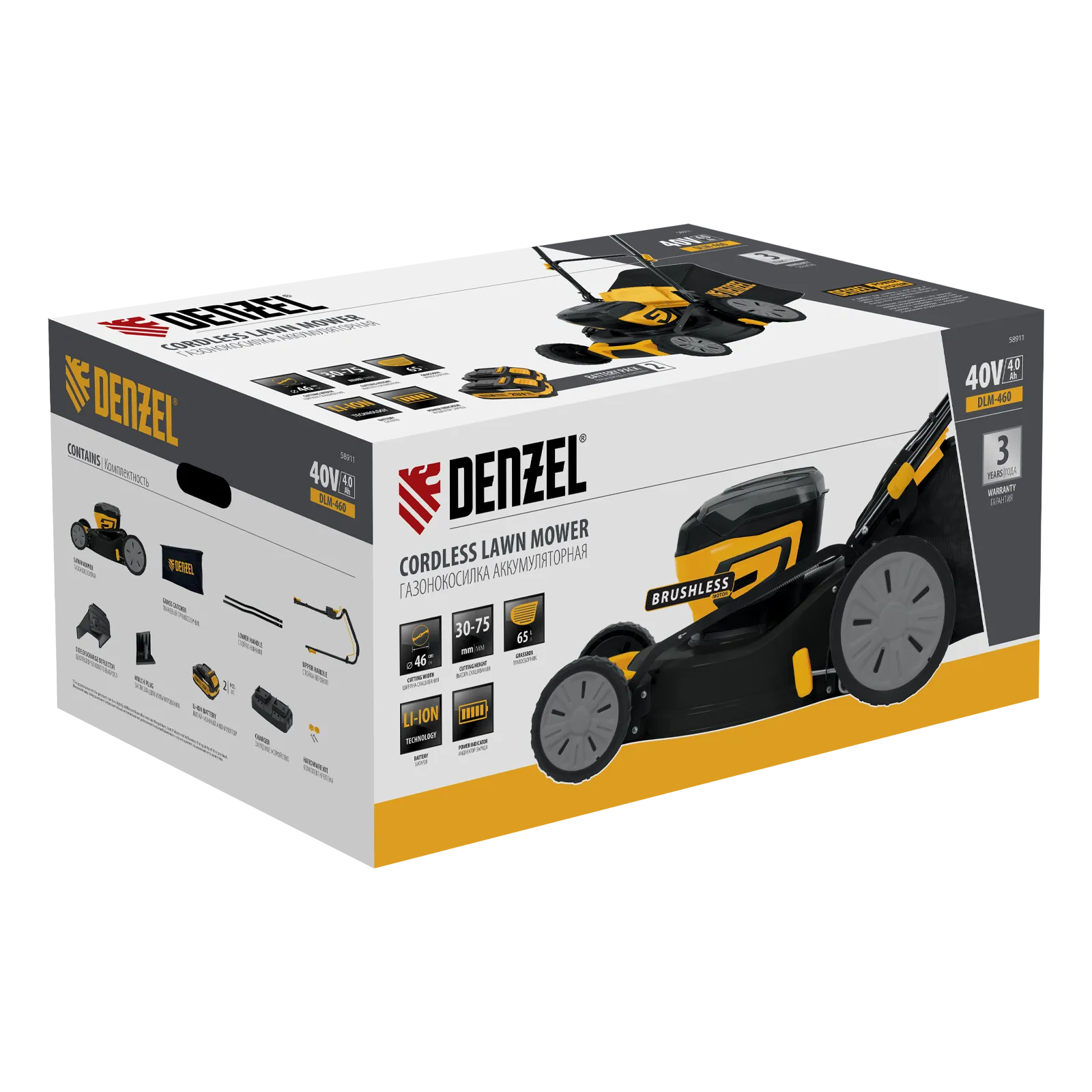 Аккумуляторная газонокосилка Denzel DLM-460 58911 с бесщеточным двигателем и травосборником объемом 65 л работает от двух аккумуляторов Li-Ion с рабочим напряжением 20 V каждый и обеспечивает ширину скашивания 460 мм. Высоту скашиваемой травы можно регулировать: предусмотрено 8 уровней в диапазоне 30-75 мм. Для регулировки предусмотрен специальный рычаг. Мощный бесщеточный двигатель обеспечивает высокую эффективность работы и не требует сложного ухода. Тканевый травосборник не утяжеляет конструкцию, его легко опустошать. Газонокосилка оптимальна для ухода за садом, огородом или небольшим приусадебным участком.