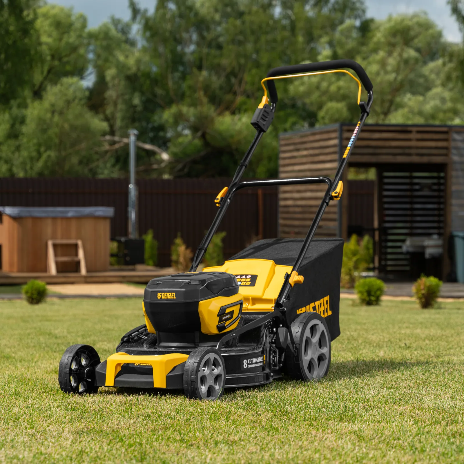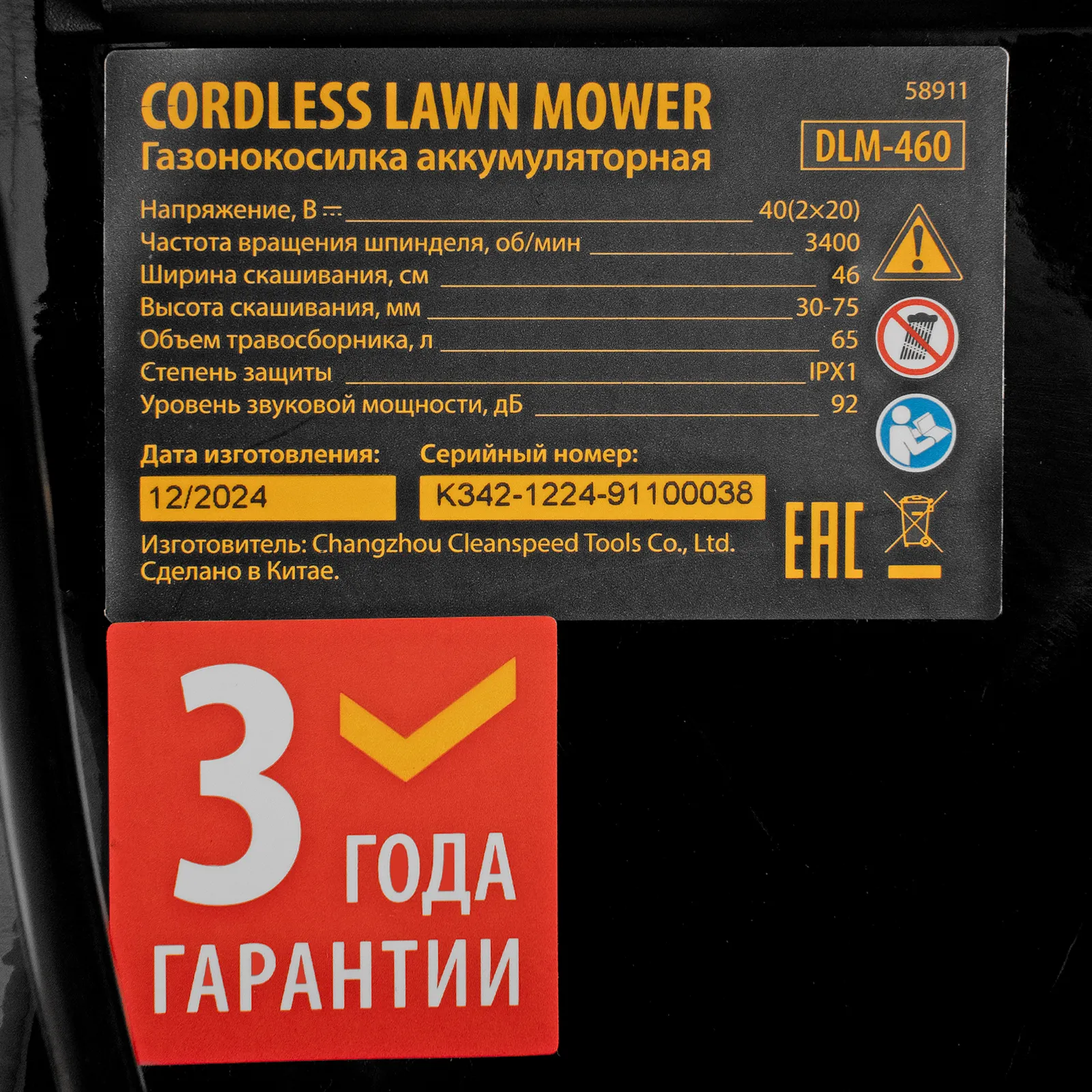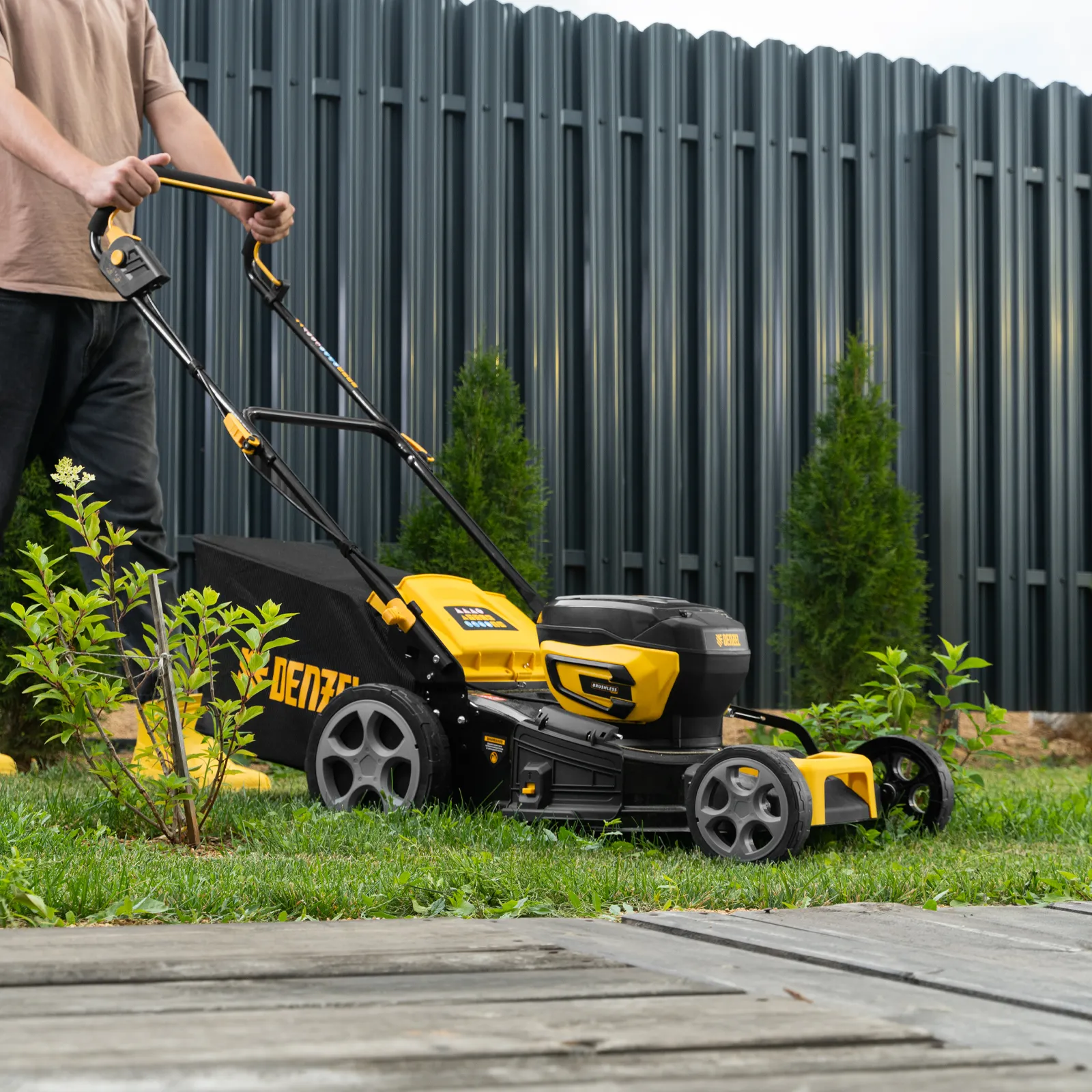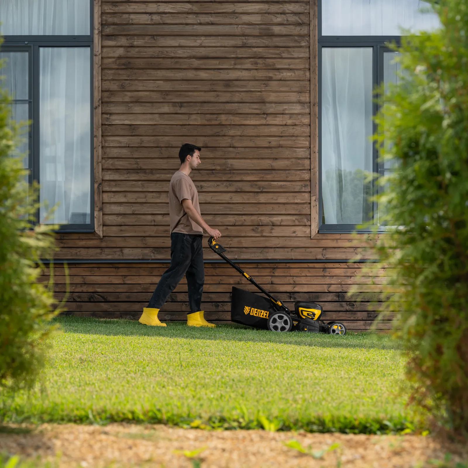 Аккумуляторная газонокосилка Denzel DLM-460 58911 с бесщеточным двигателем и травосборником объемом 65 л работает от двух аккумуляторов Li-Ion с рабочим напряжением 20 V каждый и обеспечивает ширину скашивания 460 мм. Высоту скашиваемой травы можно регулировать: предусмотрено 8 уровней в диапазоне 30-75 мм. Для регулировки предусмотрен специальный рычаг. Мощный бесщеточный двигатель обеспечивает высокую эффективность работы и не требует сложного ухода. Тканевый травосборник не утяжеляет конструкцию, его легко опустошать. Газонокосилка оптимальна для ухода за садом, огородом или небольшим приусадебным участком.