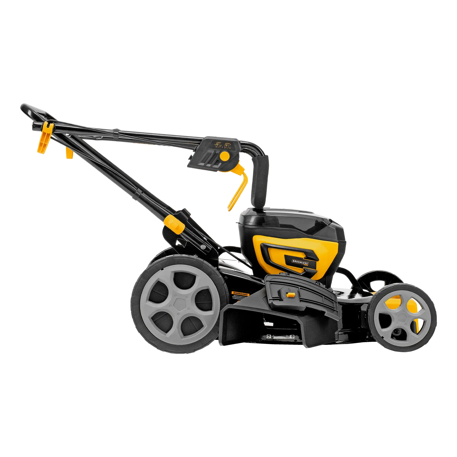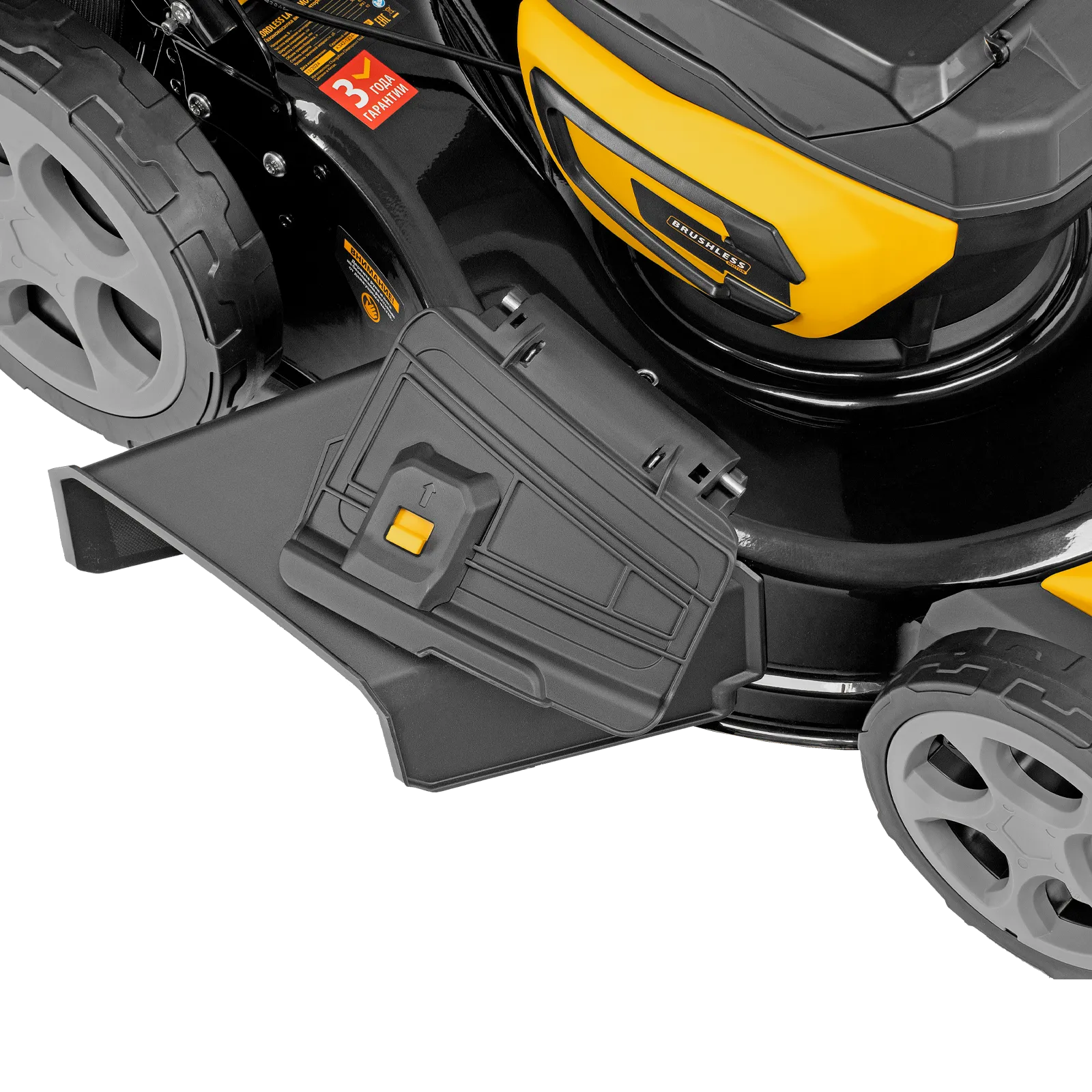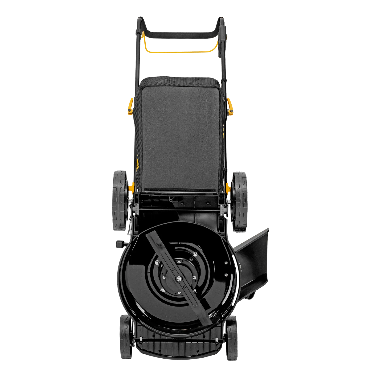 - 3 режима работы — можно выбрать сбор в травосборник, боковой выброс или мульчирование (измельчение травы и равномерное распределение ее по участку).