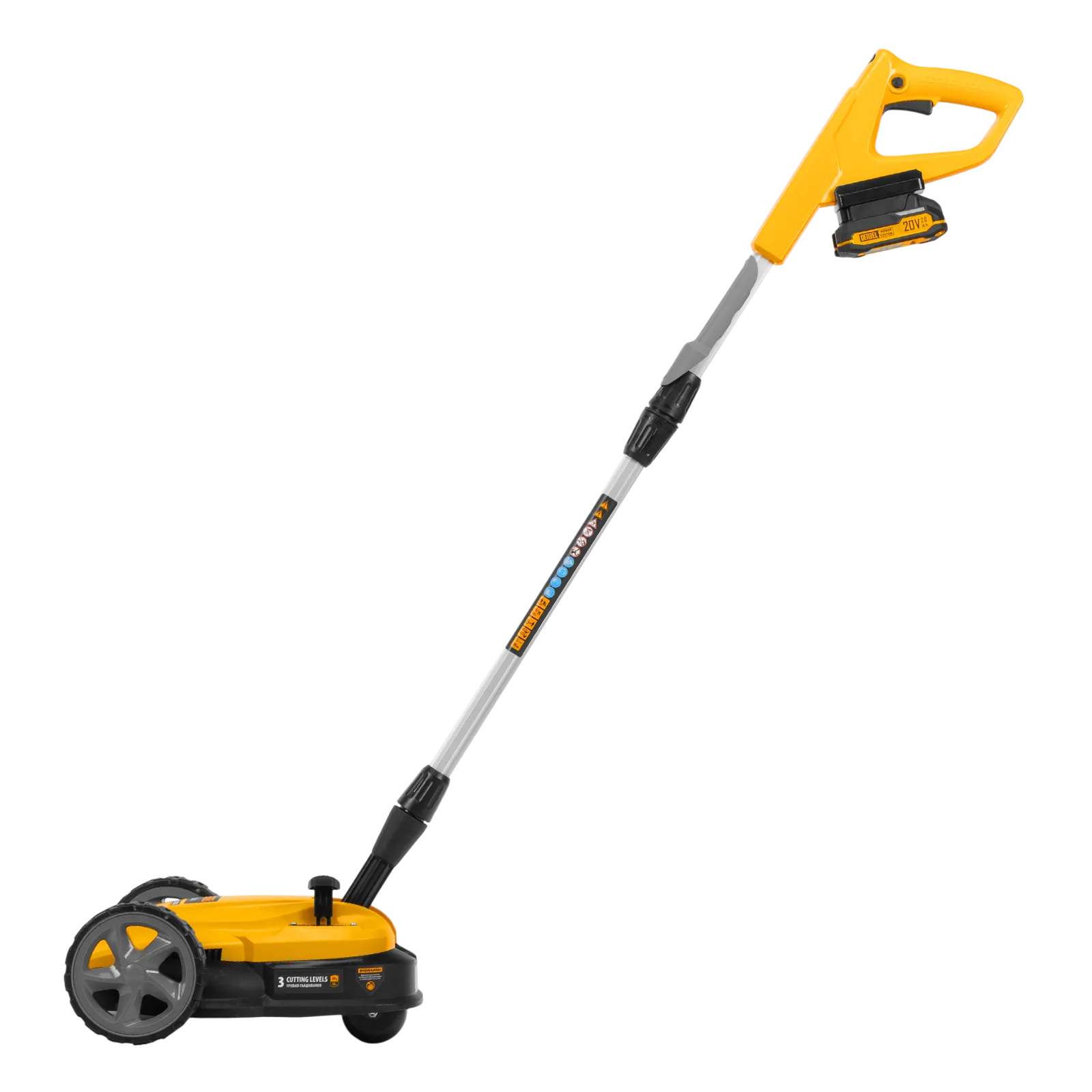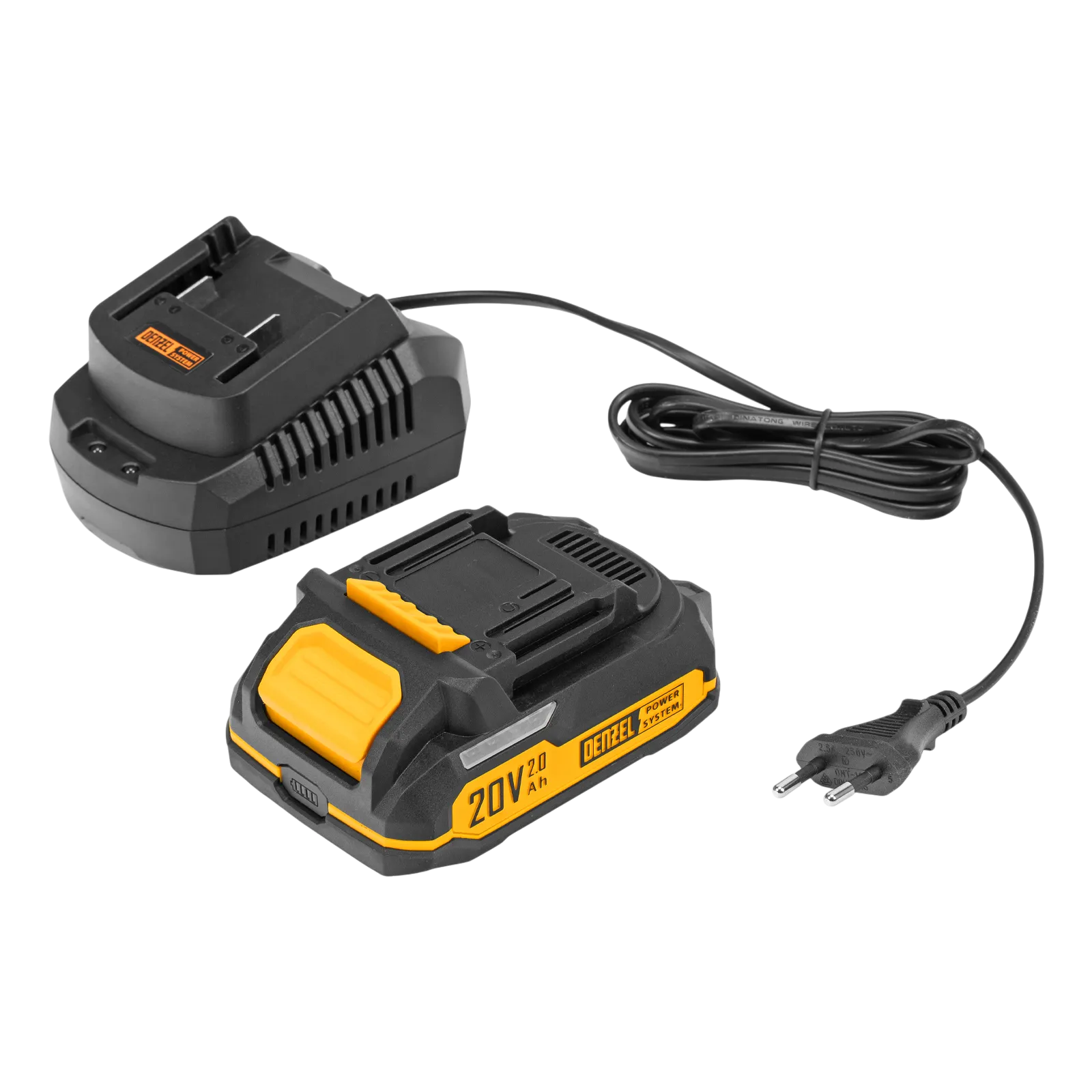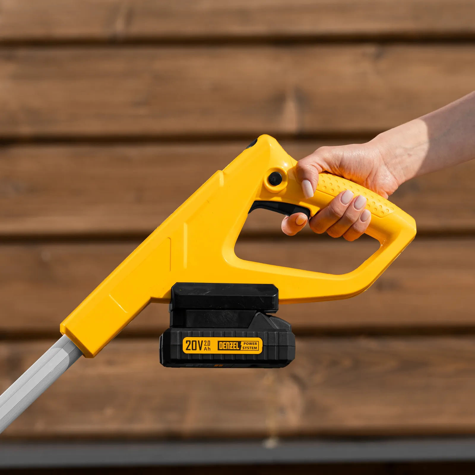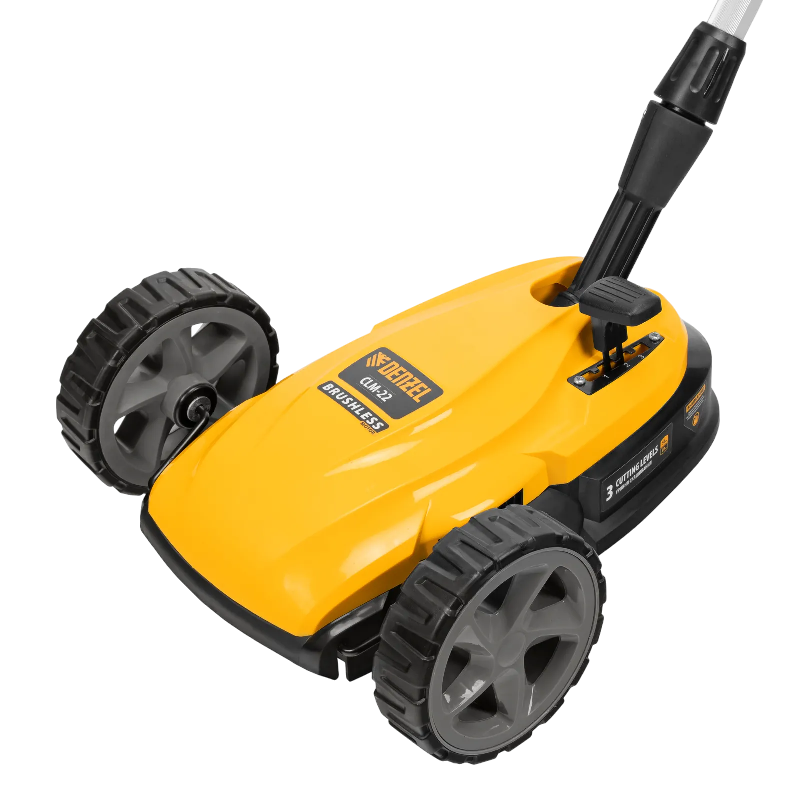 - Универсальность — газонокосилка совместима со всеми аккумуляторными батареями единой платформы Denzel Power System 20V.