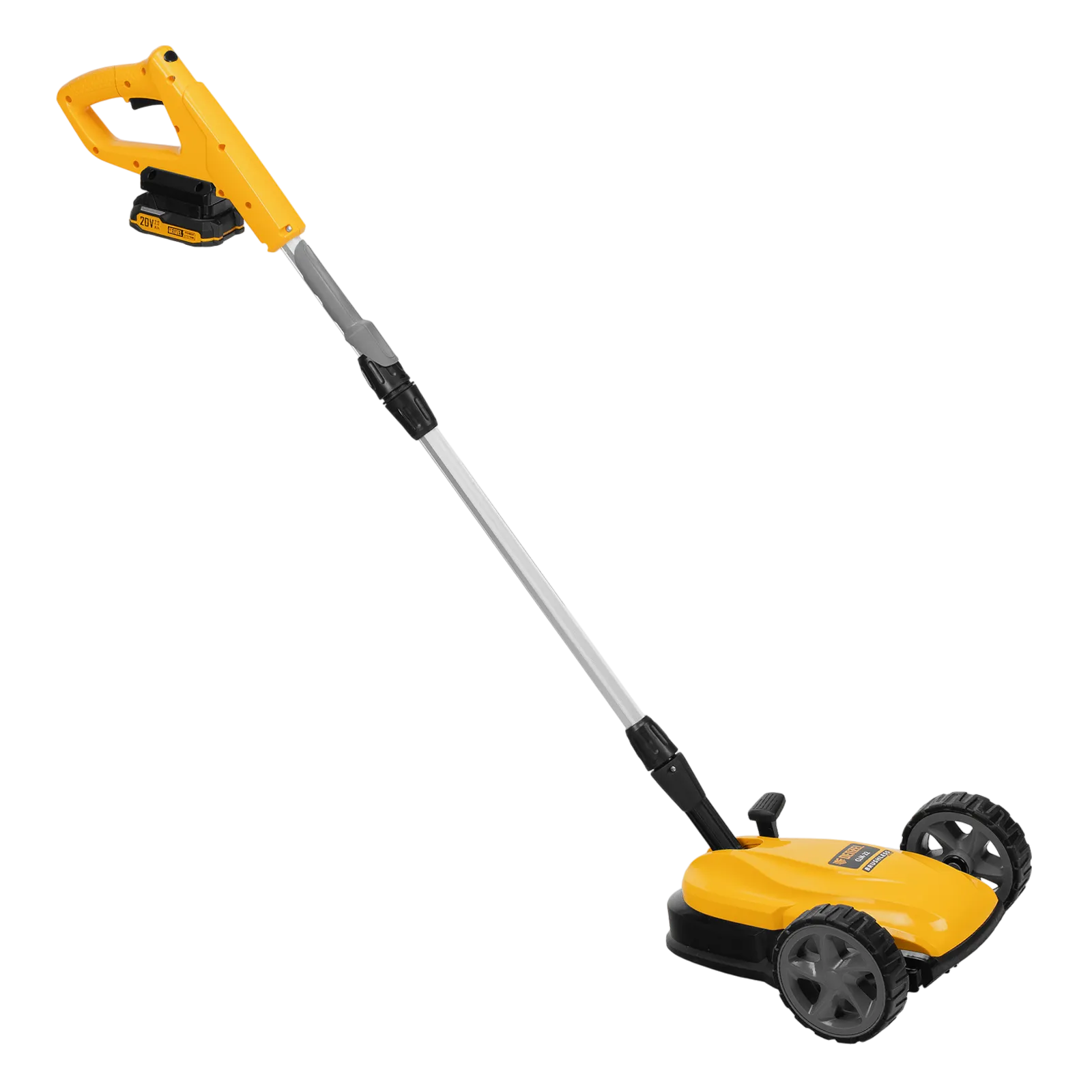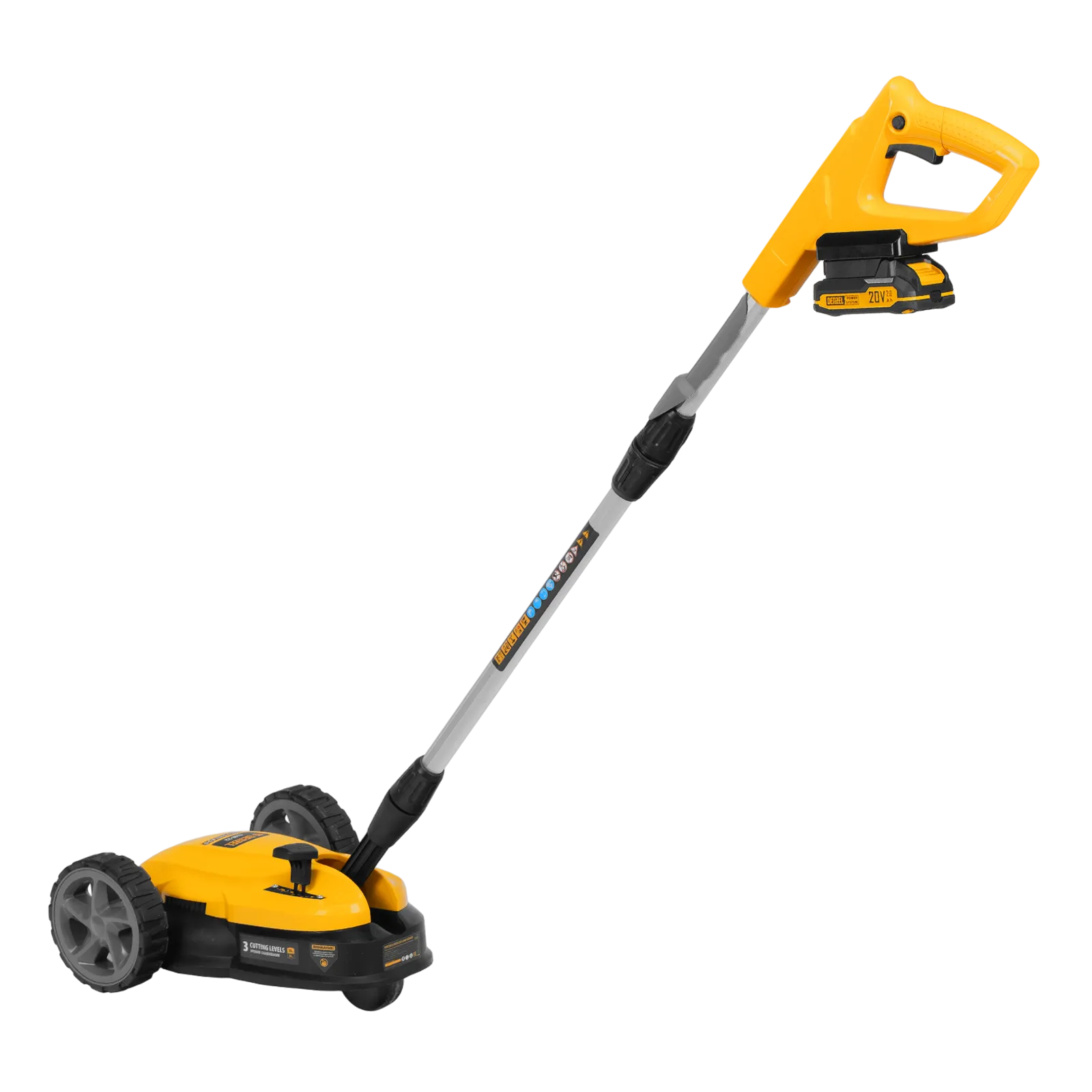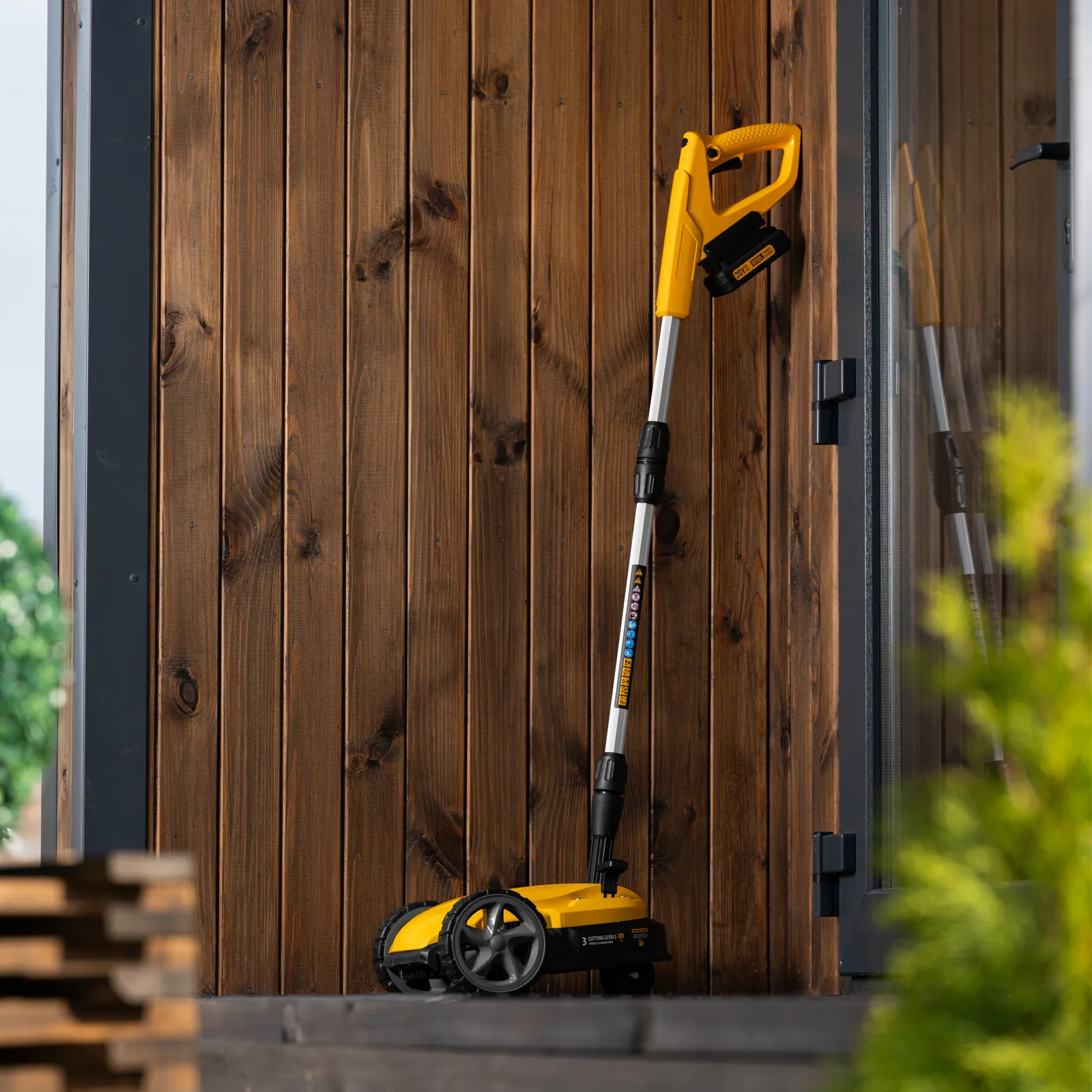 - Мобильность — благодаря небольшому весу 3,7 кг (без АКБ), двум большим и одному малому сферическому колесу технику легко перемещать, косить траву удобно даже в узких и труднодоступных местах.