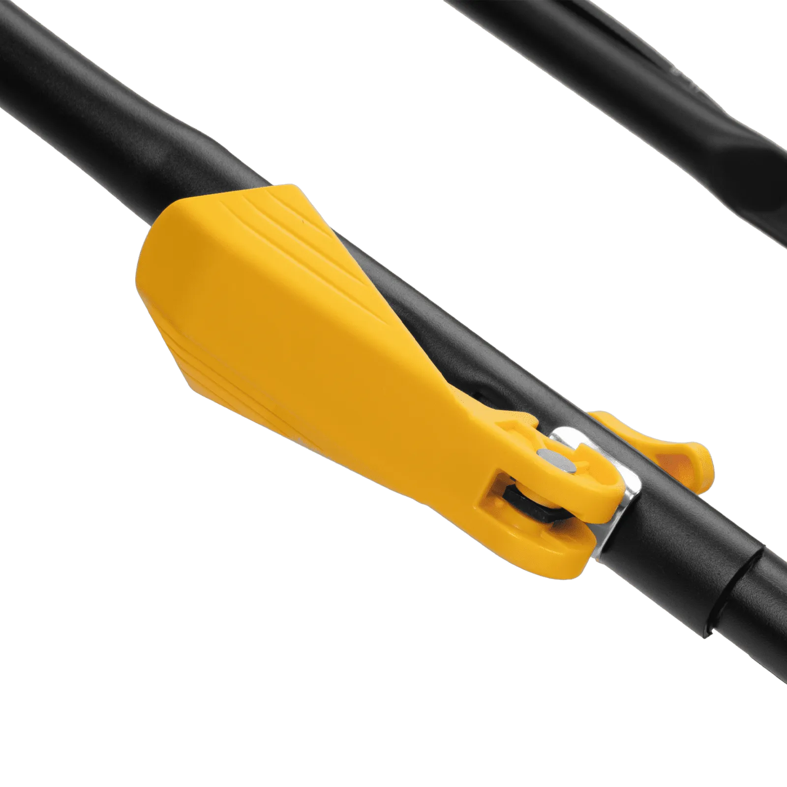 - Быстрозажимные эксцентриковые фиксаторы — рукоятка складывается за считанные минуты, поэтому подготовить косилку к хранению не составит труда.
