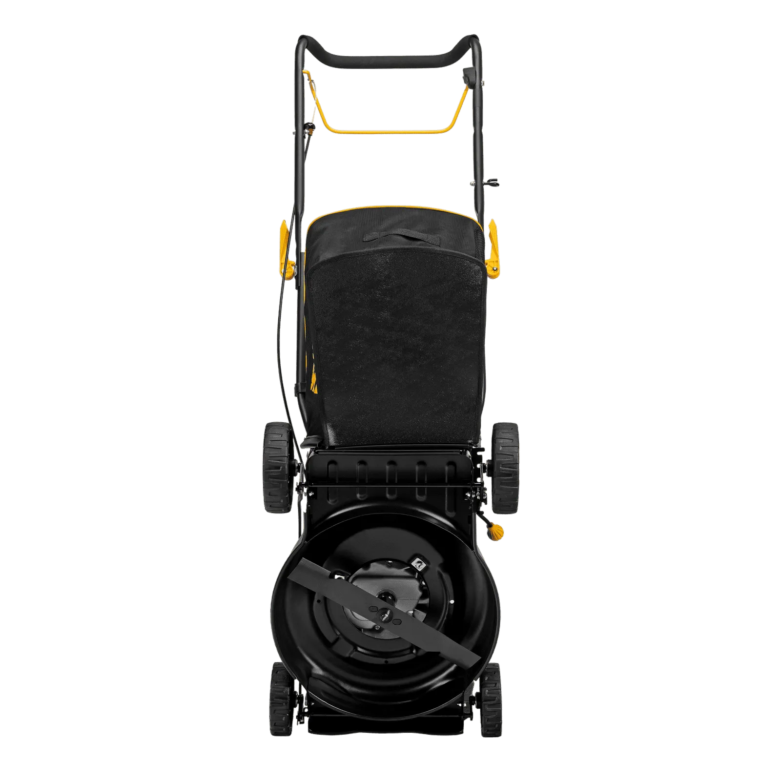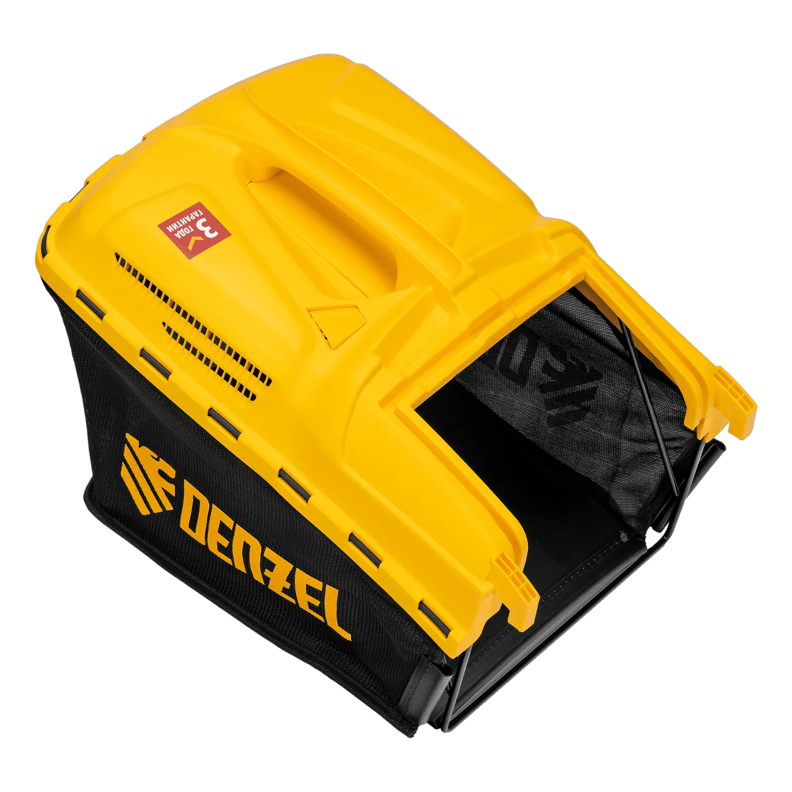 - Аккуратный сбор травы и легкая очистка контейнера — компактный травосборник из ткани и пластика на 40 л просто опустошается и очищается без усилий.
