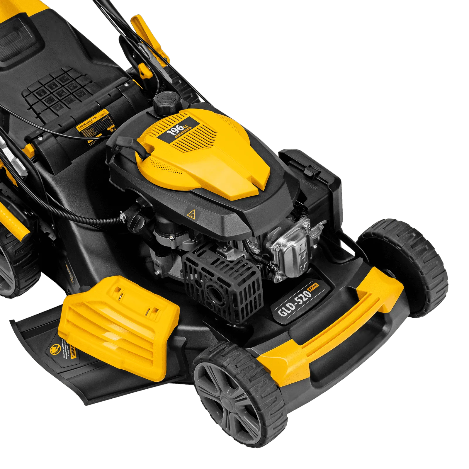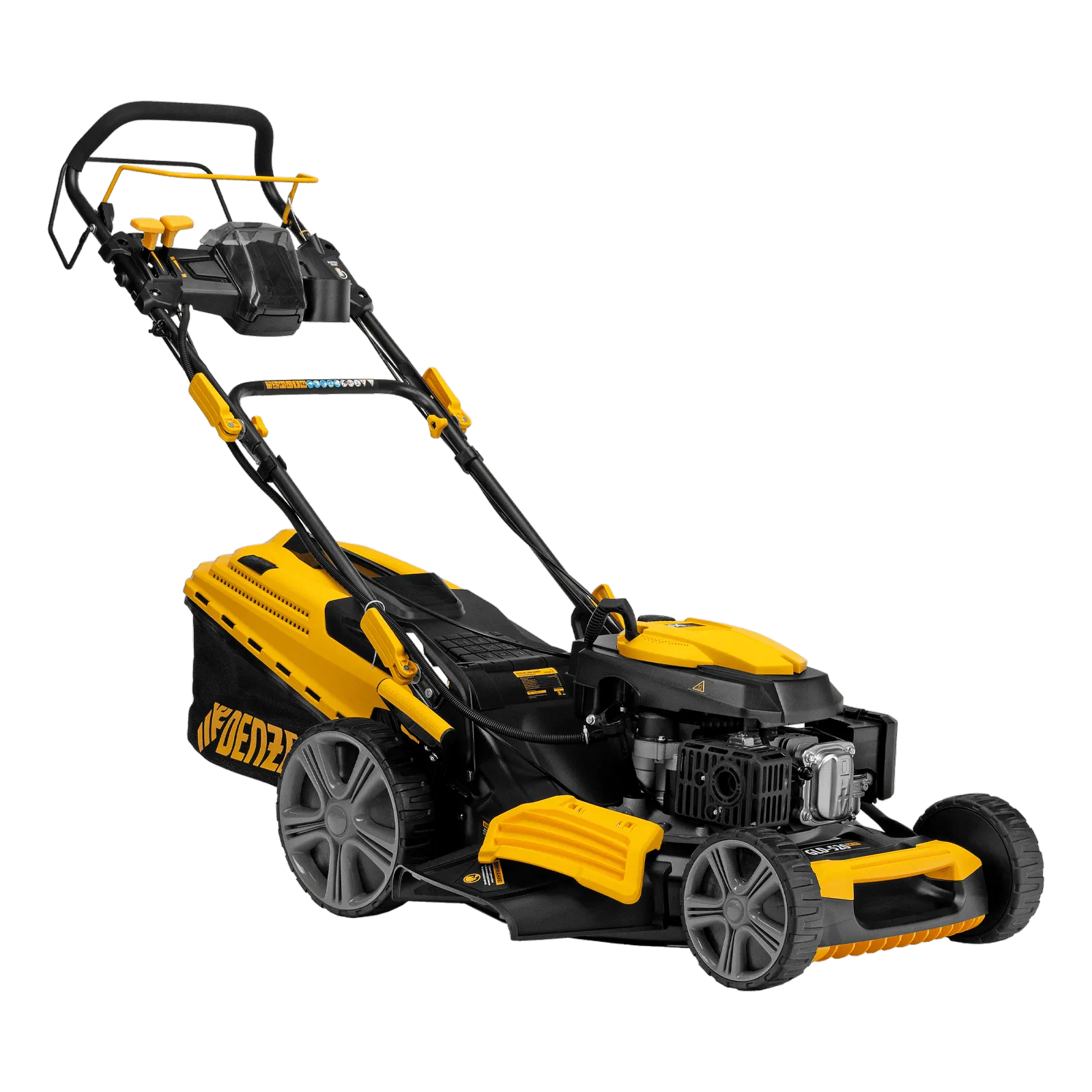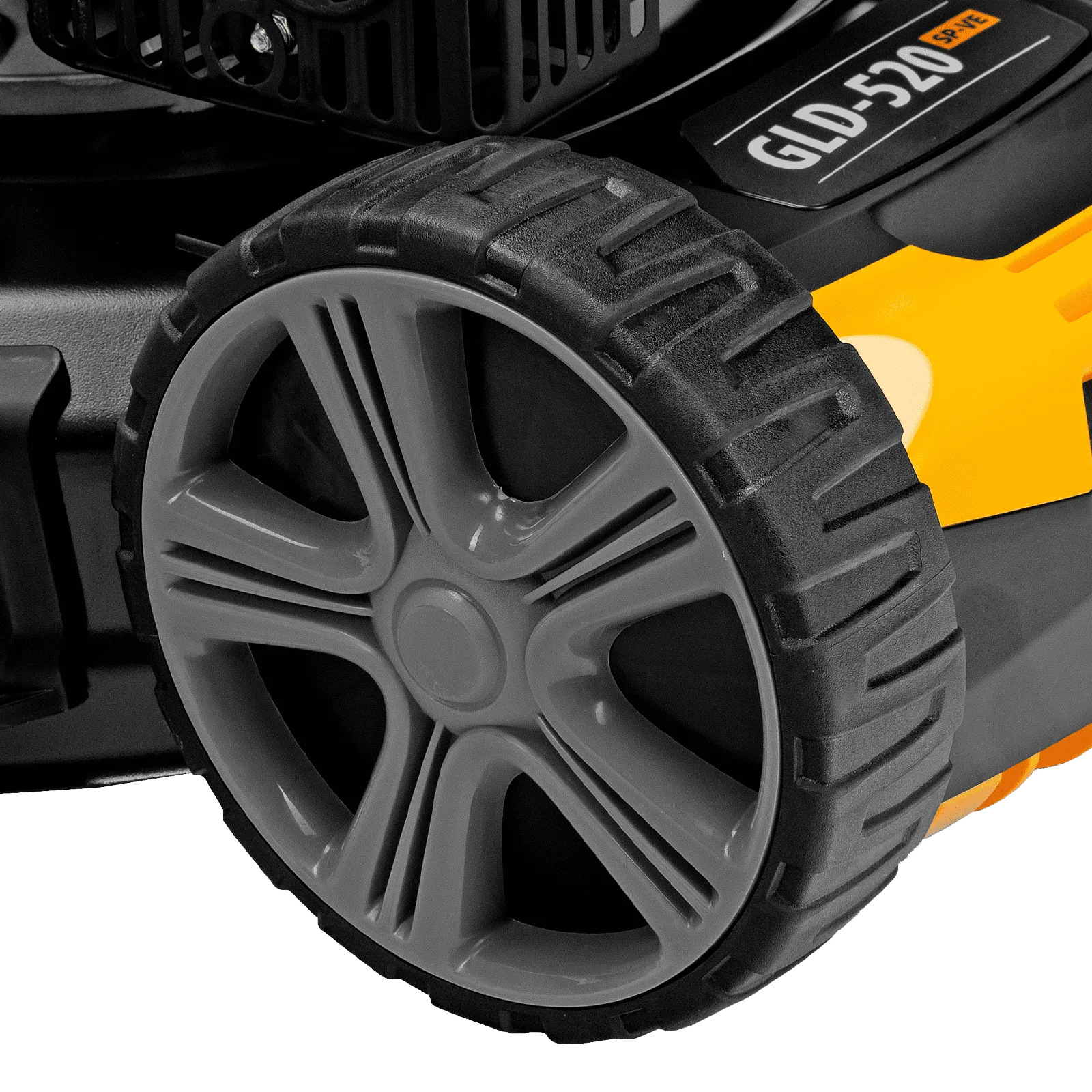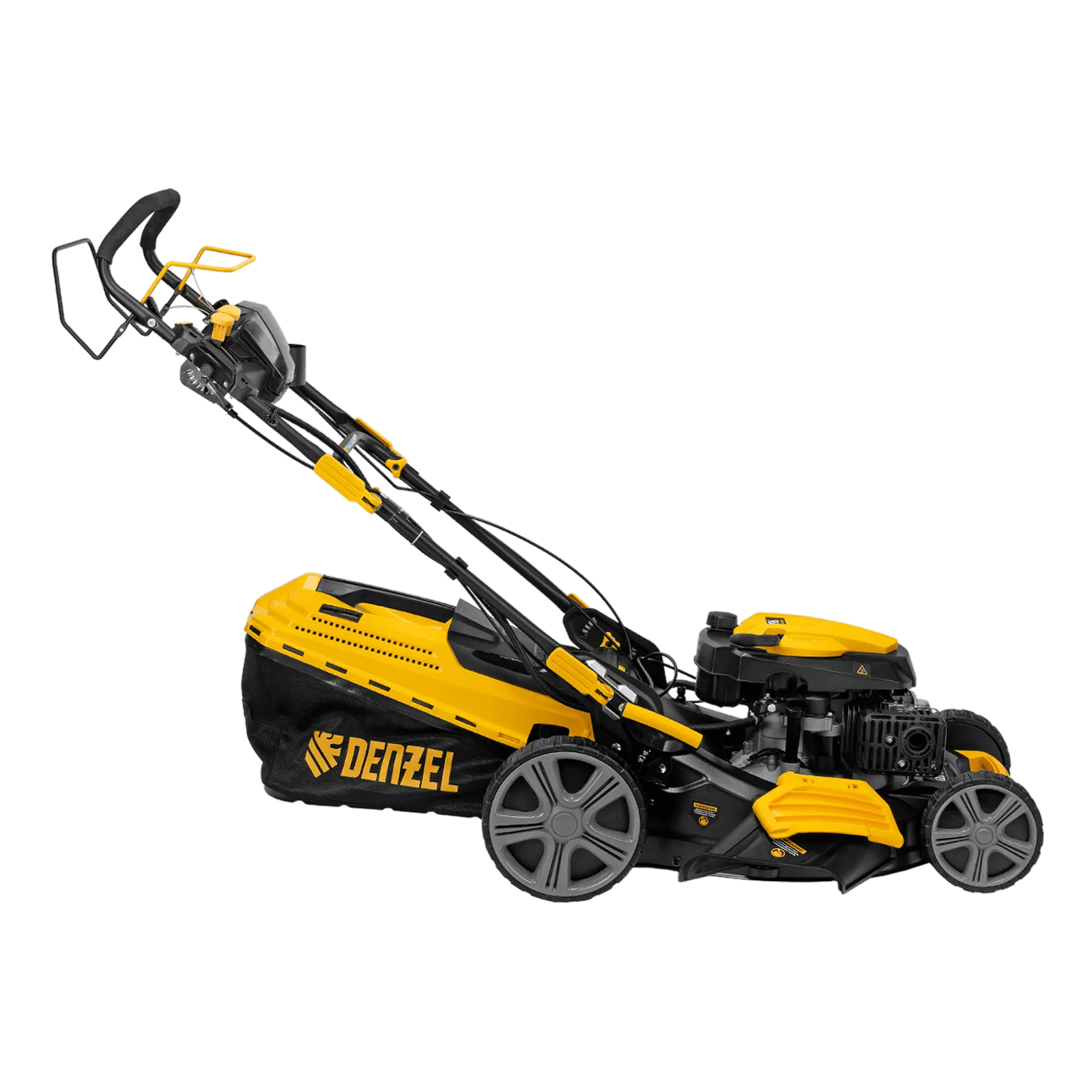 Бензиновая газонокосилка Denzel GLD-520SP-VE 58806 с приводом на колеса и вариатором оснащена двигателем объемом 196 см³ и электрическим стартом. Обеспечивает ширину скашивания 52 см за один проход и собирает траву в контейнер объемом 60 л. Идеально подходит для благоустройства дачной территории, обновления газонов и дорожек. Благодаря двигателю мощностью 6,5 л.с. справляется даже с густым бурьяном.;Ширина прохода составляет 52 см, за 1 час можно обработать участок площадью более 1800 м². Высота среза регулируется при помощи рычага в соответствии с типом газона (всего 7 уровней, от 25 до 75 мм). Можно получить идеально ровный и низко подстриженный парадный покров или площадку для спортивных игр, функциональную лужайку с травой 4-6 см или садово-парковый газон с максимально высокой растительностью.