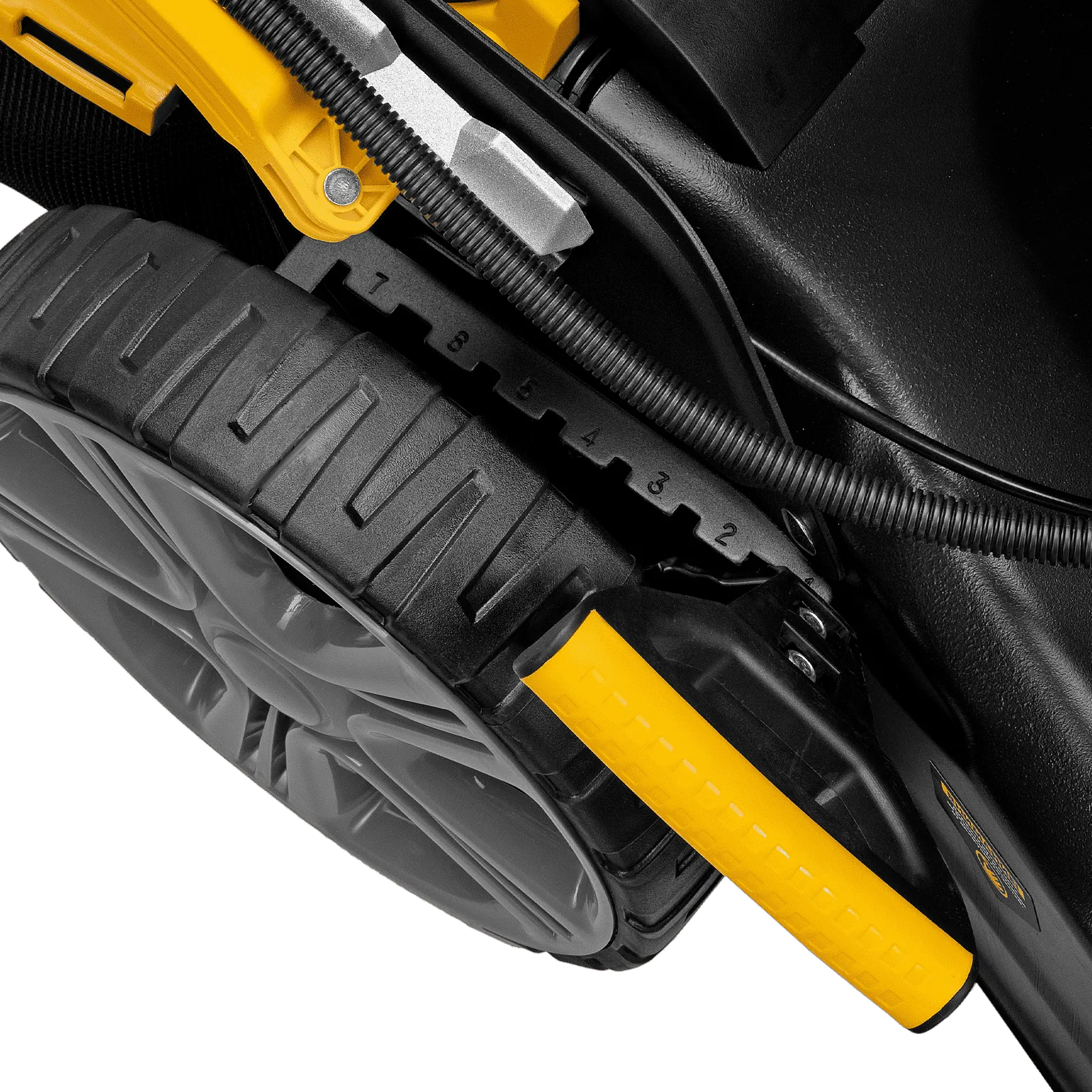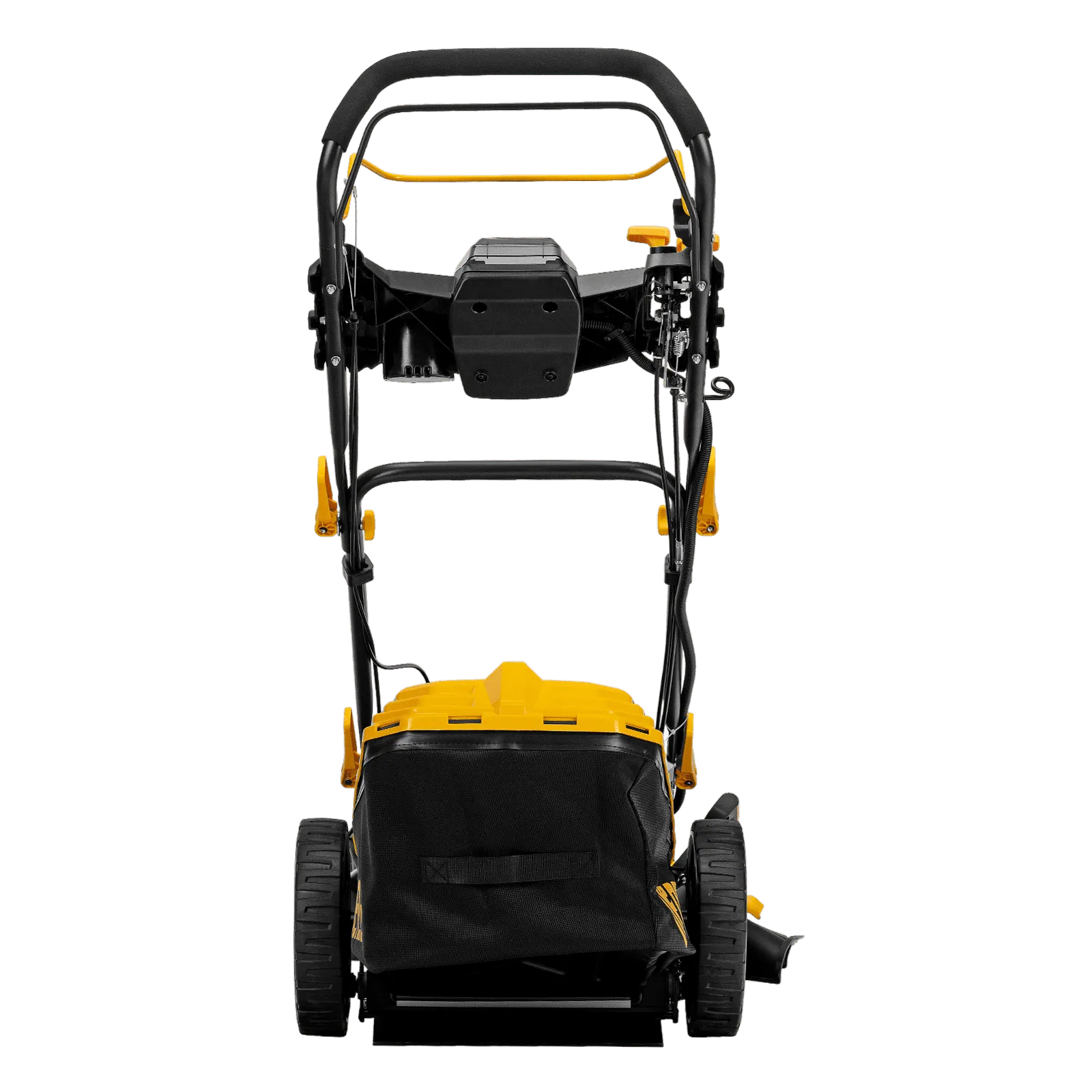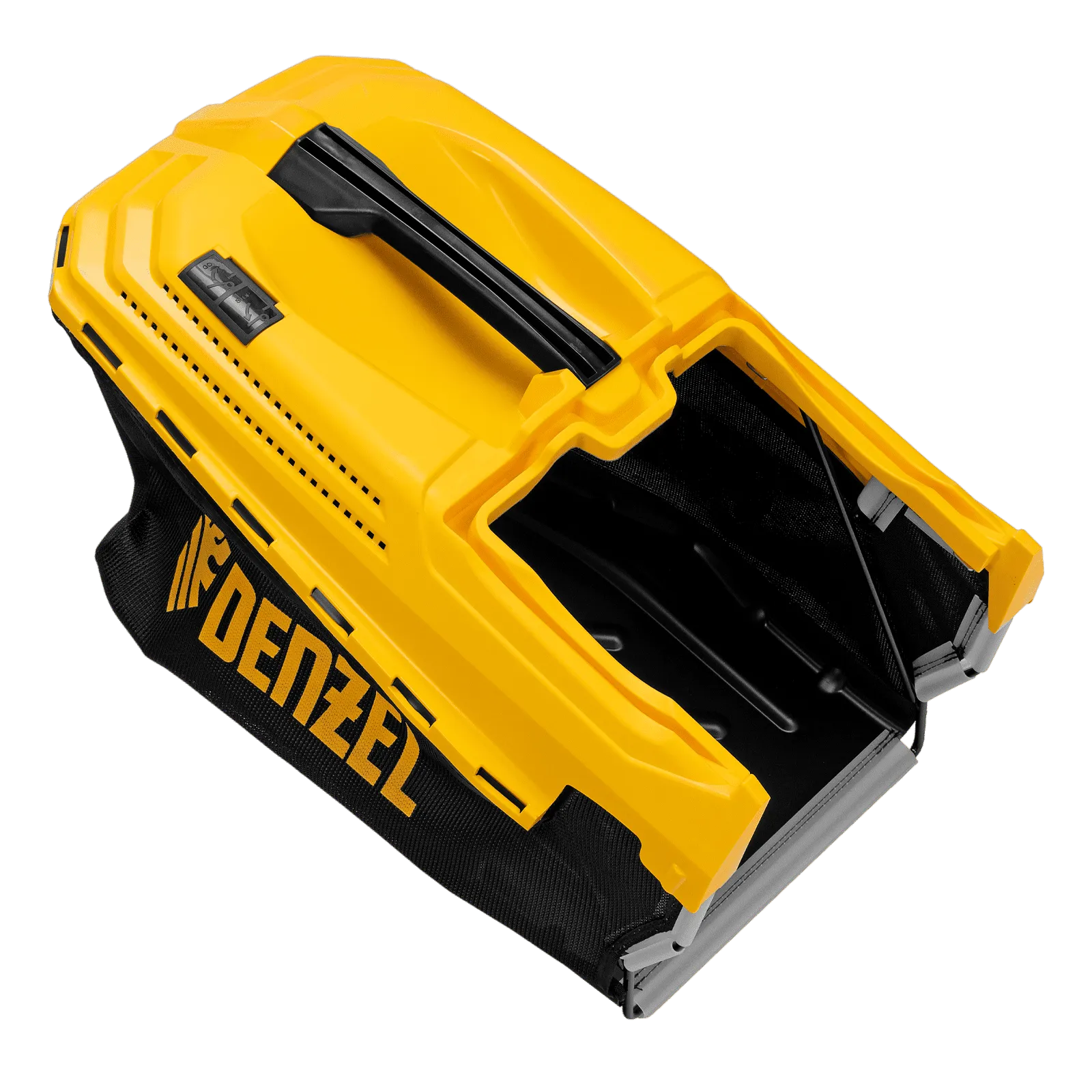 - Аккуратный сбор травы и легкая очистка контейнера — компактный травосборник из ткани и пластика на 60 л не требует частого опустошения и очищается без усилий.