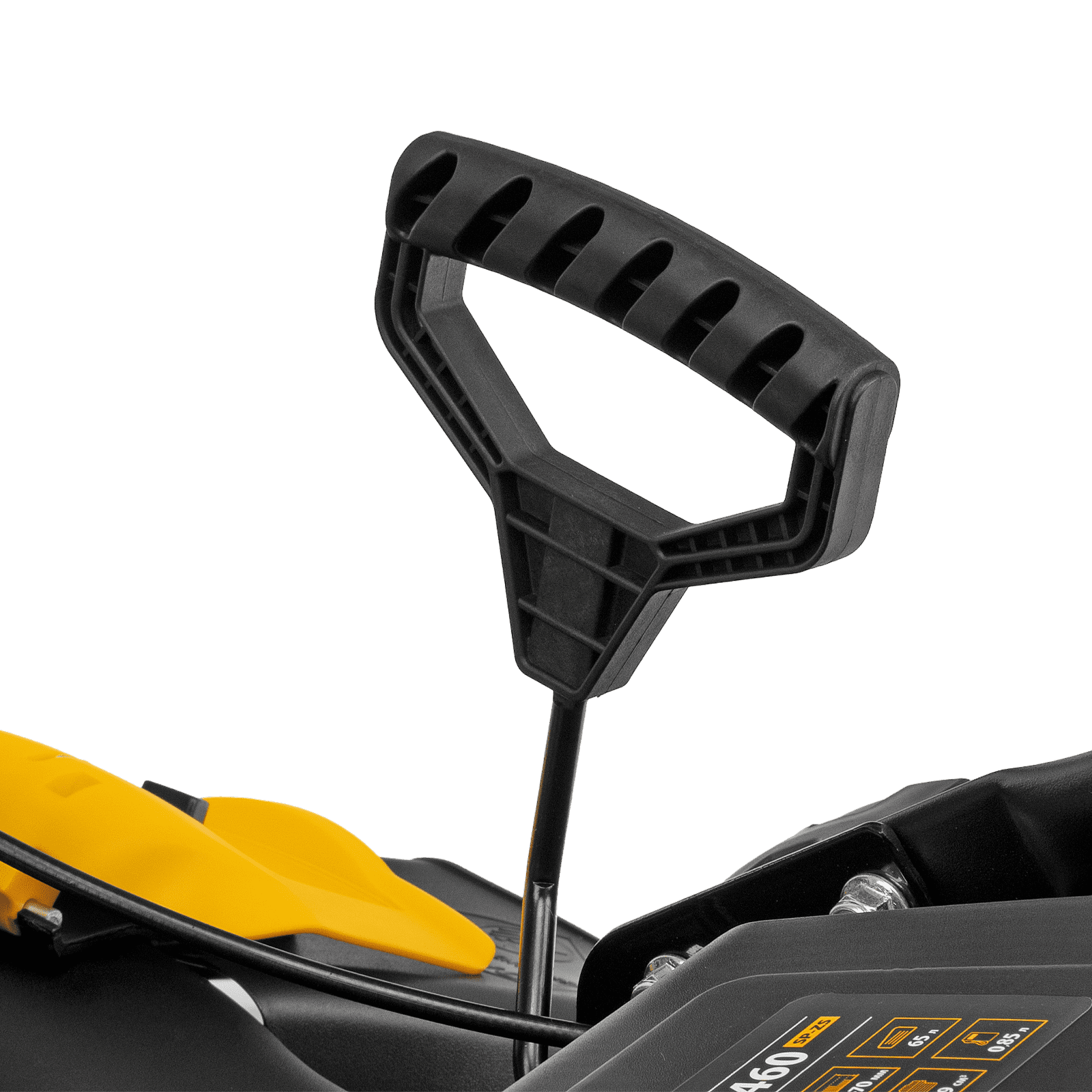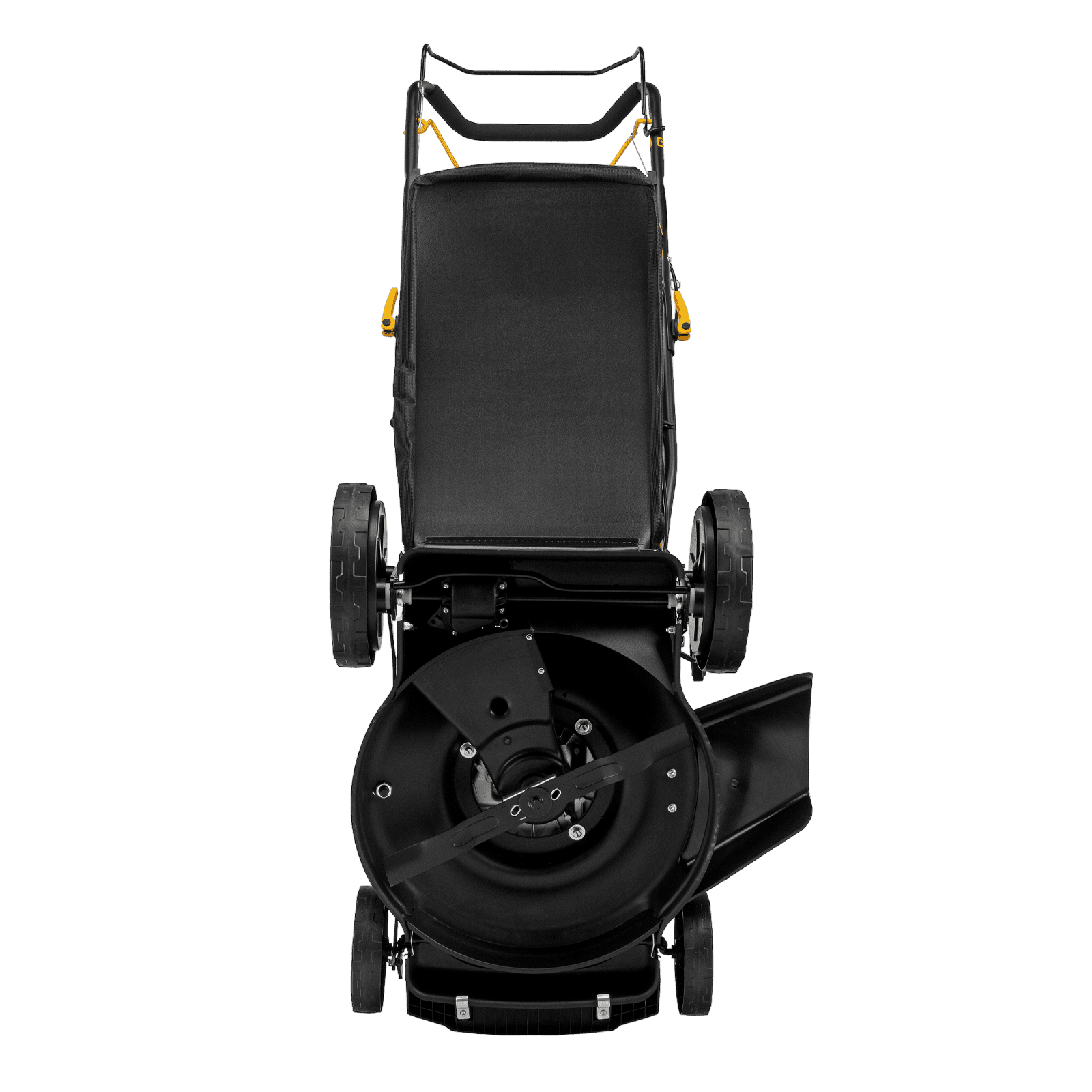 - Оптимизированная геометрия деки — прочный корпус изготовлен таким образом, чтобы срезанная трава быстрее и легче попадала в травосборник.