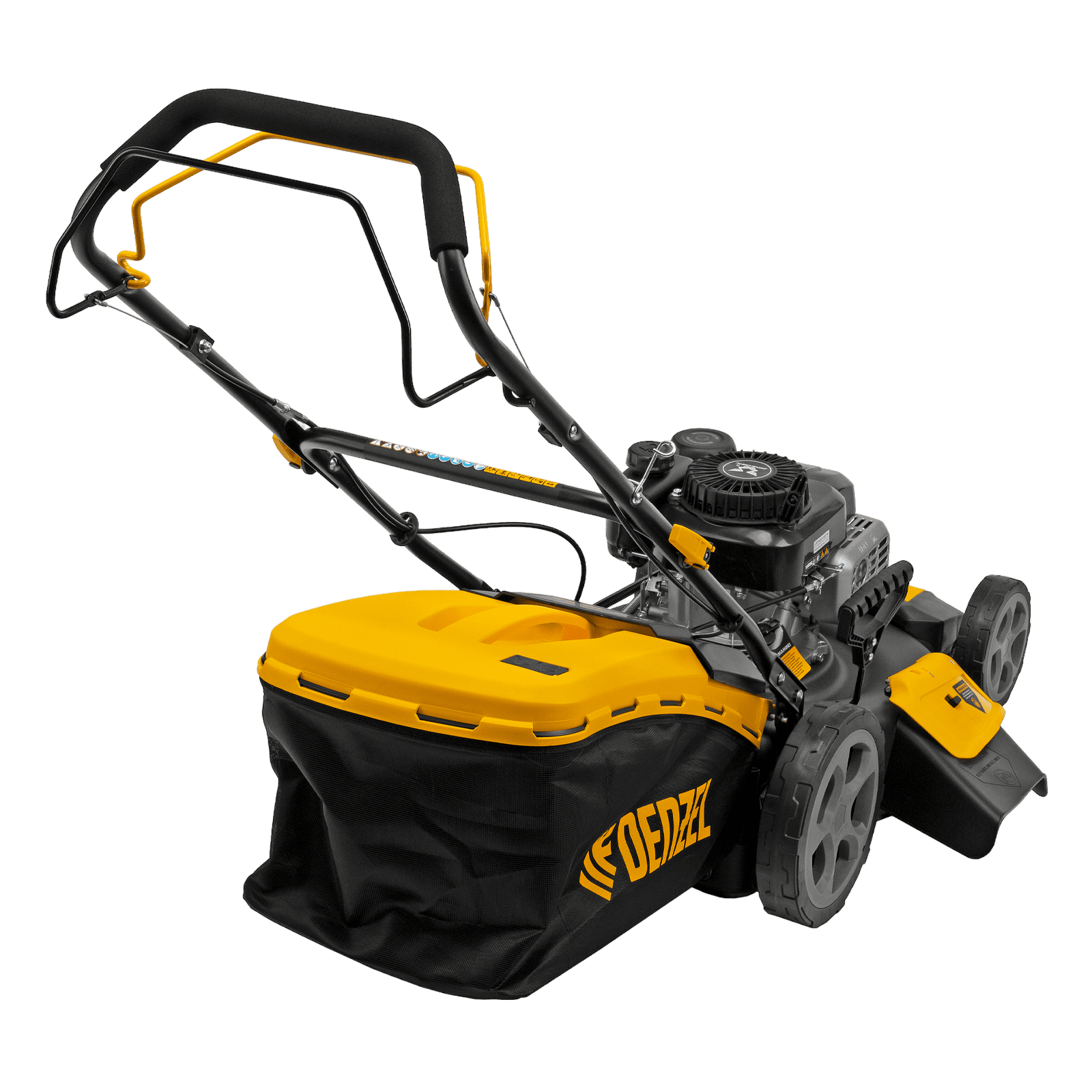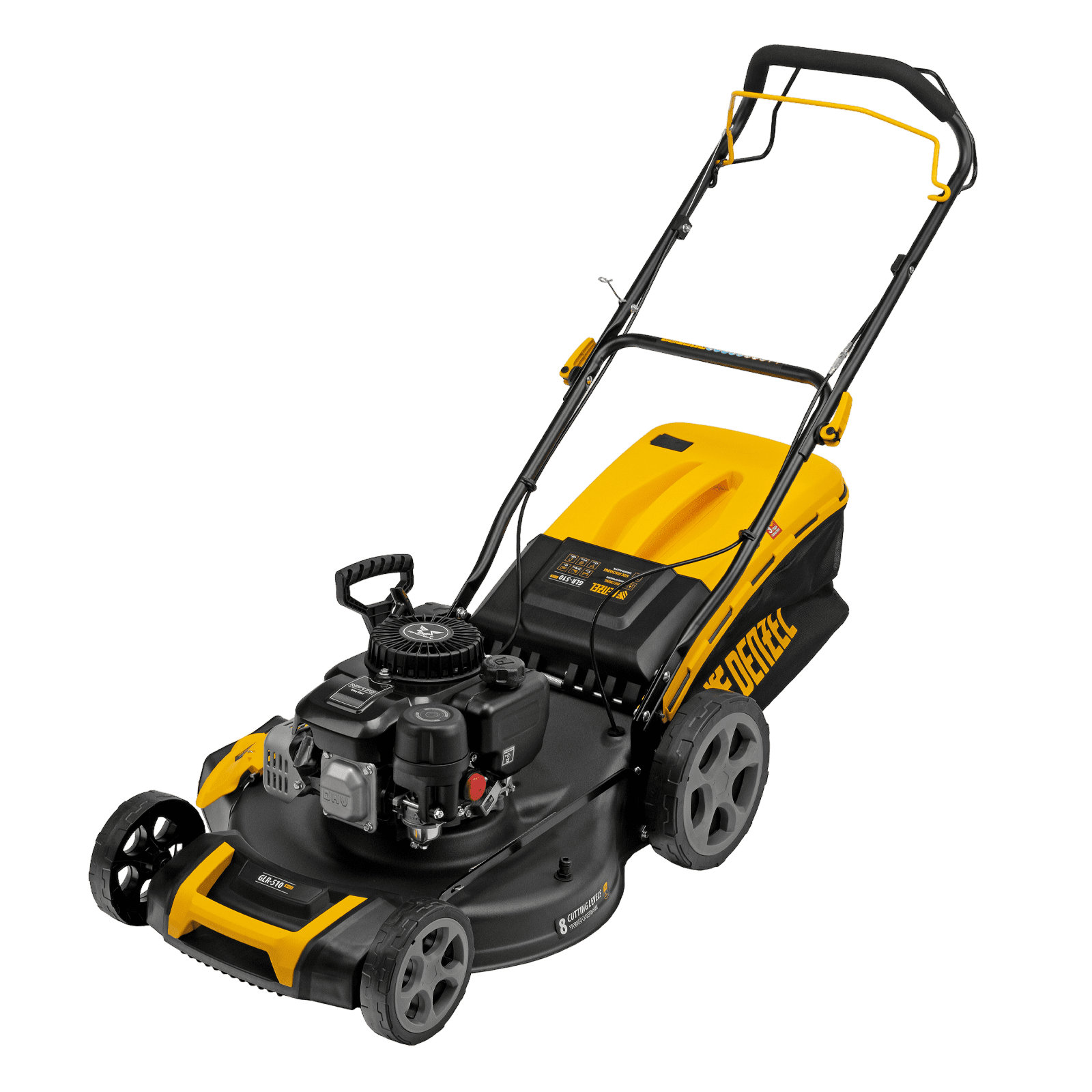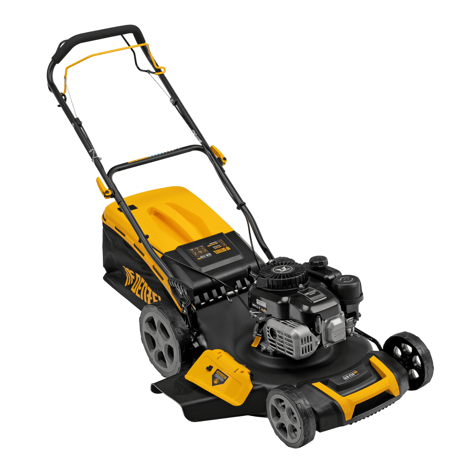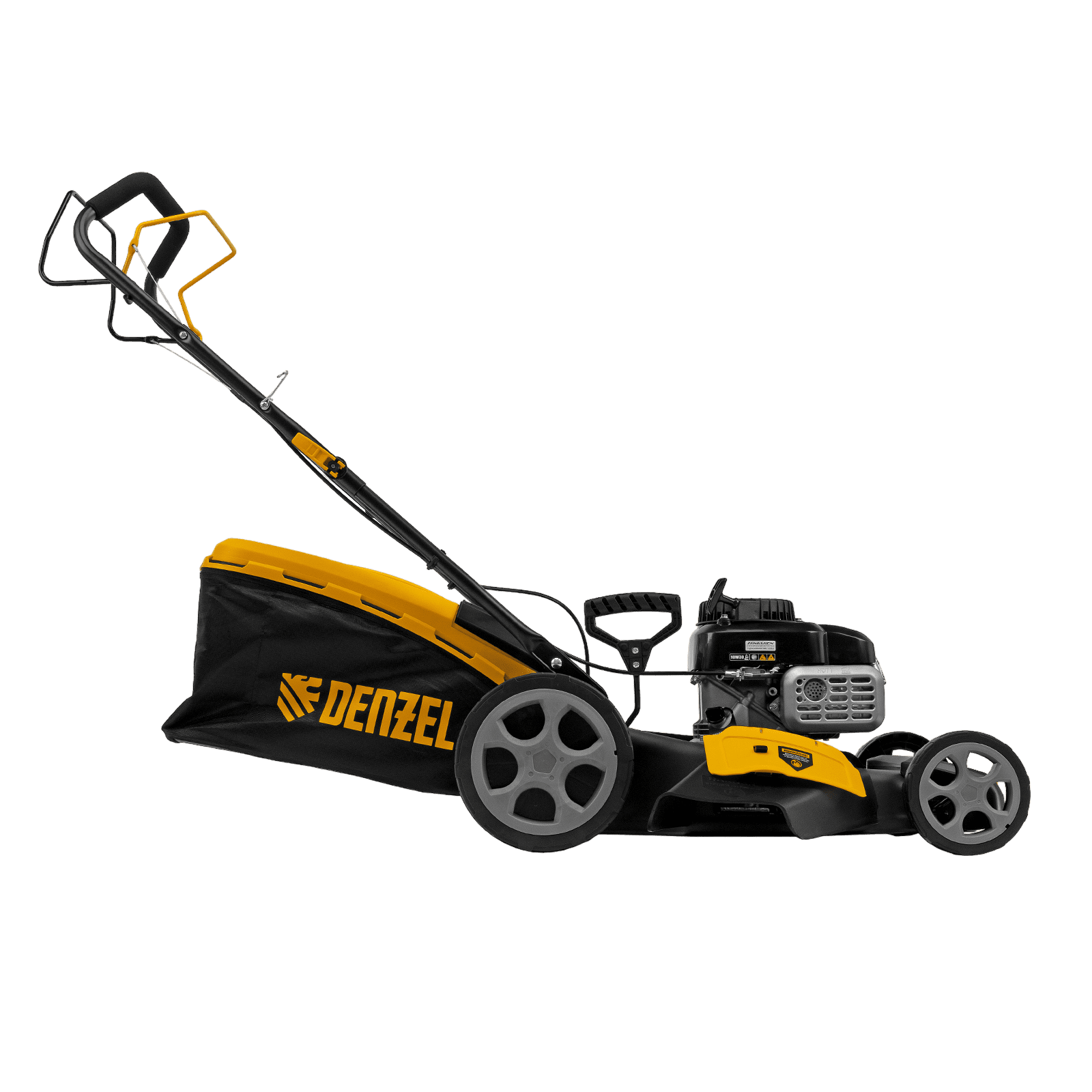Бензиновая газонокосилка Denzel GLR-510SP-ZS 58825 с приводом на колеса и травосборником вместимостью 65 л, с надежным и экономичным 4-тактным двигателем объемом 171 см3, обеспечивает ширину прохода 51 см. Предназначена для стрижки газонов и скашивания травы в саду, будет полезна для ухода за дачным участком или придомовой территорией большой площади. Высота скашивания легко регулируется одним рычагом в диапазоне 25-70 мм (предусмотрено 8 уровней).
