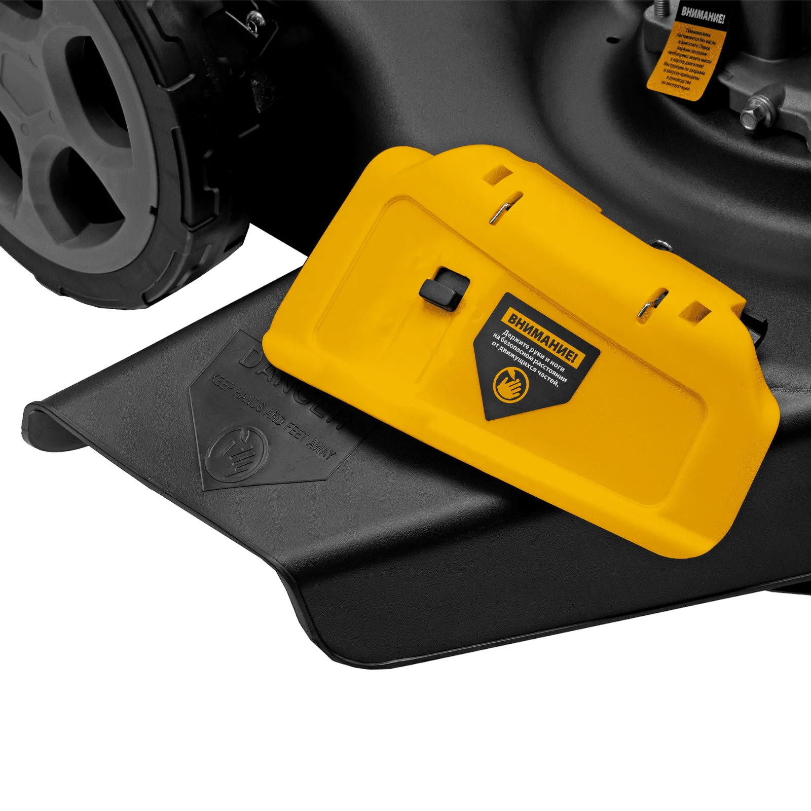 - Оптимизированная геометрия деки — прочный корпус изготовлен таким образом, чтобы срезанная трава быстрее и легче попадала в травосборник.