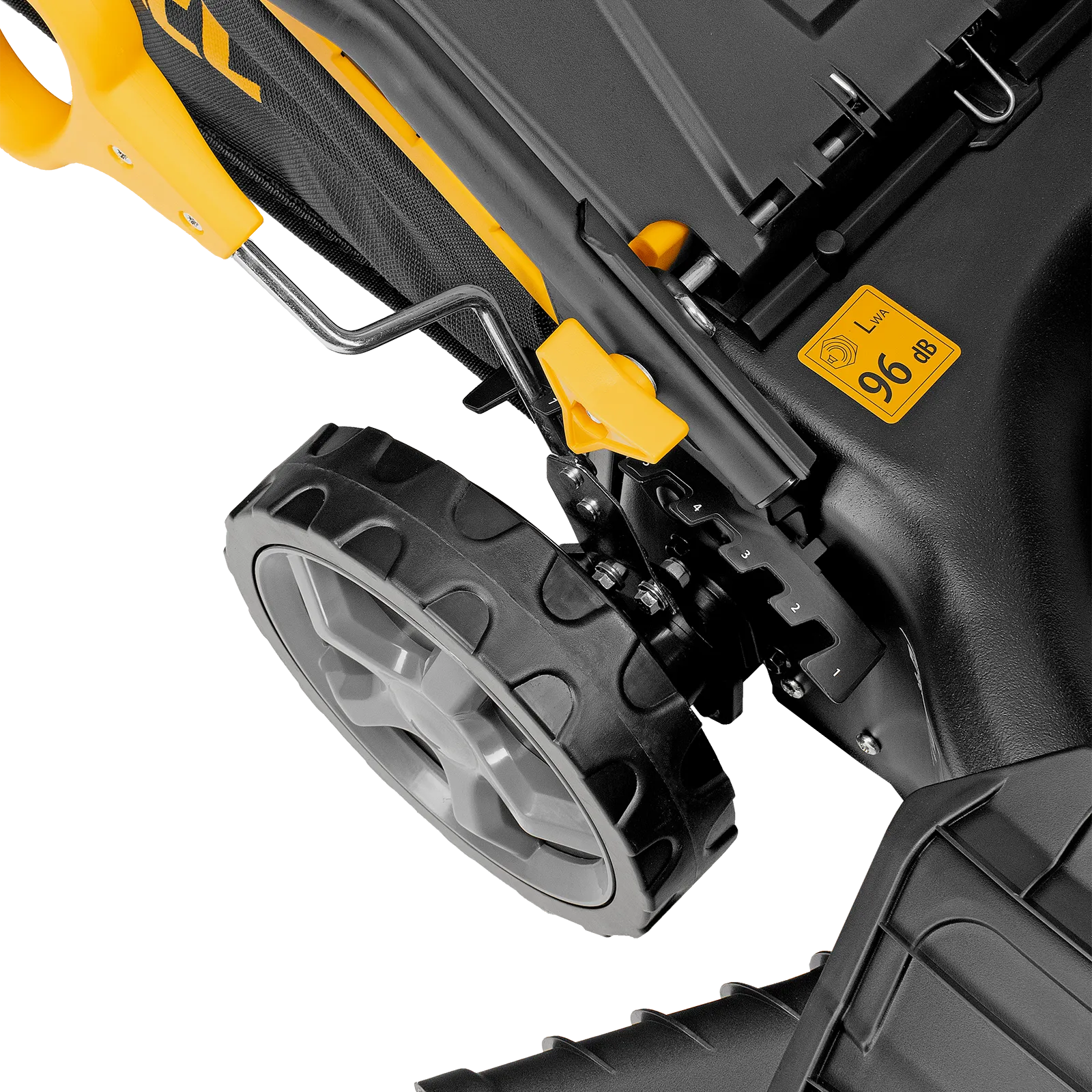- Простая регулировка высоты скашивания — достаточно установить рычаг в нужное положение.
