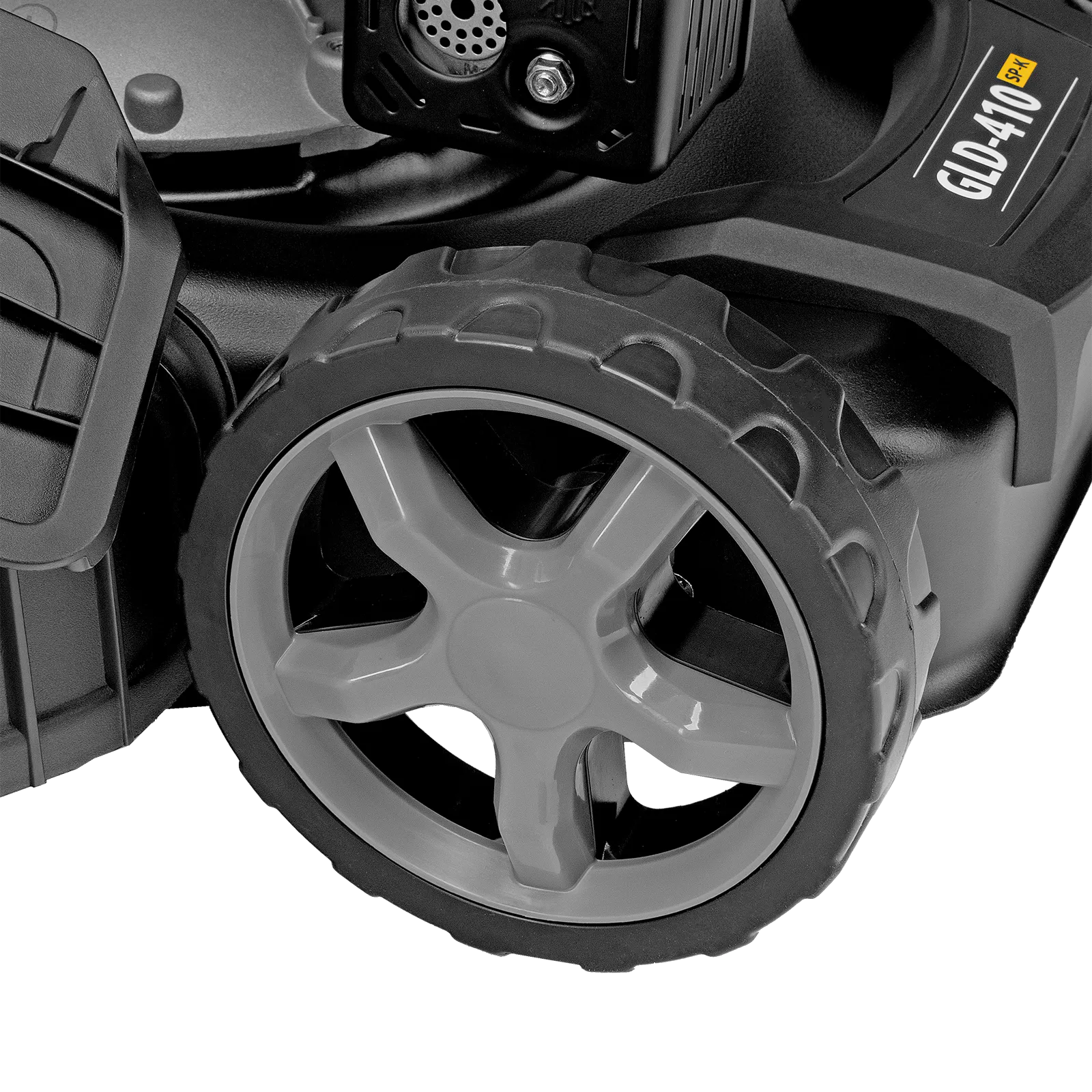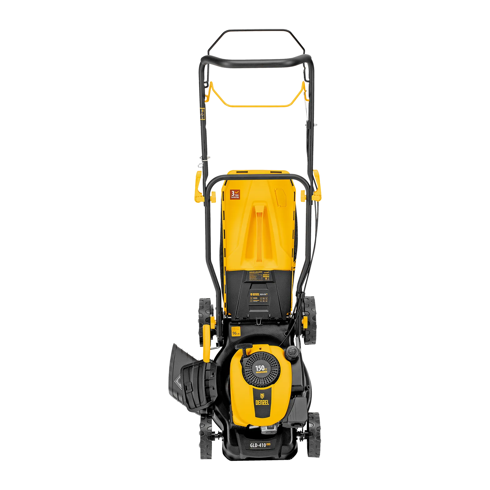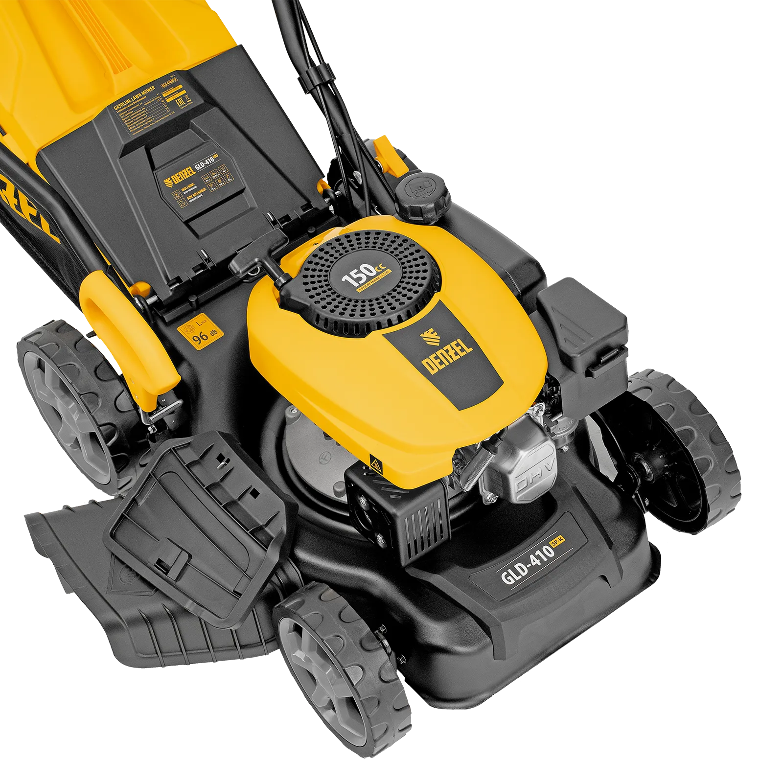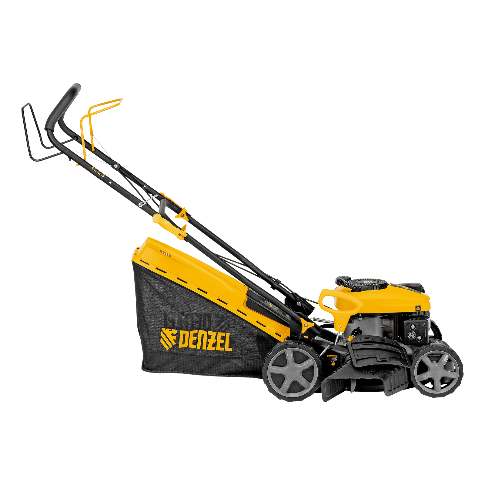 Ключевое отличие газонокосилки Denzel GLD-410SP-K от конкурентов — наличие привода на колеса, функций мульчирования и бокового выброса, а также уникальный дизайн.