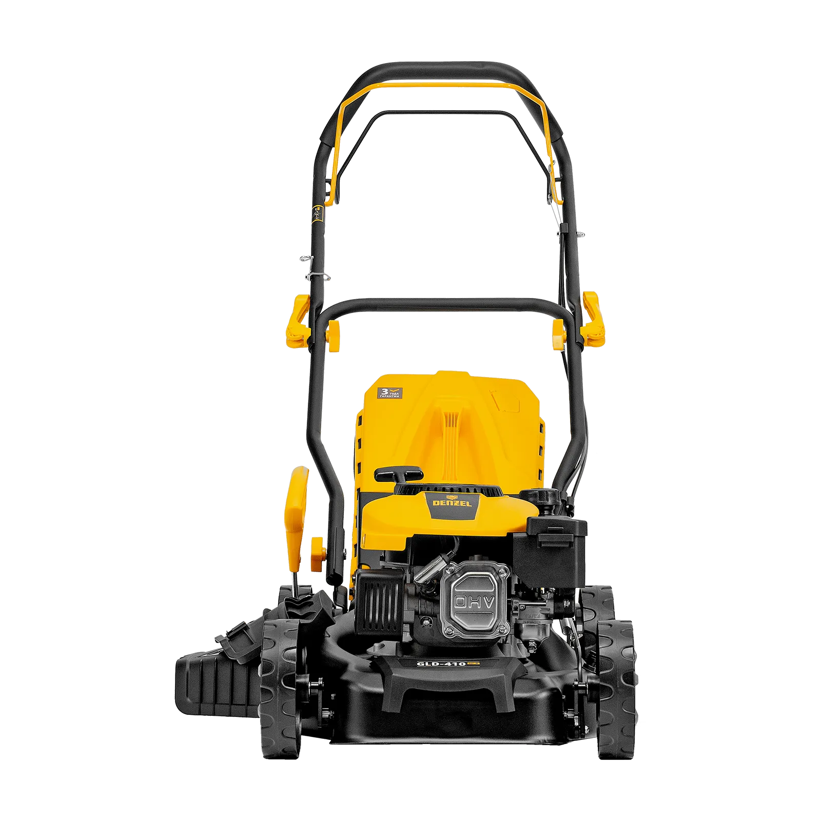 Бензиновая газонокосилка Denzel GLD-410SP-K 58813 с двигателем объемом 150 см³ и травосборником объемом 40 л обеспечивает ширину скашивания 41 см. Предназначена для стрижки газонов и кошения травы в саду и огороде. Двигатель мощностью 3,5 л.с. позволяет эффективно решать поставленные задачи. Высота скашивания регулируется, предусмотрено 7 уровней (25-75 мм), что позволяет получить нужное травяное покрытие. Газонокосилка оптимальна для ухода за небольшим дачным участком.