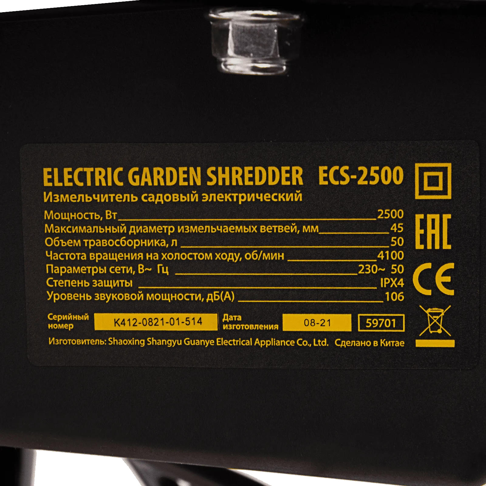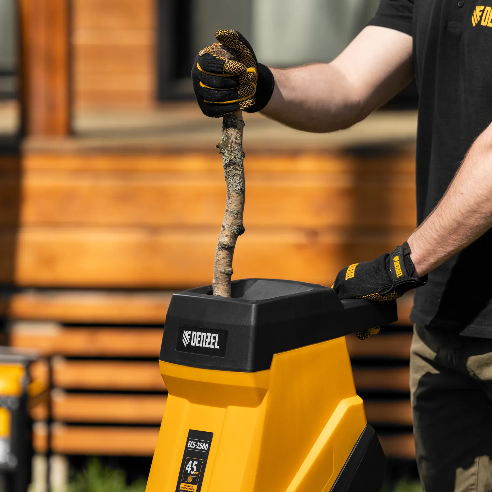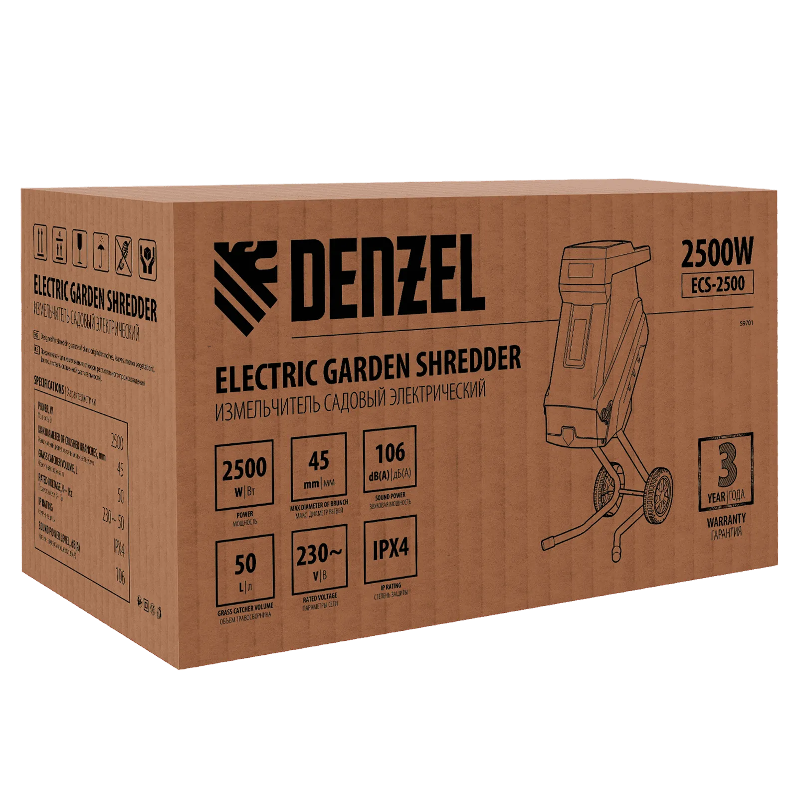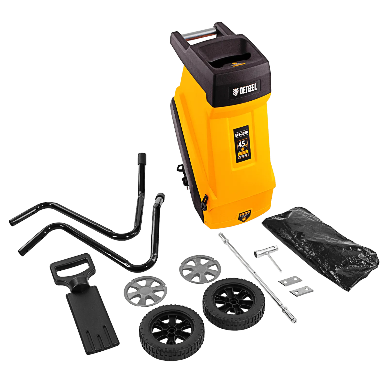 Измельчитель садовый электрический Denzel ECS-2500 59701 мощностью 2500 Вт предназначен для утилизации веток, листвы, скошенной растительности диаметром до 45 мм. Станет незаменимым помощником в саду или на даче, позволит поддерживать порядок на приусадебном участке. Скорость вращения режущих элементов составляет 4100 оборотов в минуту, что позволяет быстро решать поставленные задачи.