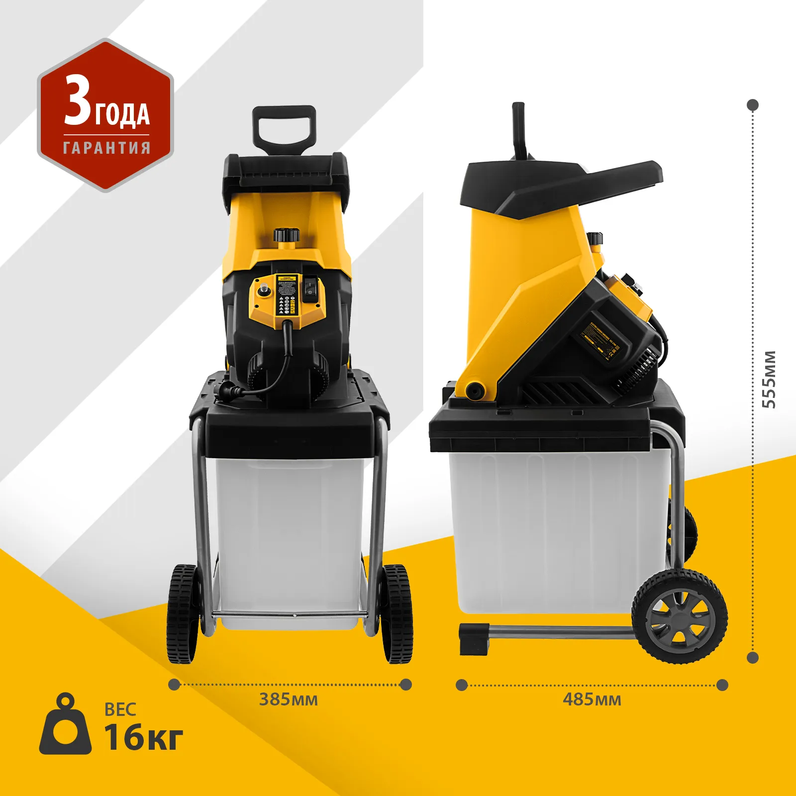 - Маневренность — для удобного перемещения по участку измельчитель оснащен колесами и ручкой.