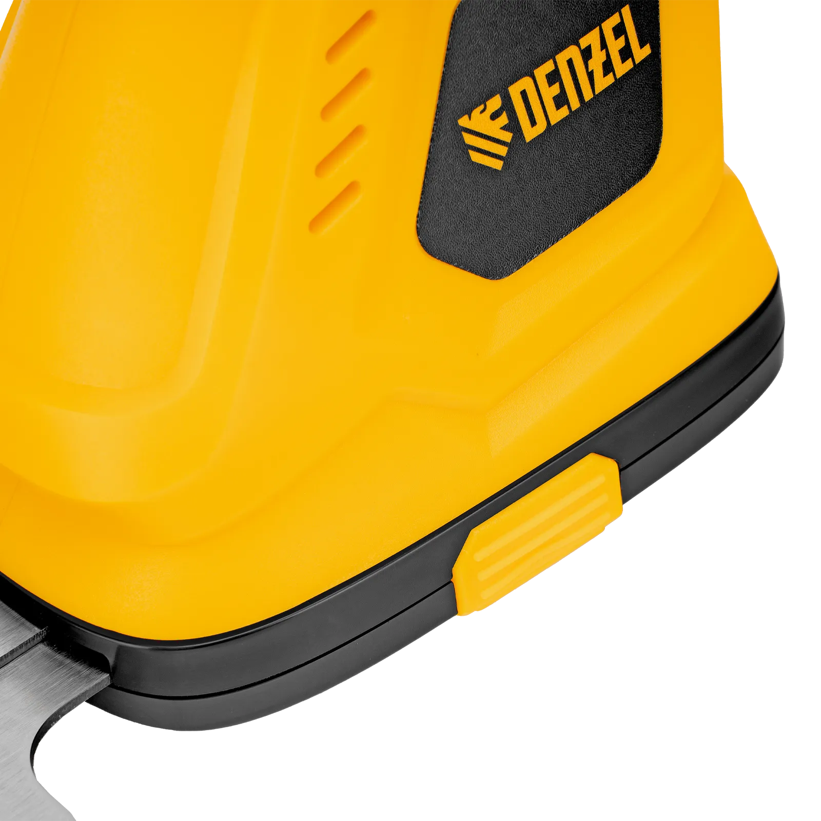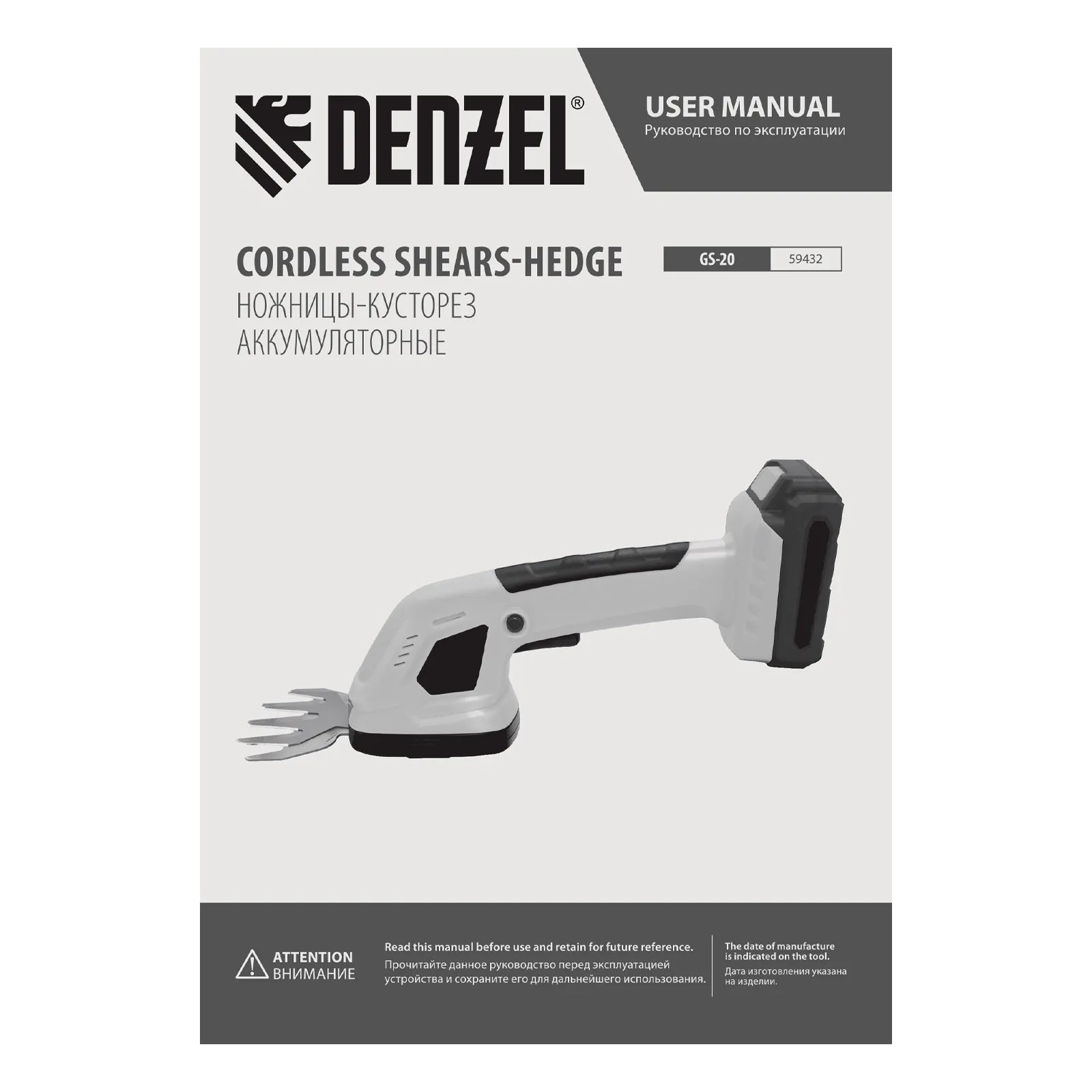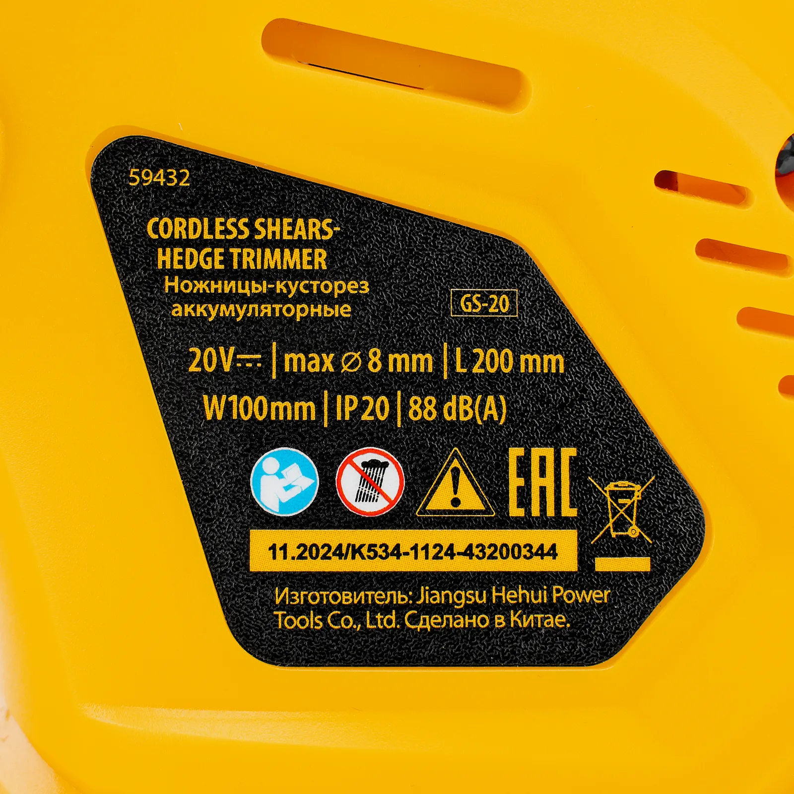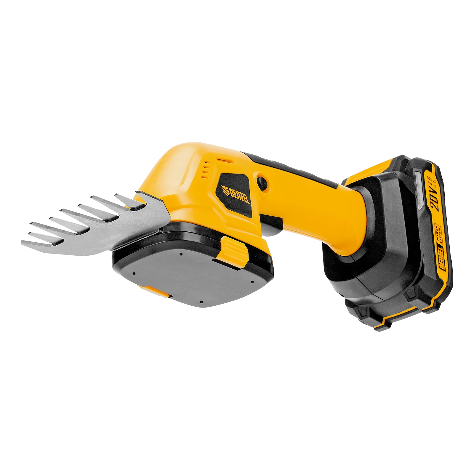 Аккумуляторные ножницы-кусторез Denzel GS-20 59432 работают от аккумулятора Li-Ion 20 В емкостью 2 А·ч. Предусмотрено 2 режима: ножниц для срезания травы и кустореза для обрезки кустарника, ухода за живой изгородью. Максимальная толщина срезаемых веток составляет 8 мм. Ширина среза в режиме ножниц составляет 100 мм, в режиме кустореза — 200 мм, что позволяет быстро и эффективно справиться с работой. Инструмент предназначен для бытового использования.
