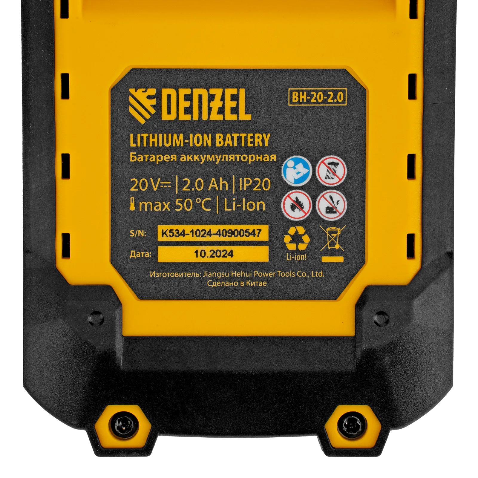 - Универсальность — аккумулятор совместим со всеми инструментами единой платформы Denzel Power System 20V.