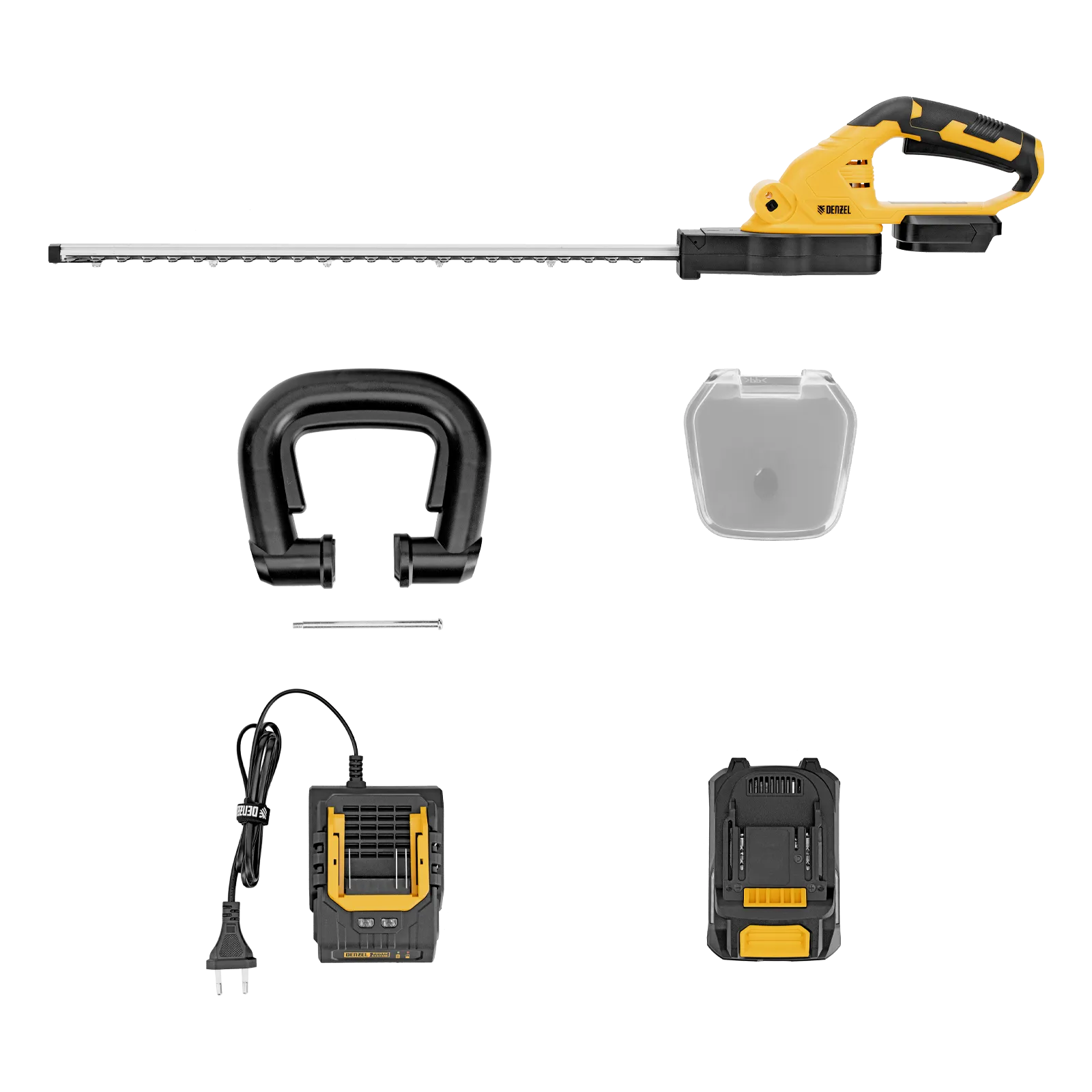 Аккумуляторный кусторез Denzel HTD-510 59409 с ножом длиной 510 мм предназначен для стрижки кустарников и обрезки веток толщиной до 14 мм. Частота хода лезвий составляет 2400 ход/мин, что позволяет эффективно решать поставленные задачи. Аккумулятор Li-Ion 20 В емкостью 2 А·ч, без эффекта памяти, допускает подзарядку без риска потери емкости. Кусторез пригодится для выполнения работ в саду и на дачном участке.