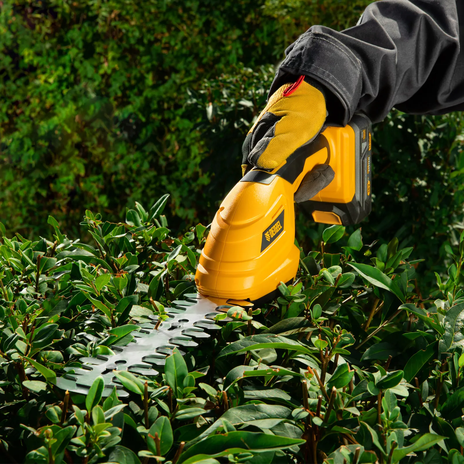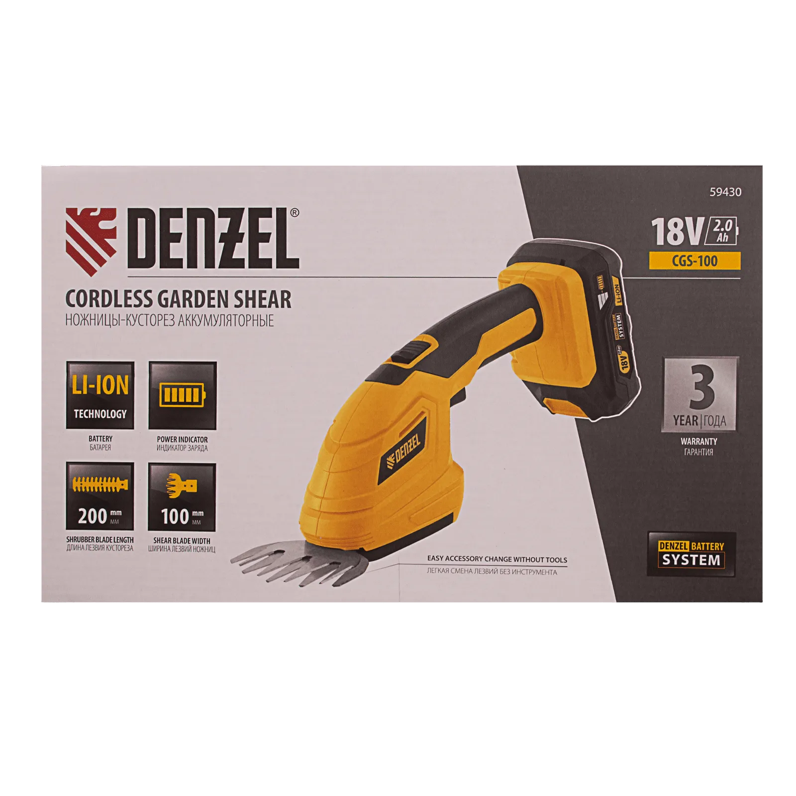 Аккумуляторные ножницы-кусторез Denzel CGS-100 59430 с батареей 18В Li-Ion предназначены для срезания травы, стрижки кустарников, листвы и тонких побегов деревьев диаметром до 8 мм. Инструмент оптимален для создания живой изгороди на дачном участке, создания ландшафтных скульптур из декоративных растений, подравнивания растительности вдоль заборов и бордюров.;Ножницы-кусторез не зависят от сети электропитания, а значит, использовать их можно в отдаленных участках сада. Аккумулятор Denzel 18В Li-Ion с интеллектуальной системой распознавания нагрузки обеспечивает стабильную работу инструмента со скоростью 1200 ход/мин и эффективное выполнение поставленных задач.