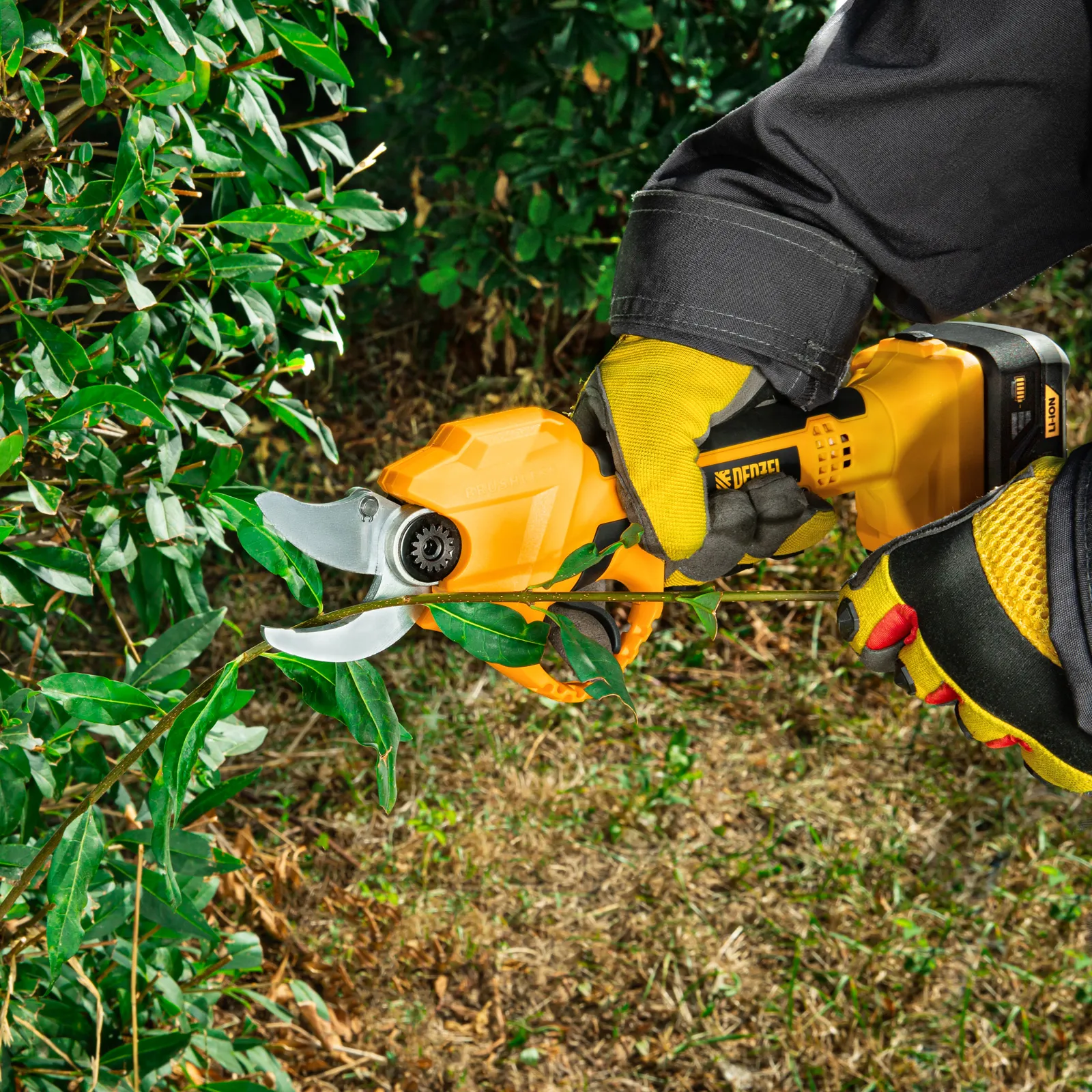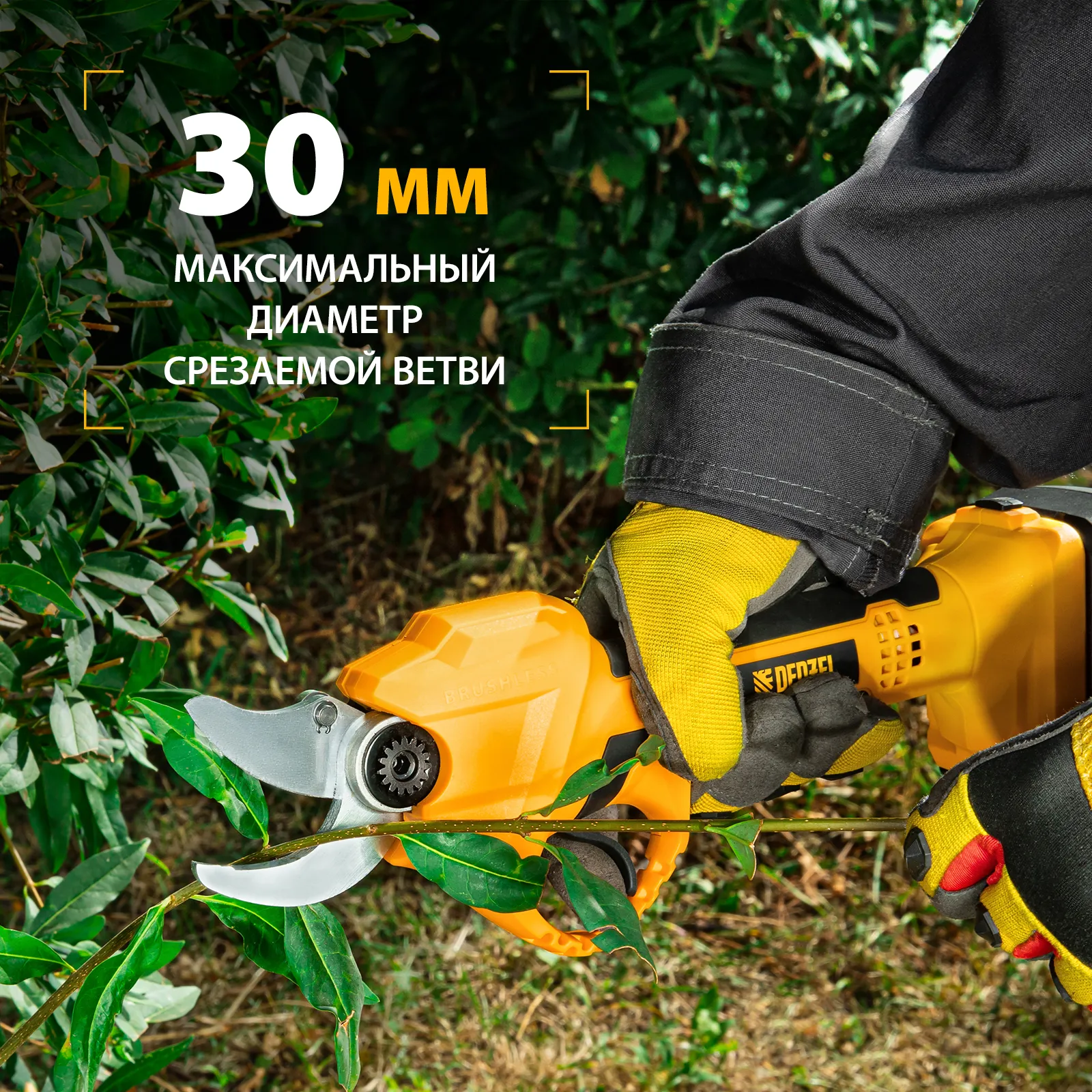 Аккумуляторный секатор Denzel CP-30 с батареей 18В Li-Ion предназначен для срезания ветвей толщиной до 30 мм. Станет незаменимым помощником для владельцев загородных домов, дач и плодовых питомников. Компактный бесщеточный электродвигатель обеспечивает эффективную работу инструмента. Секатор работает от аккумулятора, поэтому будет полезен при работе в труднодоступных местах и отдаленных участках сада.