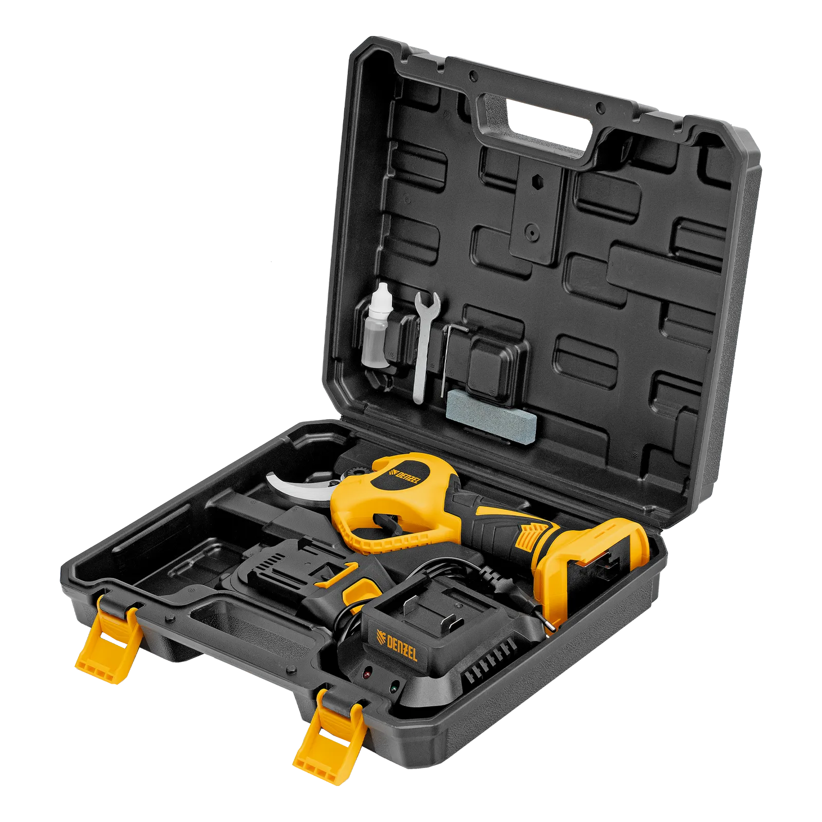 - Удобное хранение и транспортировка — секатор с аксессуарами упакован в прочный кейс.